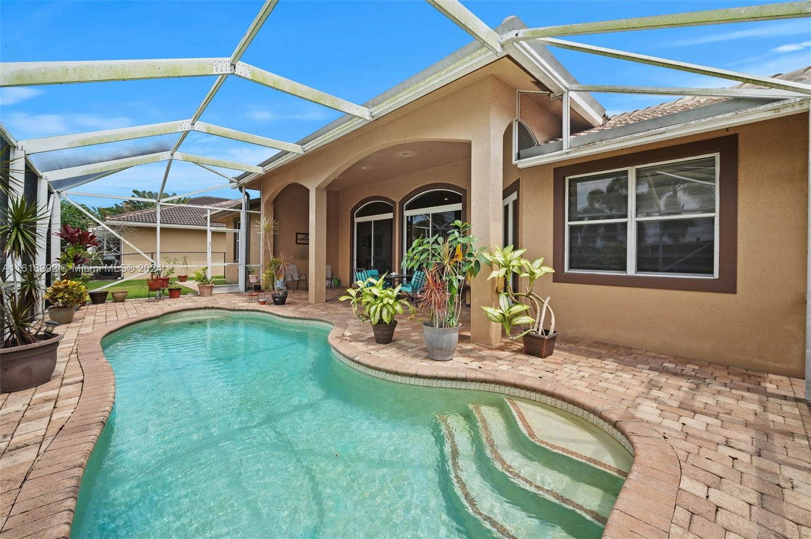 MAGNIFICENT DESIRABLE 4 BEDROOMS + DEN/OFFICE USED AS 5TH BEDROOM, 3-BATHROOMS POOL HOME IN DAVIE’S PINE ISLAND ESTATES. THIS RARELY AVAILABLE ONE-STORY FLOOR PLAN HAS EVERYTHING YOU NEED FEATURING; HIGH CEILINGS THAT JUST FLOW INTO THE SPACIOUS LIVING AREAS. LARGE CIRCULAR DRIVEWAY & 2-CAR GARAGE, LARGE OPEN KITCHEN WITH PLENTY OF CABINETS, GRANITE COUNTERTOPS & STAINLESS STEEL APPLIANCES. THIS LARGE OPEN TRIPLE-SPLIT FLOOR PLAN INCLUDES AN SPACIOUS MASTER SUITE WITH WALK-IN CLOSETS AND A MASTER BATH WITH DOUBLE SINKS, SHOWER & JACUZZI TUB. ENJOY A PRIVATE BACKYARD WITH A BEAUTIFUL SCREENED IN POOL AND COVERED PATIO AREA, PERFECT FOR GATHERINGS & ENTERTAINING WITH FAMILY AND FRIENDS. NEAR GREAT SCHOOLS, CLOSE TO SHOPPING, DINING, AIRPORTS & THE BEACH TO ENJOY SOUTH FLORIDA LIFESTYLE.