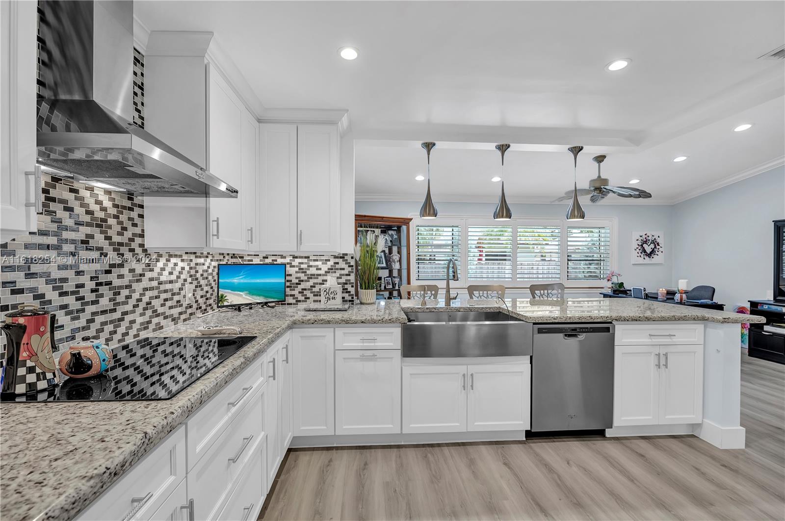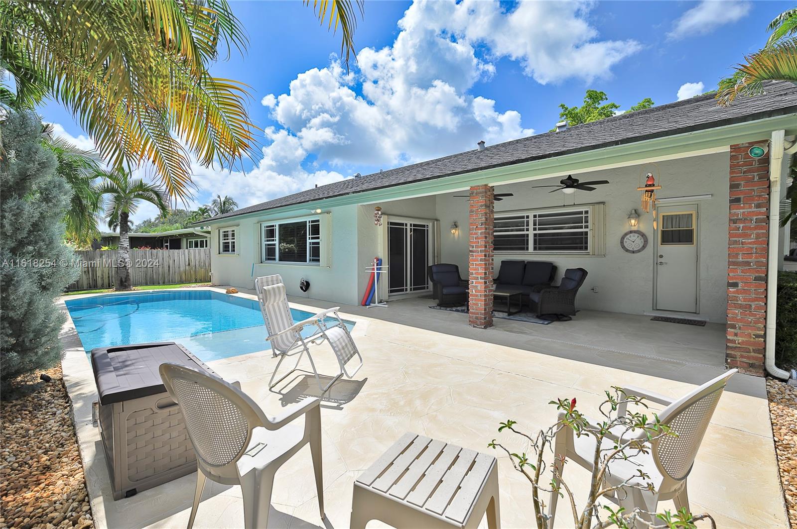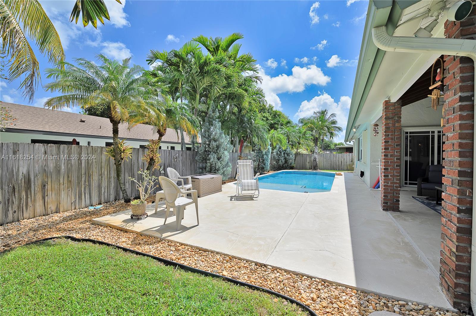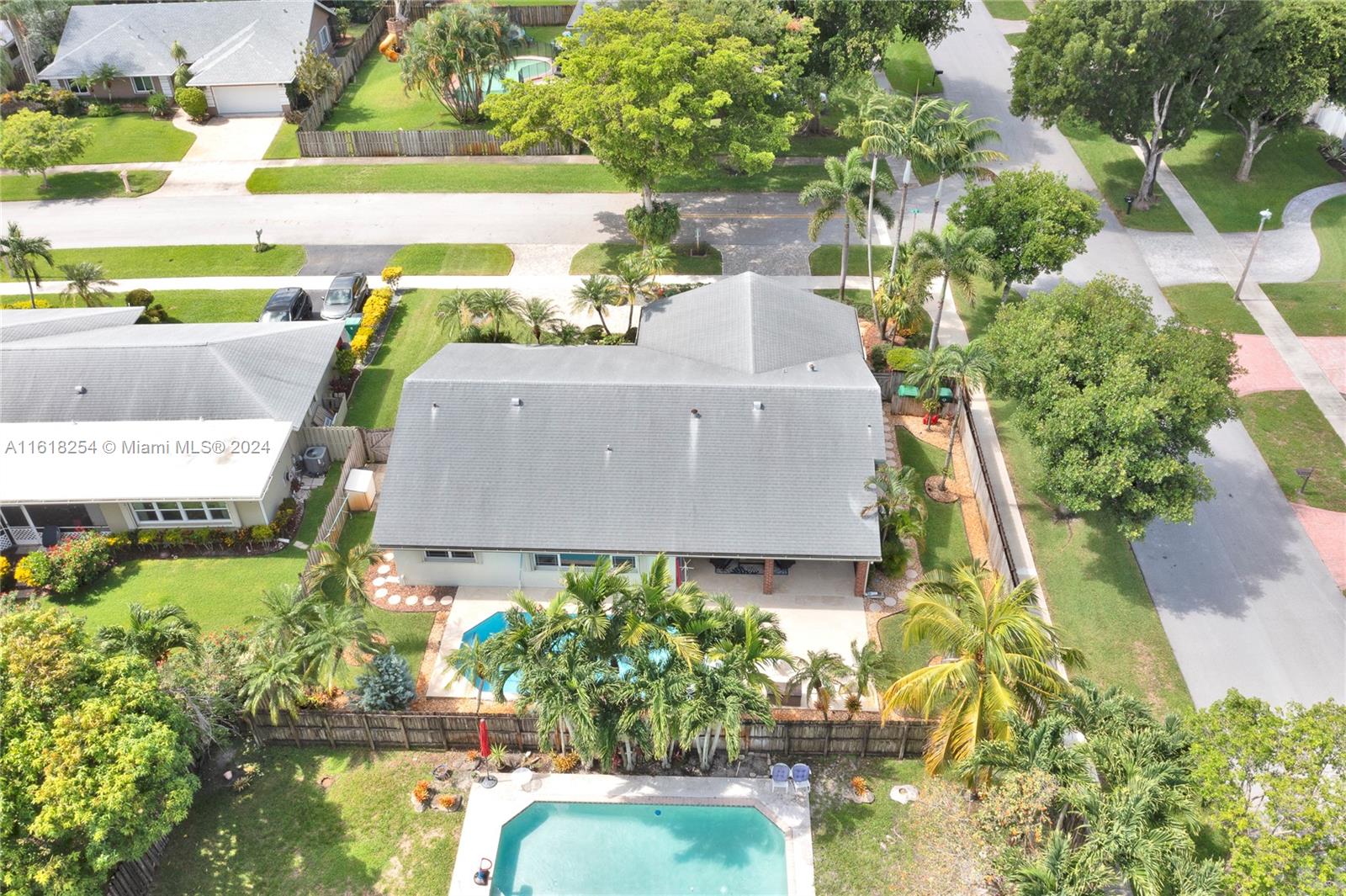 Truly move-in condition Pinebrook built "Live Oak Model" 3 bedoom 2 bath - in ground pool - full 2 car garage - remodeled kitchen and baths - designer interior - crown molding - extra wide brick paver circular driveway - professional landscaping - " Pride Of Ownership " displayed throughout - full home storm protection (accordion shutters & panels) ADT alarm system - large corner lot - quiet street location - outstanding Cooper City schools - Griffin, Pioneer, CCHS. NO HOA FEES - call listing agent if any questions.