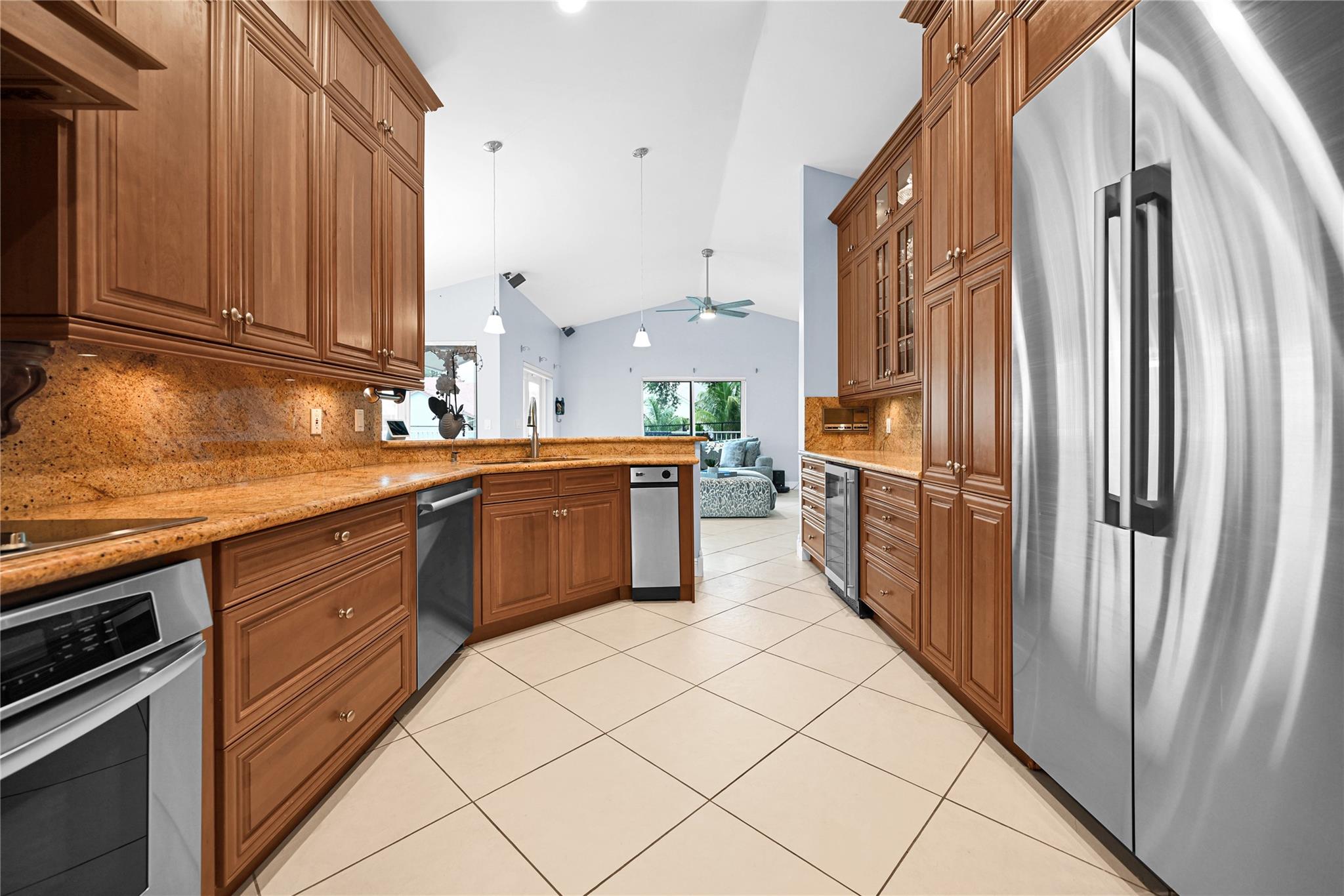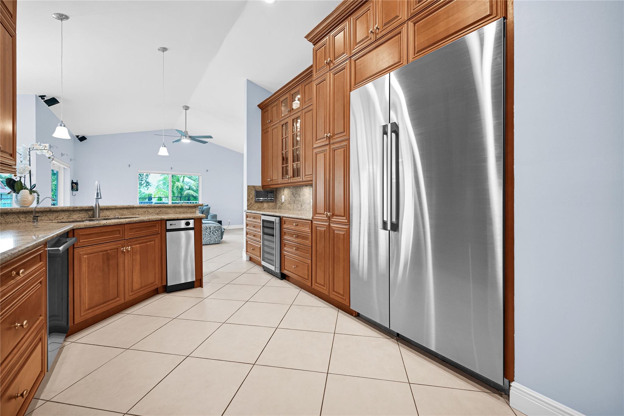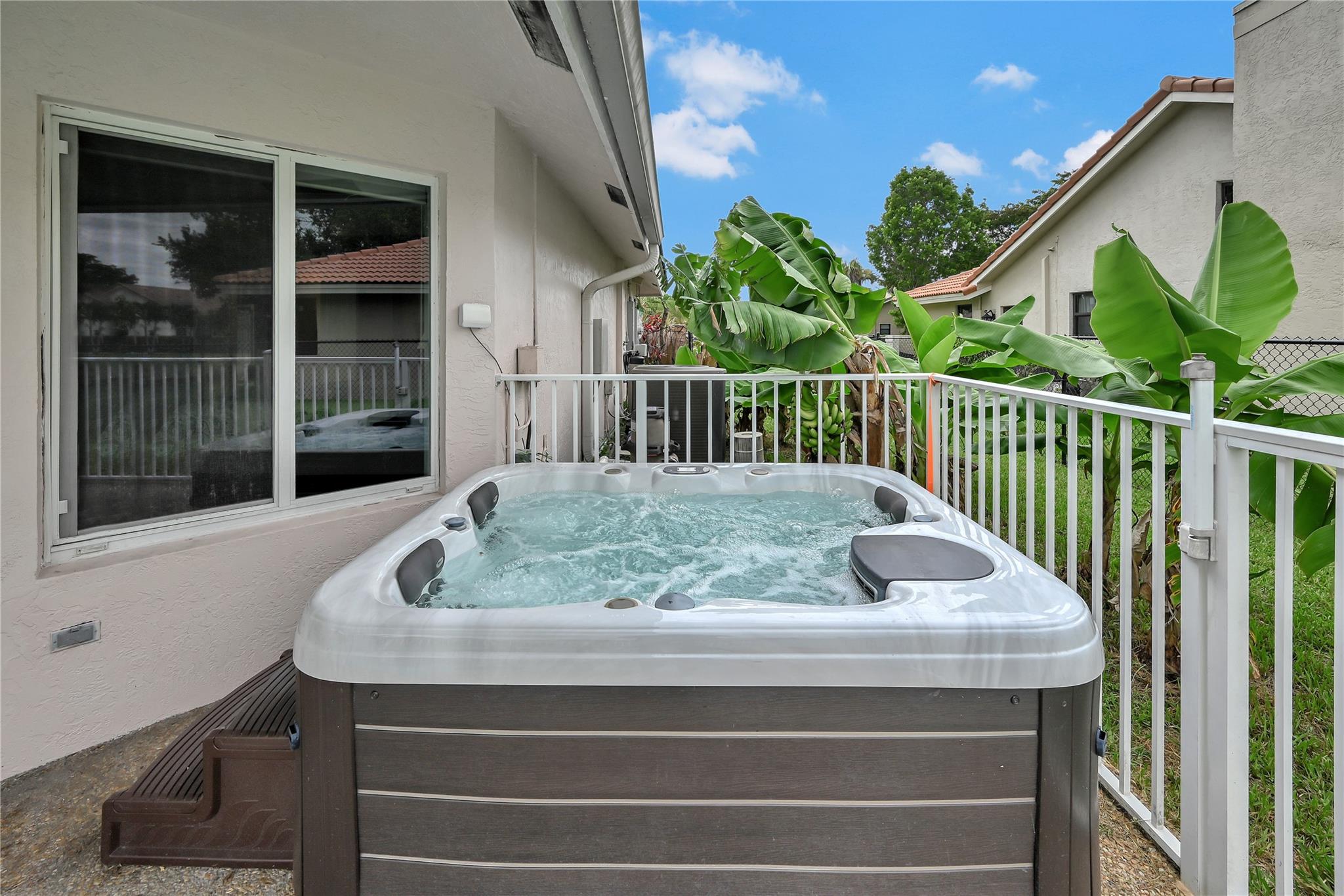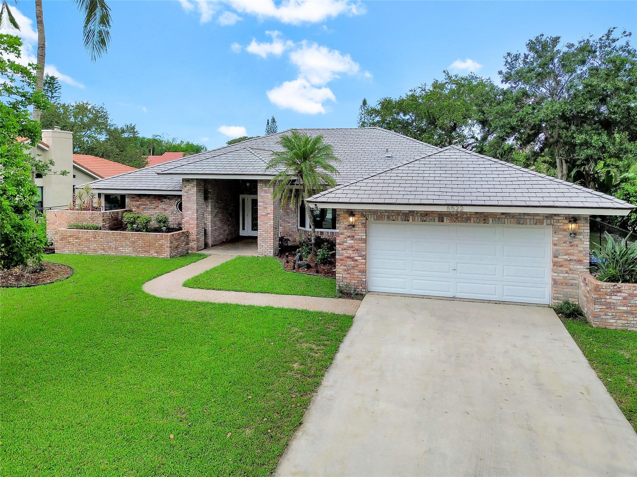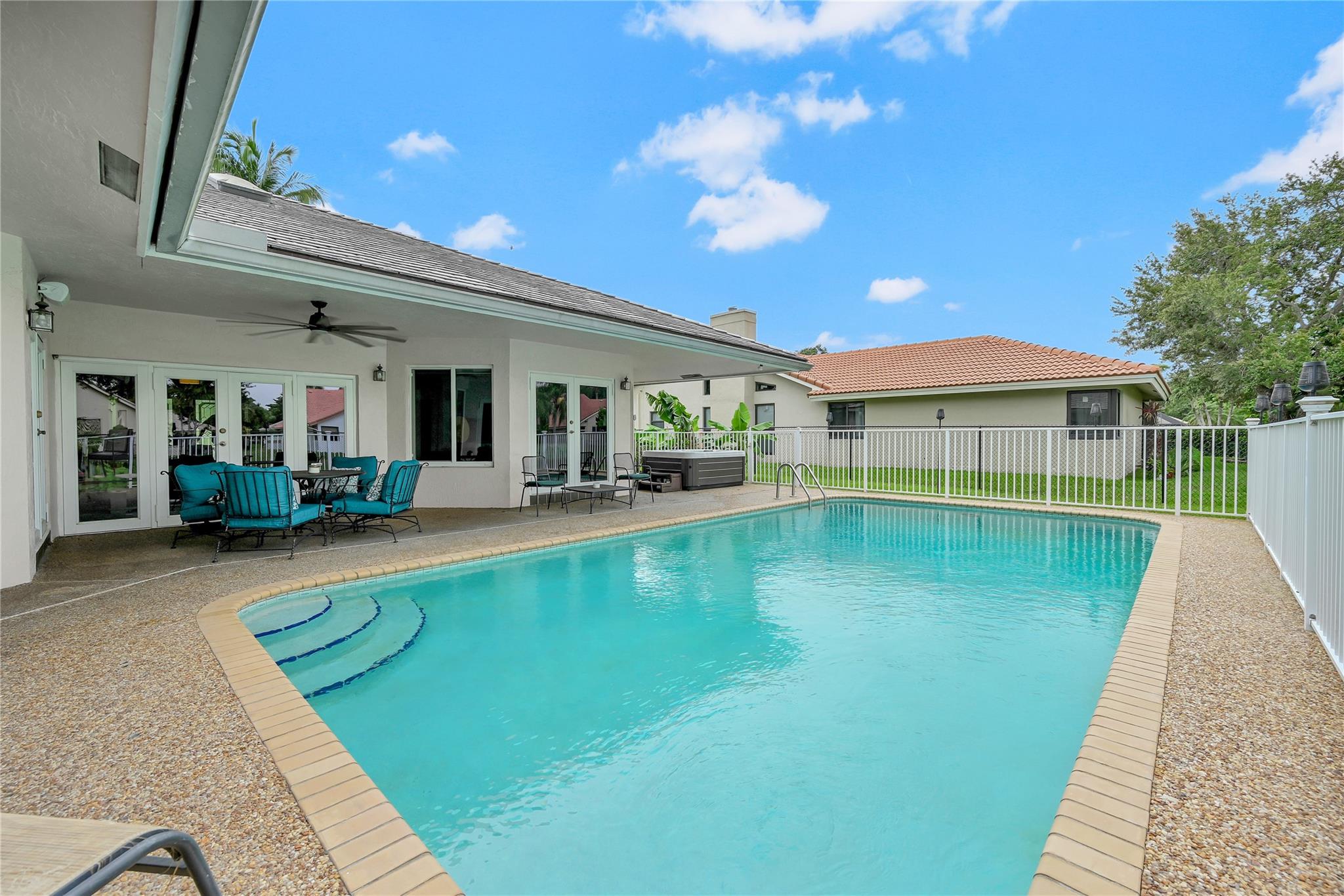 This 4 bedroom pool home in Pine Ridge offers a blend of luxury and practicality. Situated conveniently in Coral Springs, it boasts several attractive features such as hurricane impact windows and doors, ensuring safety and peace of mind during storms. The salt water pool and hot tub provide a relaxing retreat right in your backyard. Inside, the kitchen is equipped with high-end appliances including a Dacor stainless steel fridge, complemented by granite countertops. The vaulted ceilings add an airy, spacious feel to the living areas. The split-level bedroom floor plan ensures privacy. Smart features integrated throughout the home offer convenience and efficiency. With a low HOA, residents enjoy community living without excessive fees.