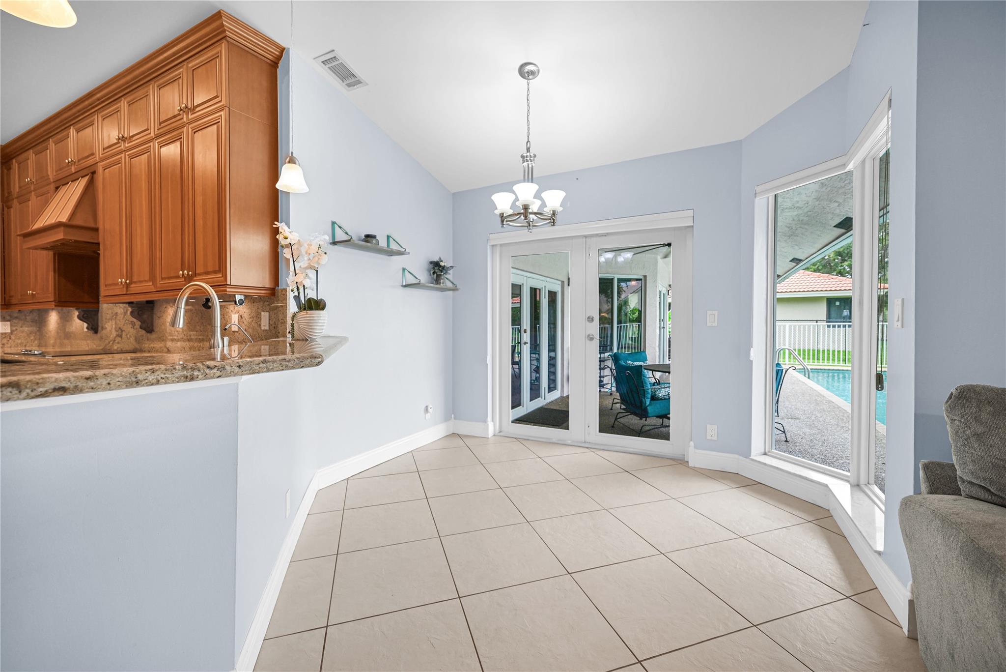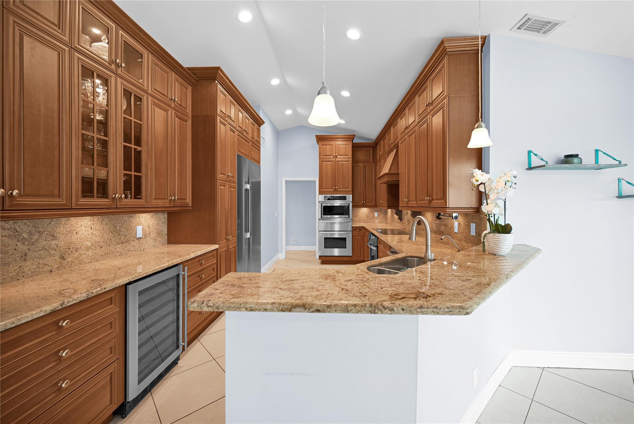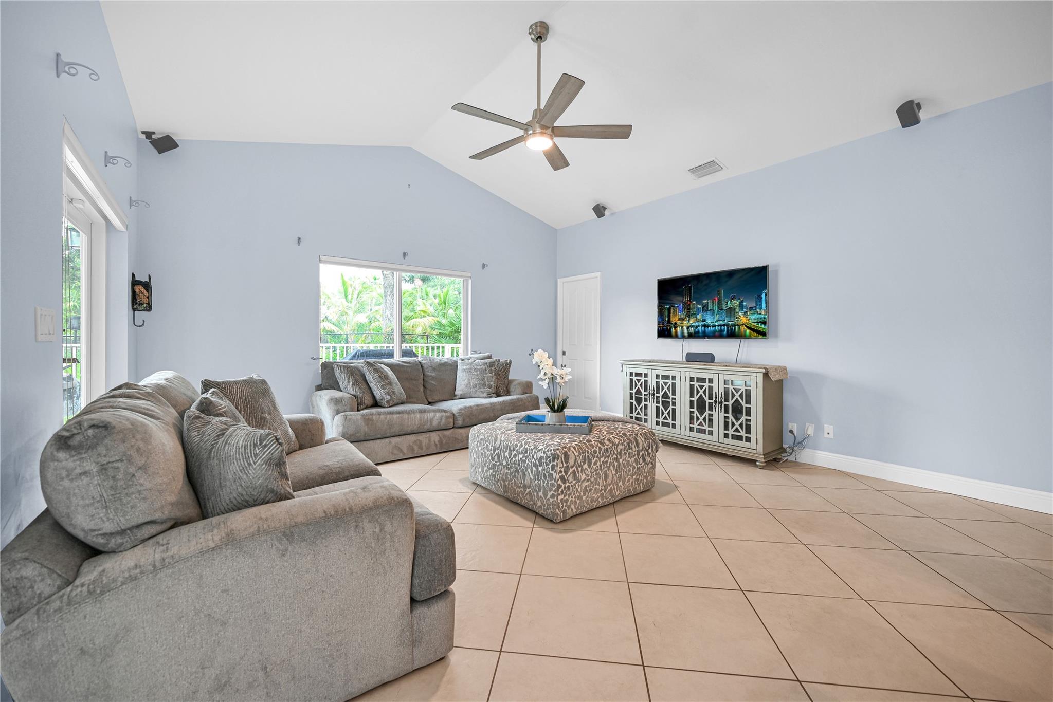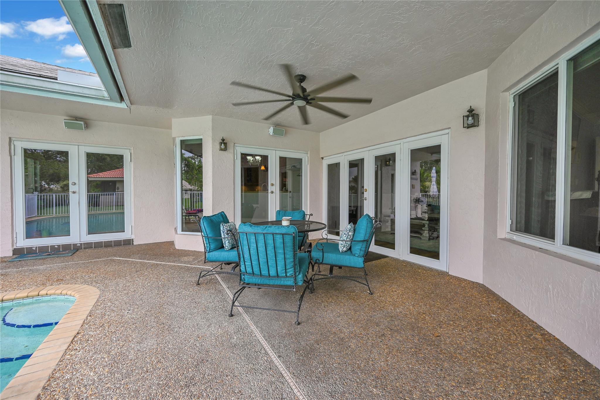 This 4 bedroom pool home in Pine Ridge offers a blend of luxury and practicality. Situated conveniently in Coral Springs, it boasts several attractive features such as hurricane impact windows and doors, ensuring safety and peace of mind during storms. The salt water pool and hot tub provide a relaxing retreat right in your backyard. Inside, the kitchen is equipped with high-end appliances including a Dacor stainless steel fridge, complemented by granite countertops. The vaulted ceilings add an airy, spacious feel to the living areas. The split-level bedroom floor plan ensures privacy. Smart features integrated throughout the home offer convenience and efficiency. With a low HOA, residents enjoy community living without excessive fees.
