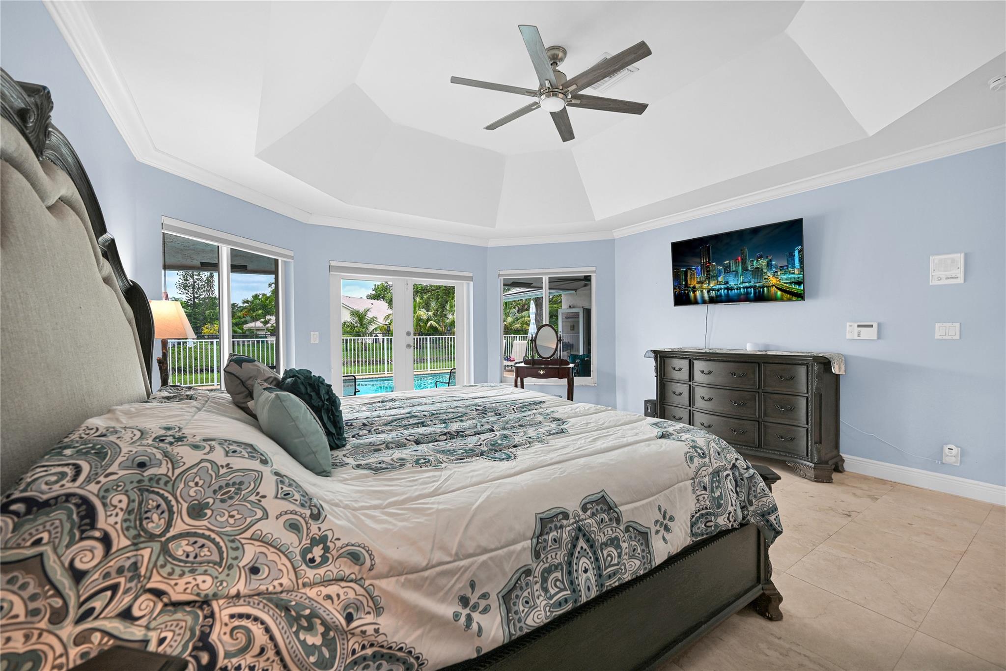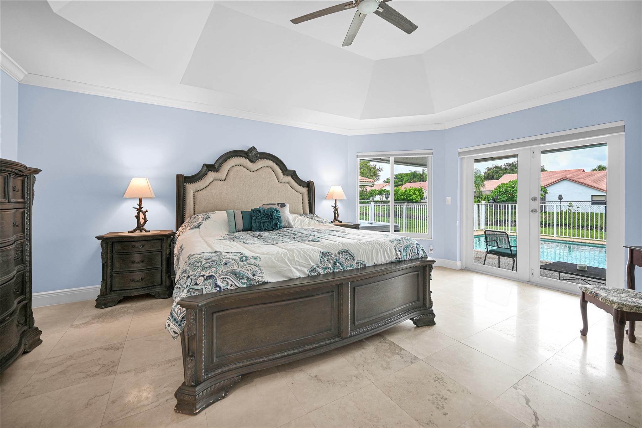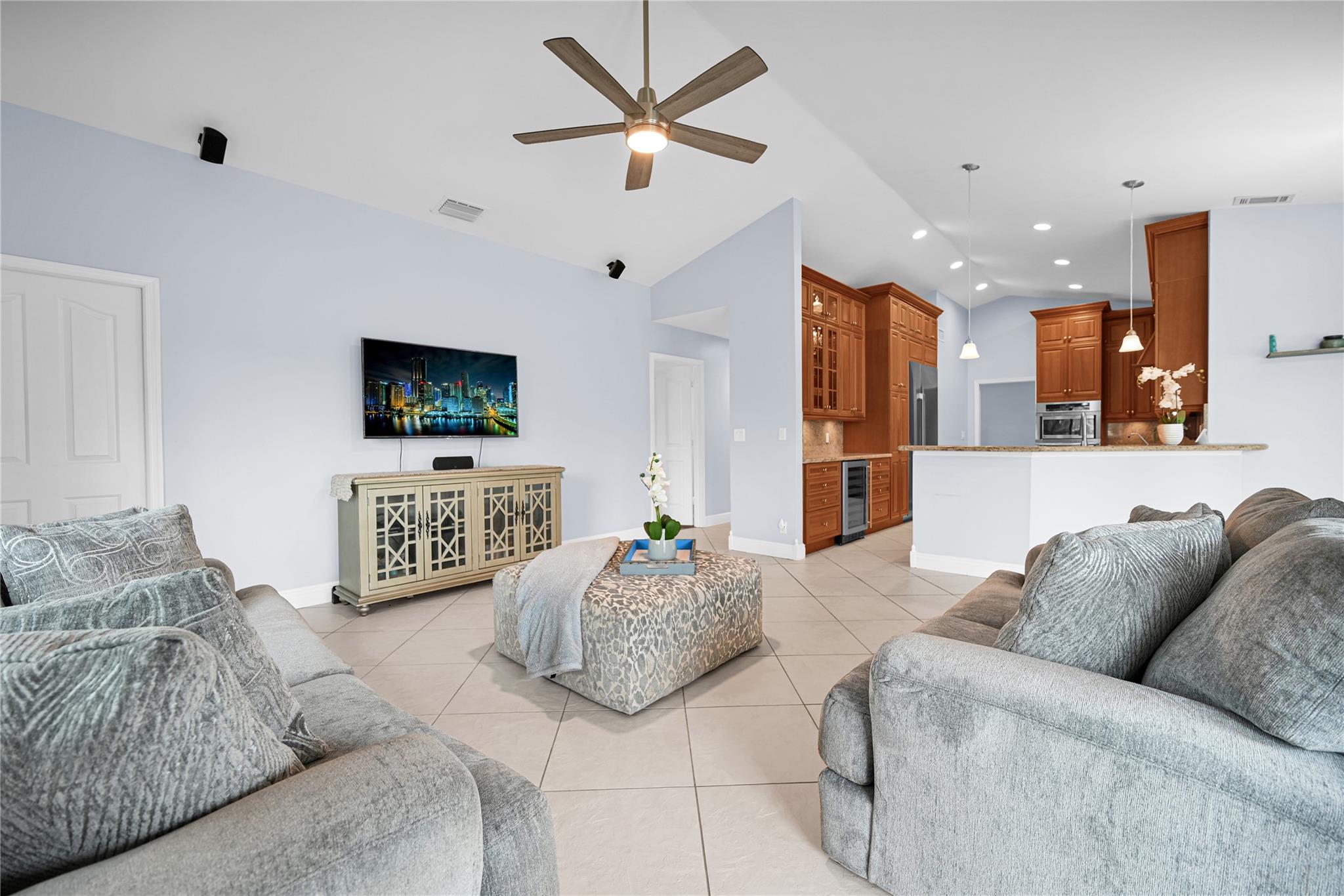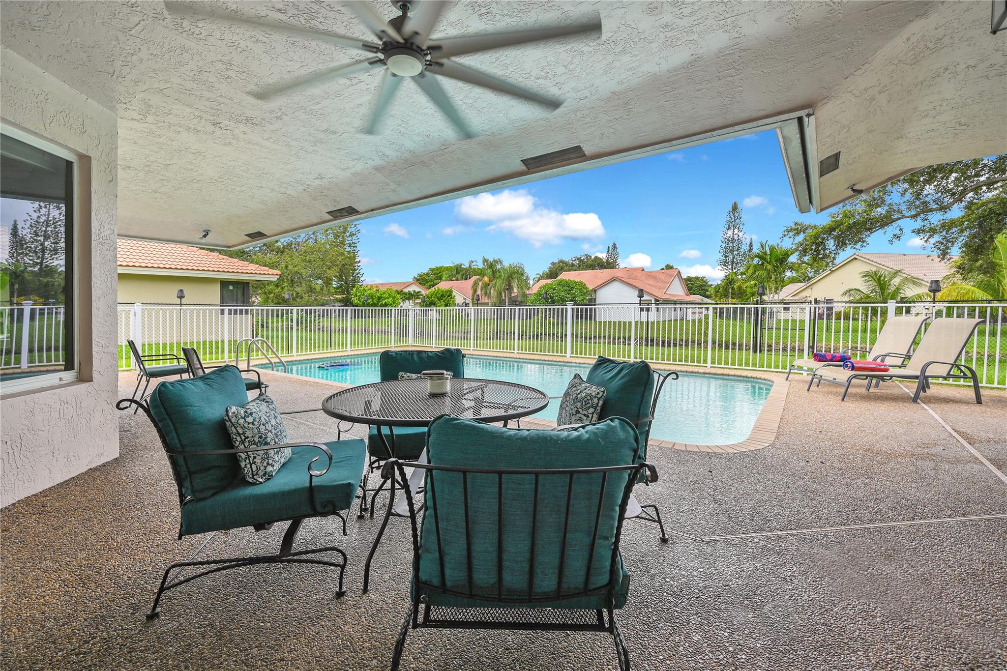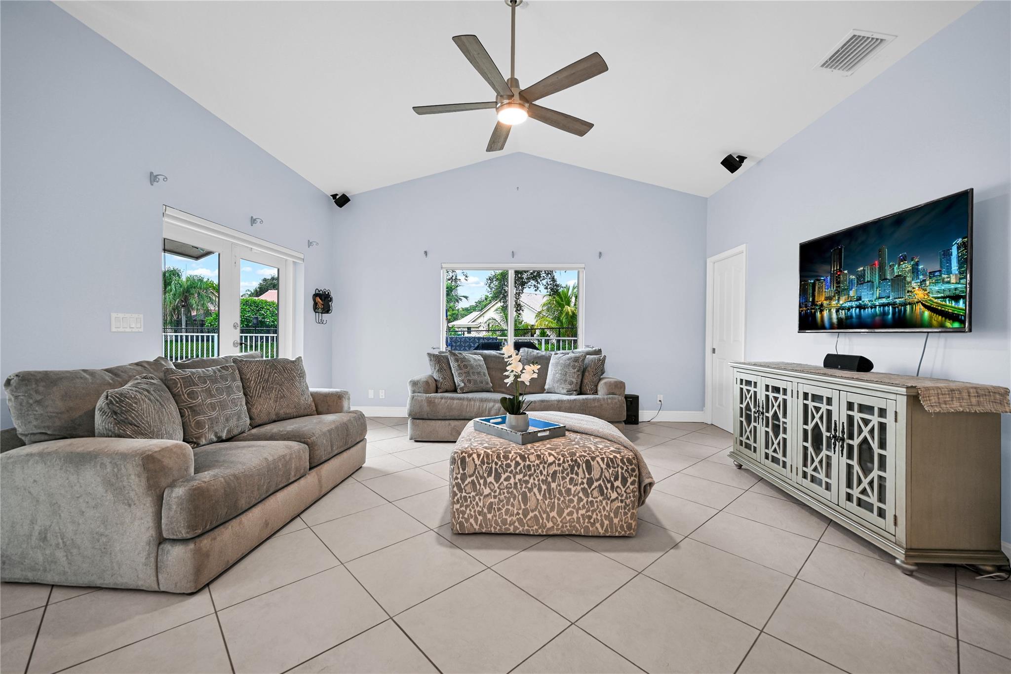 This 4 bedroom pool home in Pine Ridge offers a blend of luxury and practicality. Situated conveniently in Coral Springs, it boasts several attractive features such as hurricane impact windows and doors, ensuring safety and peace of mind during storms. The salt water pool and hot tub provide a relaxing retreat right in your backyard. Inside, the kitchen is equipped with high-end appliances including a Dacor stainless steel fridge, complemented by granite countertops. The vaulted ceilings add an airy, spacious feel to the living areas. The split-level bedroom floor plan ensures privacy. Smart features integrated throughout the home offer convenience and efficiency. With a low HOA, residents enjoy community living without excessive fees.