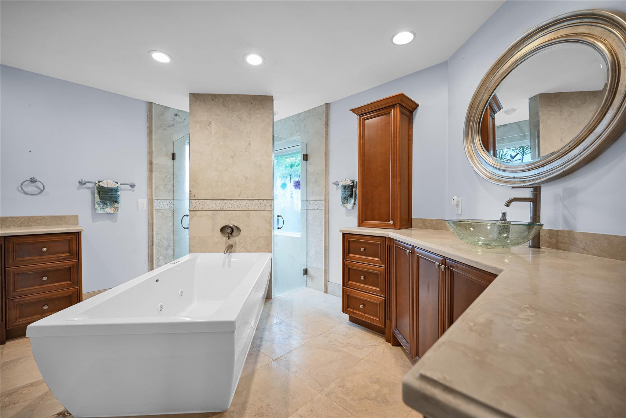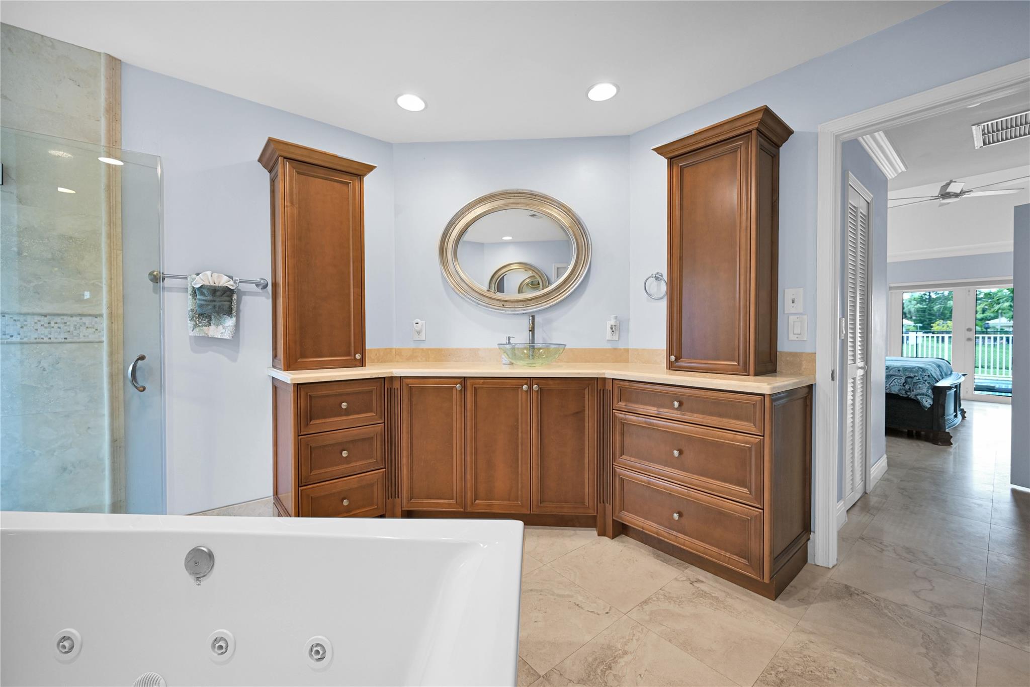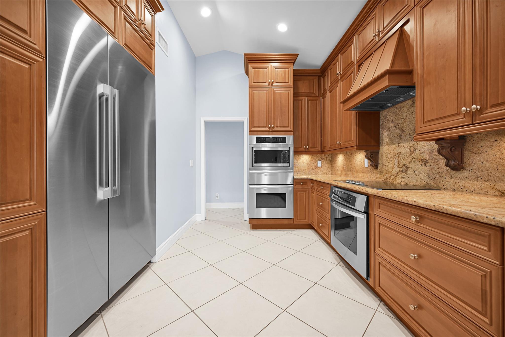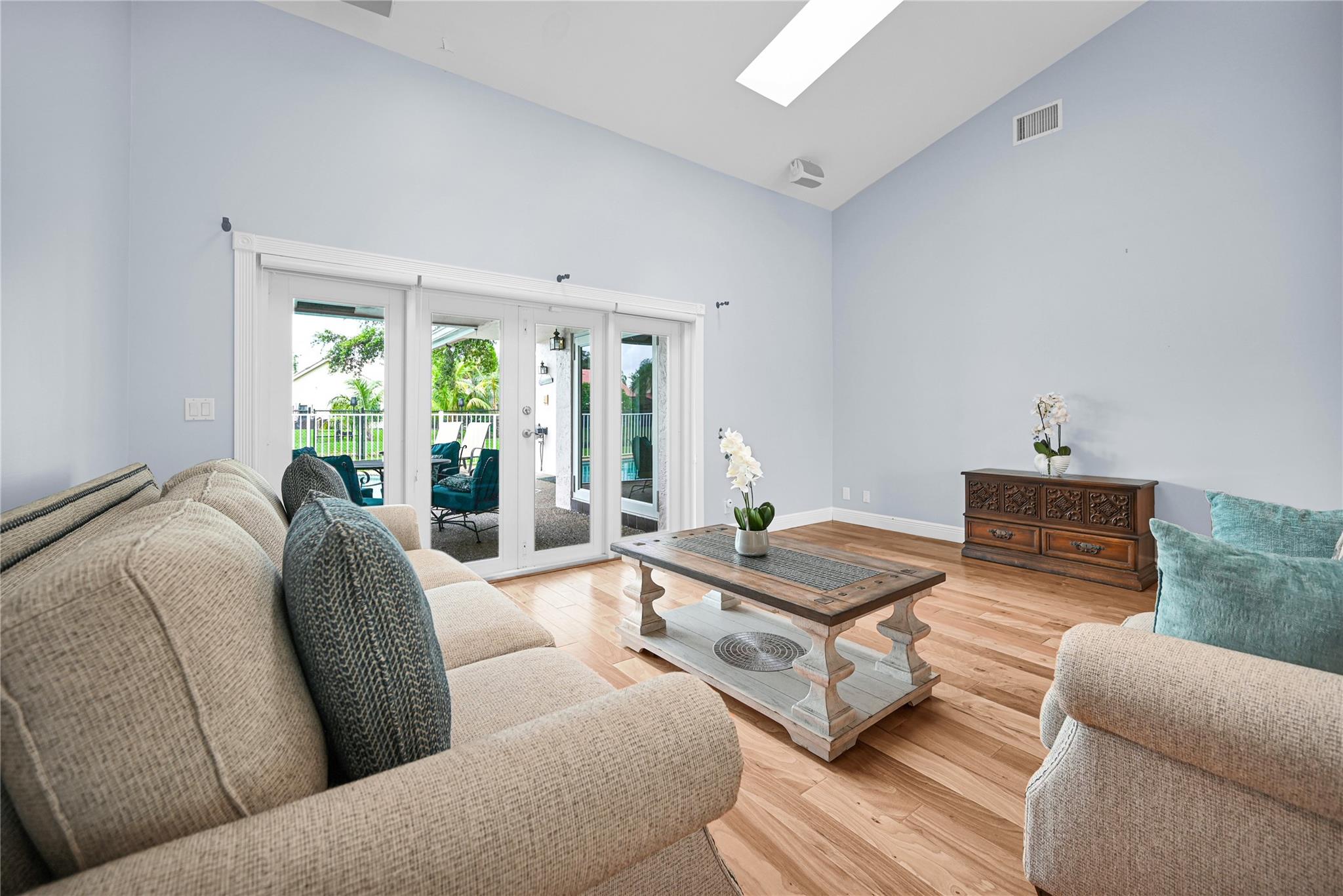 This 4 bedroom pool home in Pine Ridge offers a blend of luxury and practicality. Situated conveniently in Coral Springs, it boasts several attractive features such as hurricane impact windows and doors, ensuring safety and peace of mind during storms. The salt water pool and hot tub provide a relaxing retreat right in your backyard. Inside, the kitchen is equipped with high-end appliances including a Dacor stainless steel fridge, complemented by granite countertops. The vaulted ceilings add an airy, spacious feel to the living areas. The split-level bedroom floor plan ensures privacy. Smart features integrated throughout the home offer convenience and efficiency. With a low HOA, residents enjoy community living without excessive fees.