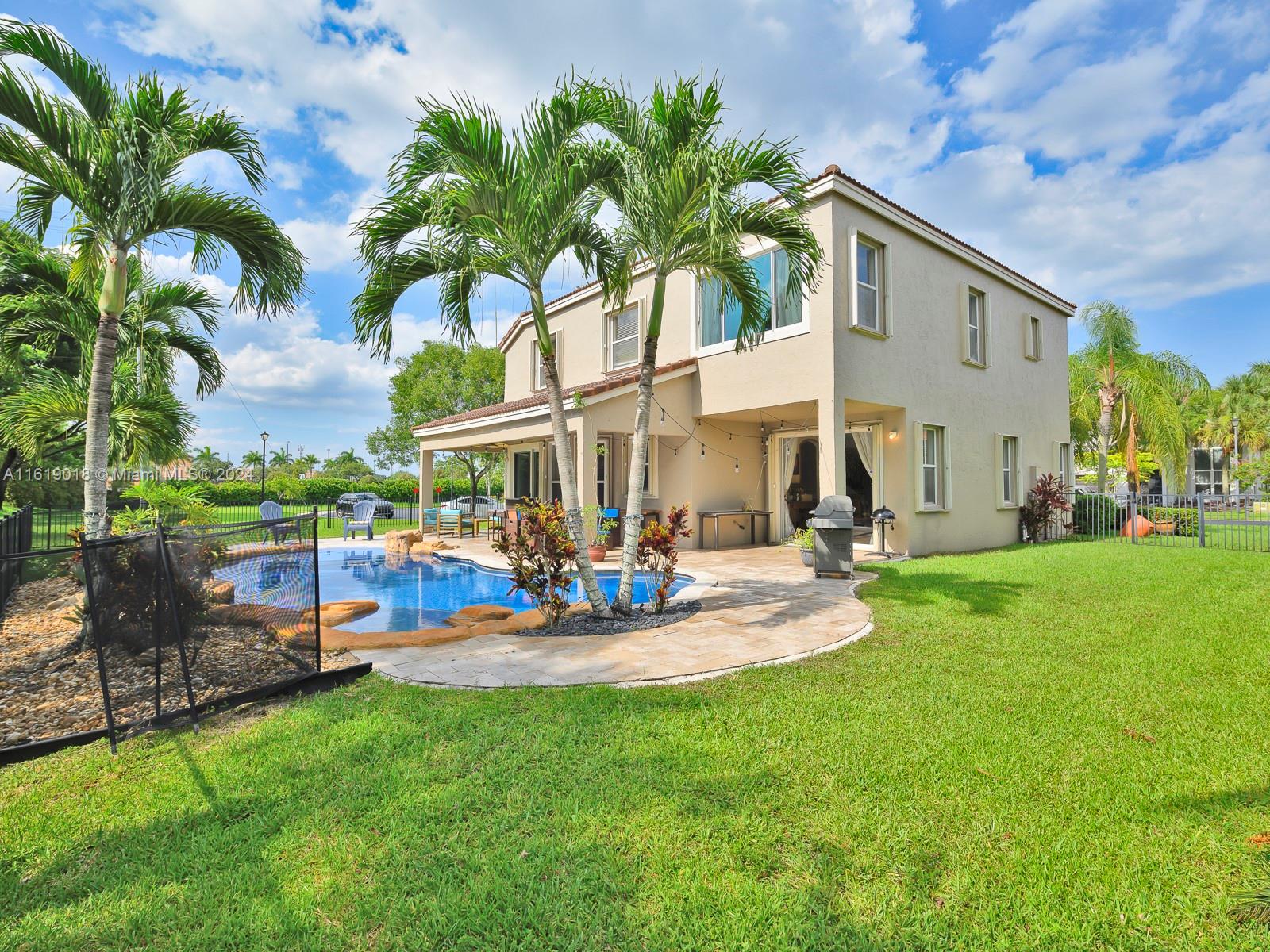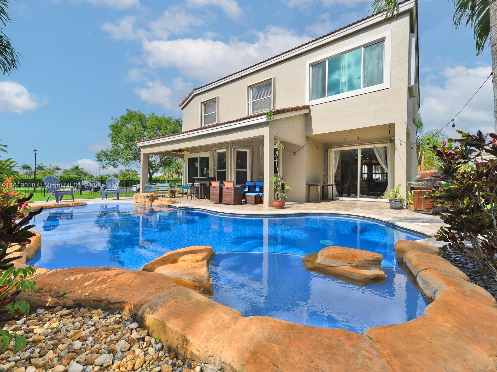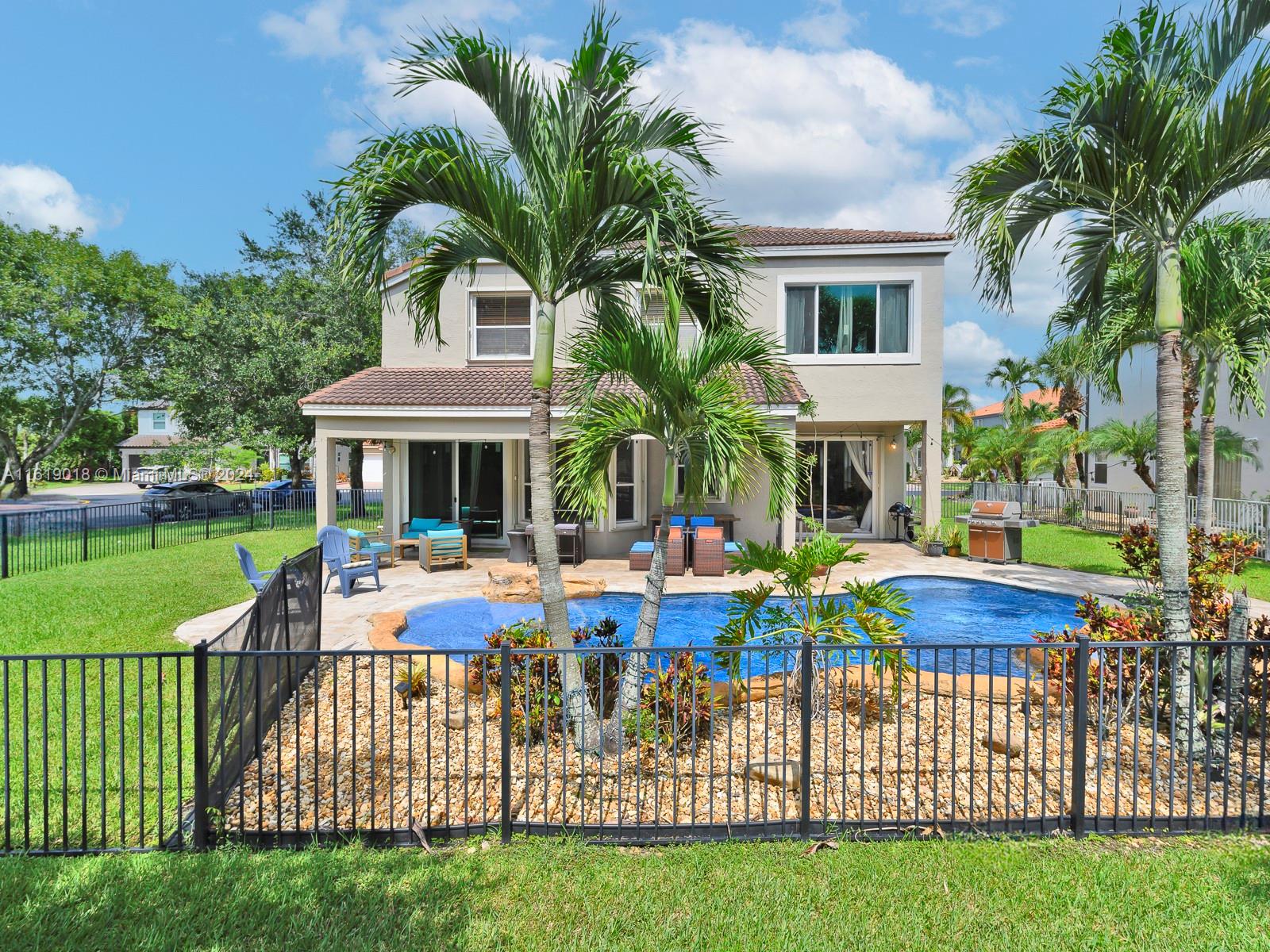 This home features very spacious rooms, custom staircase, Italian tile on first floor, laminate flooring upstairs, newer remodeled kitchen, accordion shutters, family room sliding door and primary bedroom one window are impact, new 2024 A/C down stairs, primary bedroom as two walk in closets, newer lagoon style pool, located on a cul-de-sac with only one neighbor, gated community with pool, gym and tot lot. Close to Memorial hospital, shopping, highways, YMCA and top-rated schools.