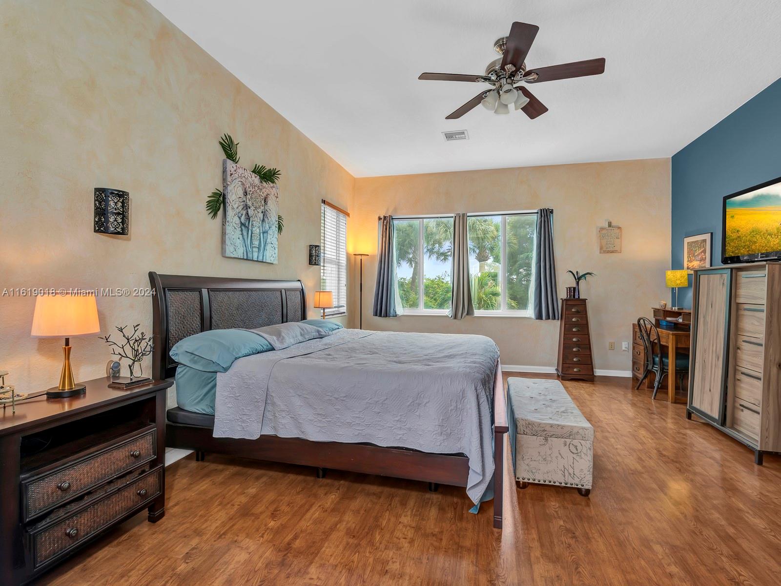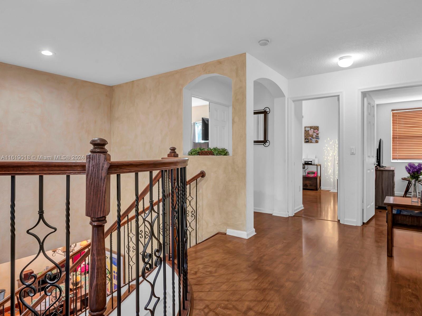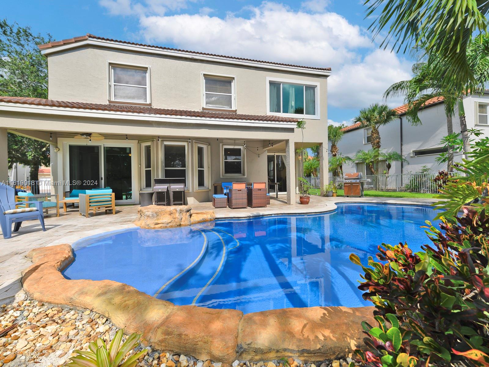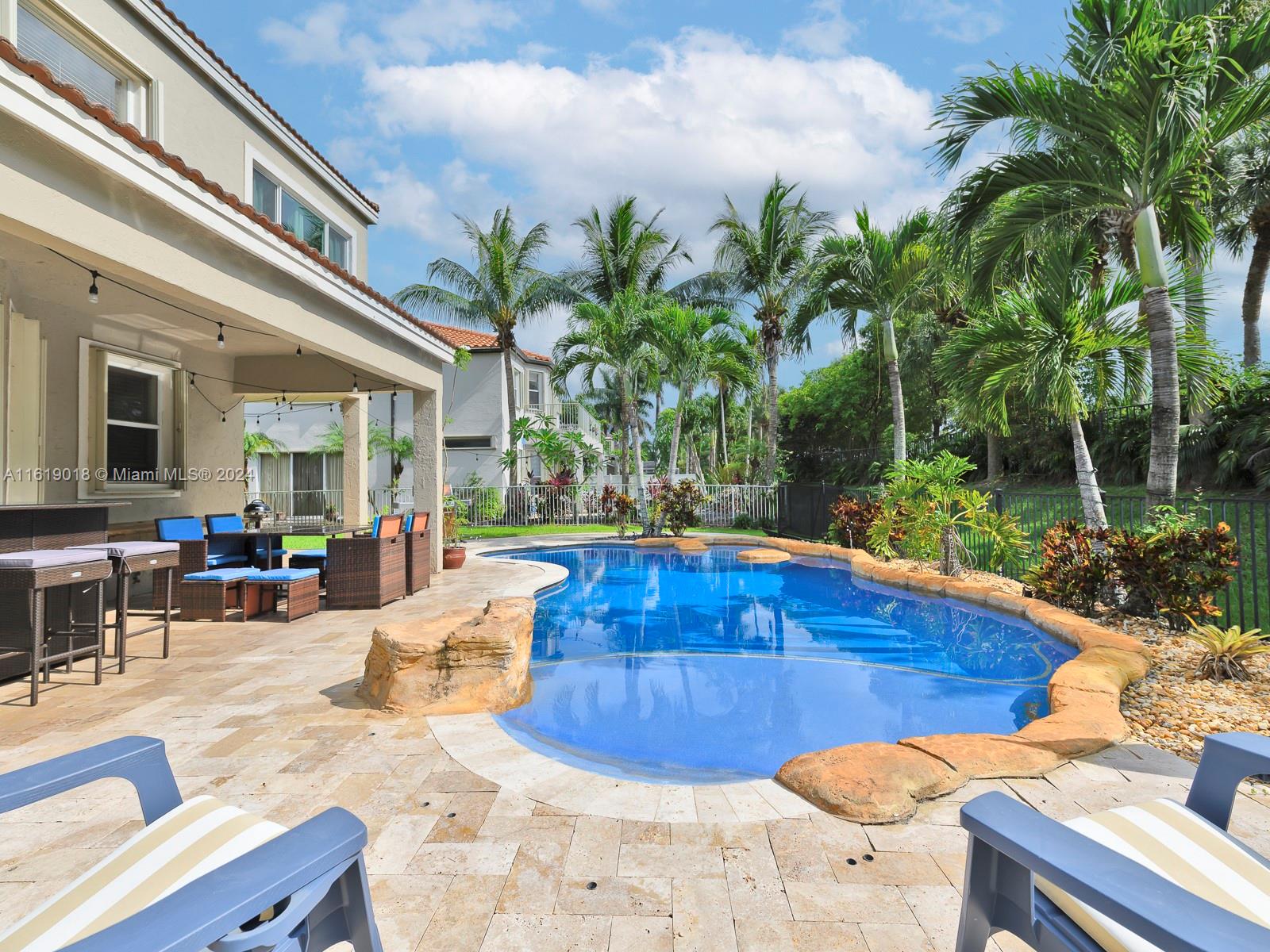 This home features very spacious rooms, custom staircase, Italian tile on first floor, laminate flooring upstairs, newer remodeled kitchen, accordion shutters, family room sliding door and primary bedroom one window are impact, new 2024 A/C down stairs, primary bedroom as two walk in closets, newer lagoon style pool, located on a cul-de-sac with only one neighbor, gated community with pool, gym and tot lot. Close to Memorial hospital, shopping, highways, YMCA and top-rated schools.