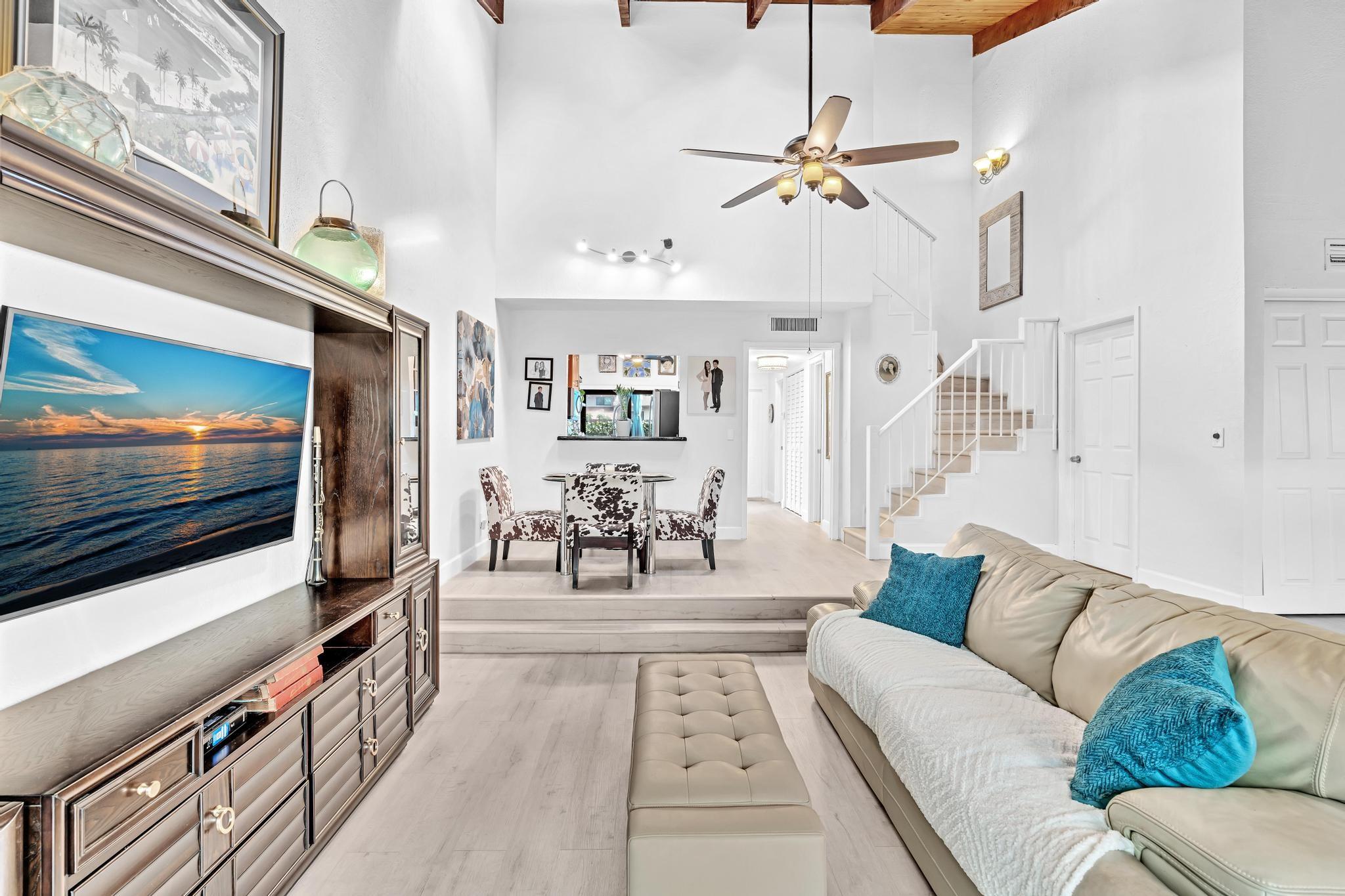 Two story townhouse in the heart of Davie. Two bedrooms w/the potential to convert a cozy den into a 3rd bedroom, this offers flexible living options to suit your needs. 1st floor is perfect for entertaining, modern kitchen w/stainless appliances. Skylights provide natural light for a warm & inviting atmosphere. Upstairs the master suite with an ensuite renovated bath & ample closet space.2nd bedroom located on the 1st floor with easy access to 1st floor full bath. Highlights include 2 private fenced outdoor patio’s, ideal for relaxing or hosting bbq’s. Newer roof & hurricane protected. Community swimming pool, fitness center, a playground, tennis, basketball, pickle ball&is close to top-rated schools, shopping, dining and major highways providing easy access to everything.