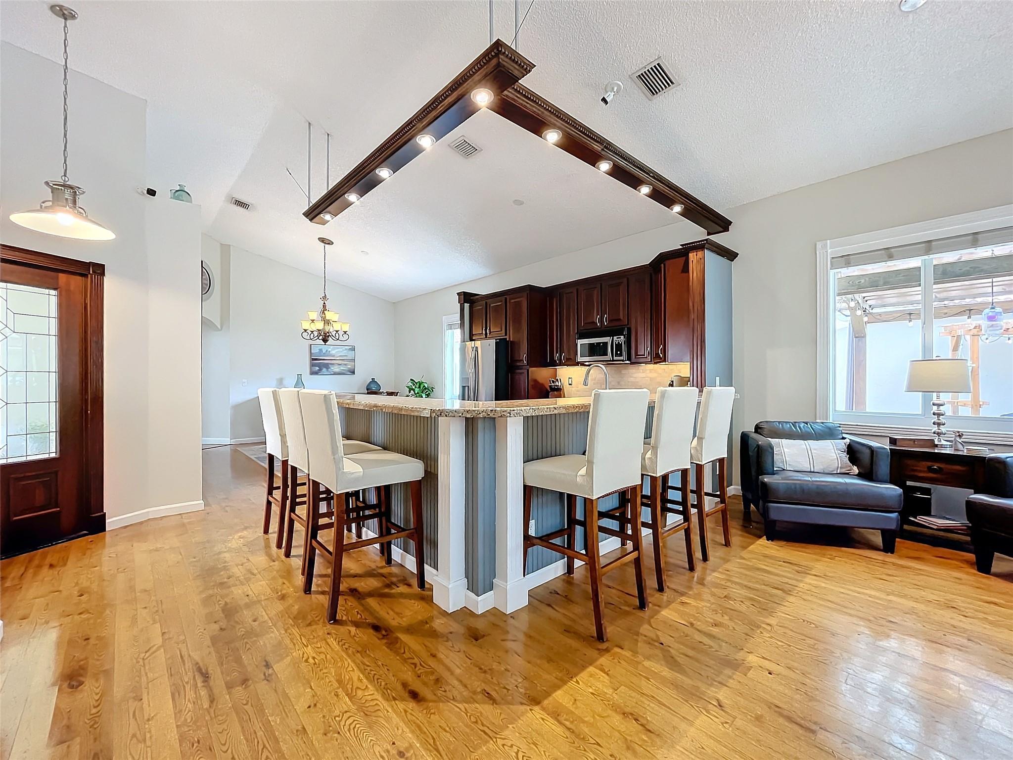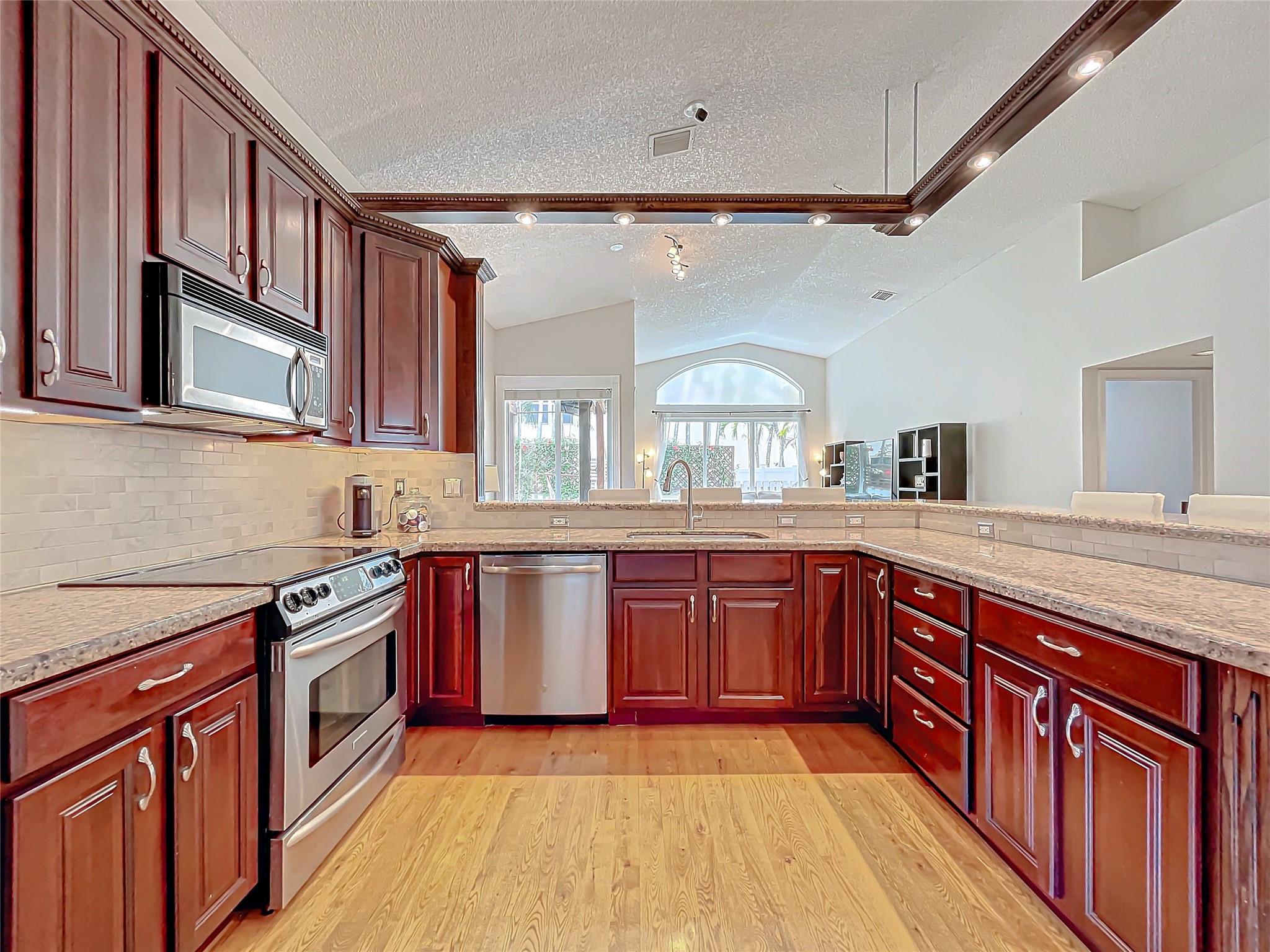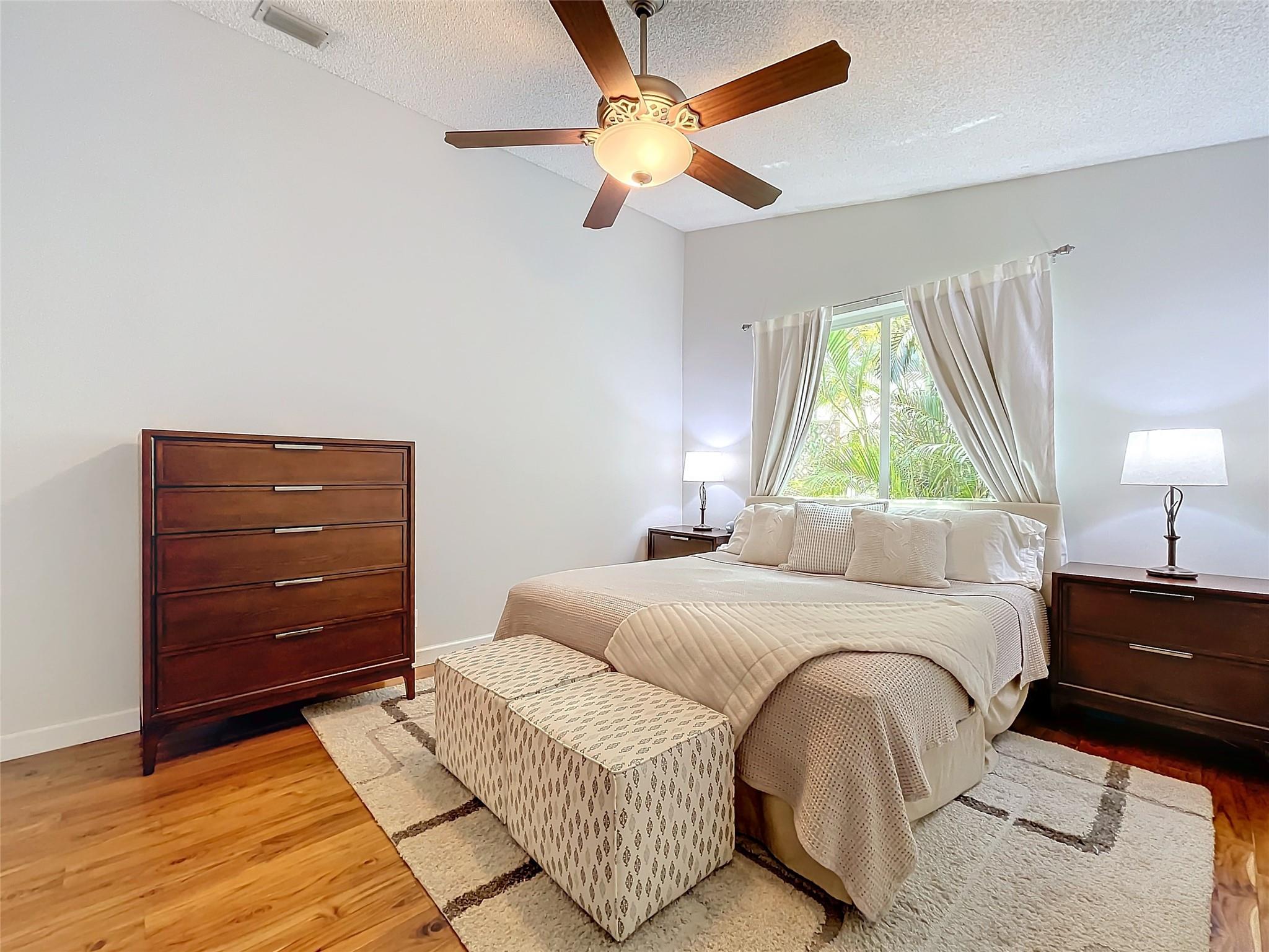 Must see this spectacular one-story home! Plenty of space for entertaining indoors or out! Featuring large Kitchen open to Family room and Dining room with vaulted ceilings, High Impact Windows providing lots of natural light. Split bedroom plan, custom closets and hardwood floors. Primary suite w seated area, dual sinks, and shower. Remodeled backyard covered patio w custom Pergola with furnishings, mounted TV, storage hutch, mood lighting and speakers, Grill & Smoker-Perfect setting for all gatherings! New roof 2024. Newer appliances. Security system. Starter or downsizing, tour this lovely 3B/2B, 2 car garage, fenced, in the gated community located in Davie, Regency sq, next to Southwest Ranches and Weston. Close to Shops, Parks, Cleveland Clinic/Hospital and more. A rated schools.