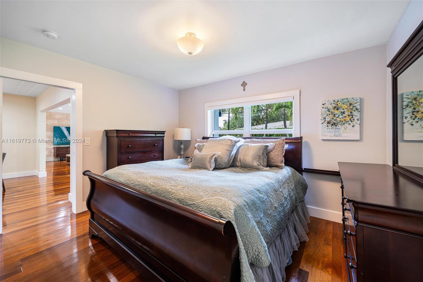 Turn key fully renovated 3/2 + two car garage Coral Gables home with amazing modern wood flooring throughout. The open concept design and flow-through space make it ideal for comfortable entertaining. Updates include impact windows and doors, beautiful picture window at the entrance. It also boasts a welcoming front porch, Spanish tile roof, tray ceilings, charming archways, remodeled bathrooms and kitchen. The kitchen features lovely subway tile, light wood cabinetry on granite countertops, and stainless steel appliances. The living and Florida rooms are spacious with large windows that allow ample natural light and garden views. Additionally, there is an huge 2-car garage and a nice sized backyard with Chicago Bricks, offering space to build a pool if desired.