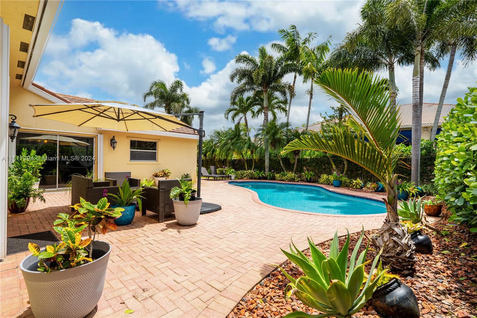 Nestled in the heart of Pembroke Pines, this beautifully maintained 3 Bedroom, 2 Bathroom residence w/in the prestigious gated community of Estancia boasts a harmonious blend of style & comfort. Step inside to discover an airy open floor plan, highlighted by an upgraded kitchen featuring granite countertops w/a large Island & new SS appliances. The spacious living areas flow seamlessly, perfect for both everyday living & entertaining. Outside, a large patio surrounding the pool & lushly landscaped backyard offers a tranquil retreat. Ideally located near top-rated schools, parks, shopping centers & dining options, this home provides the ultimate in convenience & lifestyle. Don’t miss out on the chance to call this impeccable property your new home (Roof replaced 2016). Open House 7/13/24.