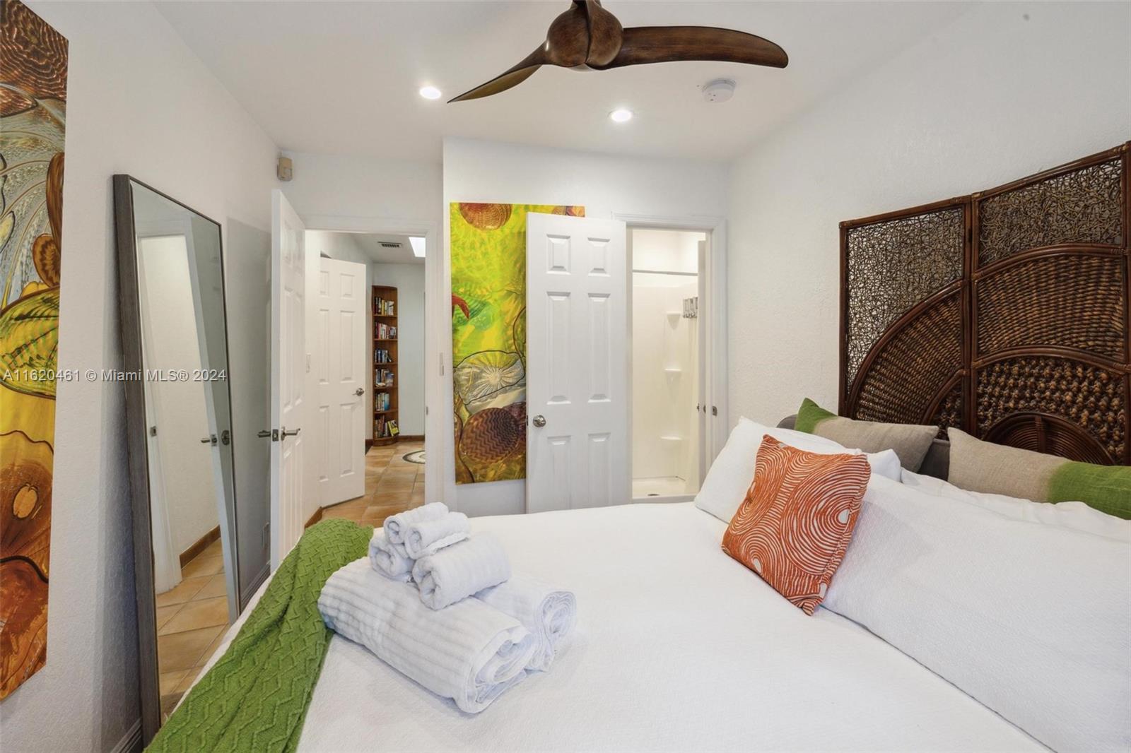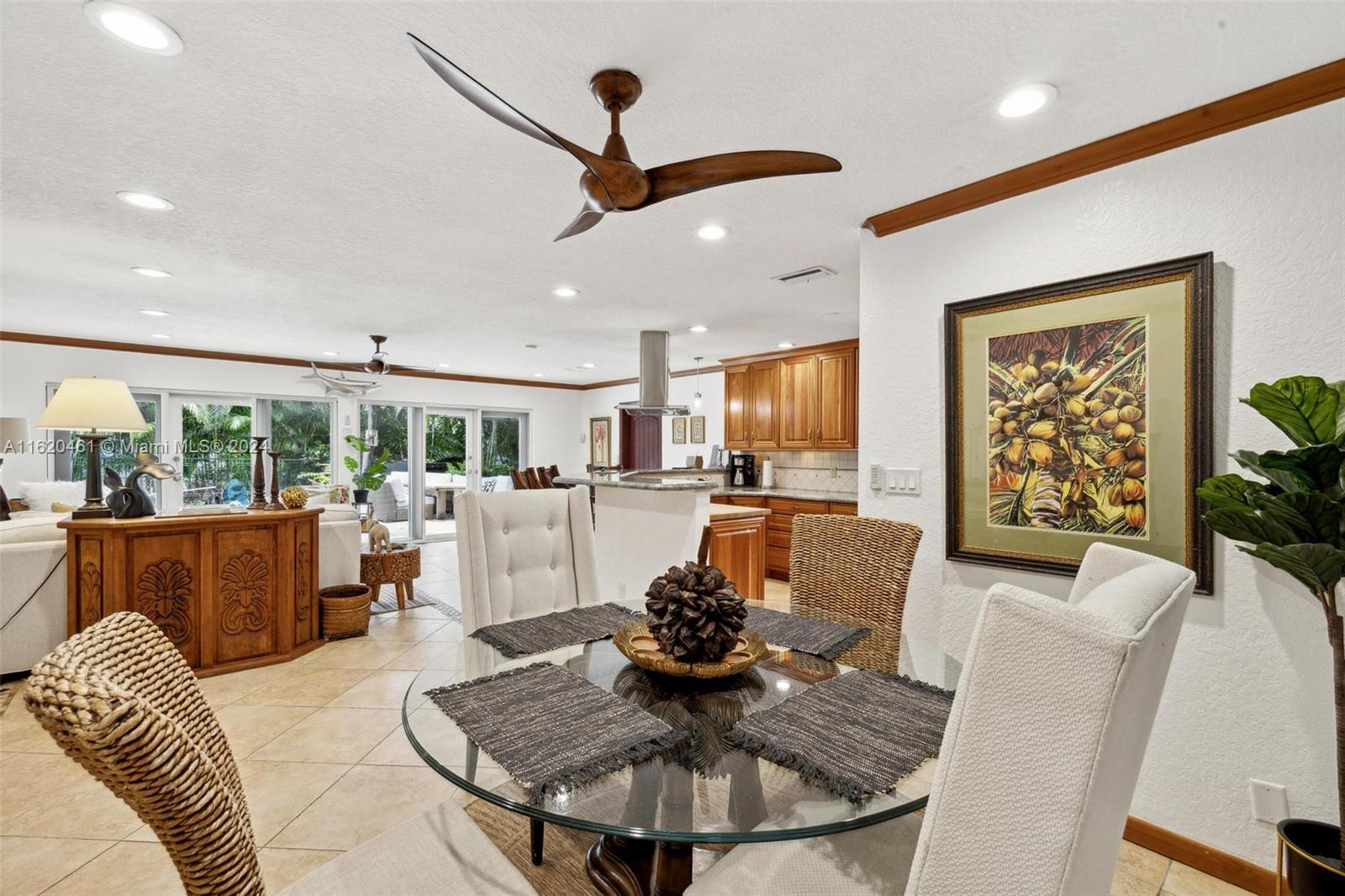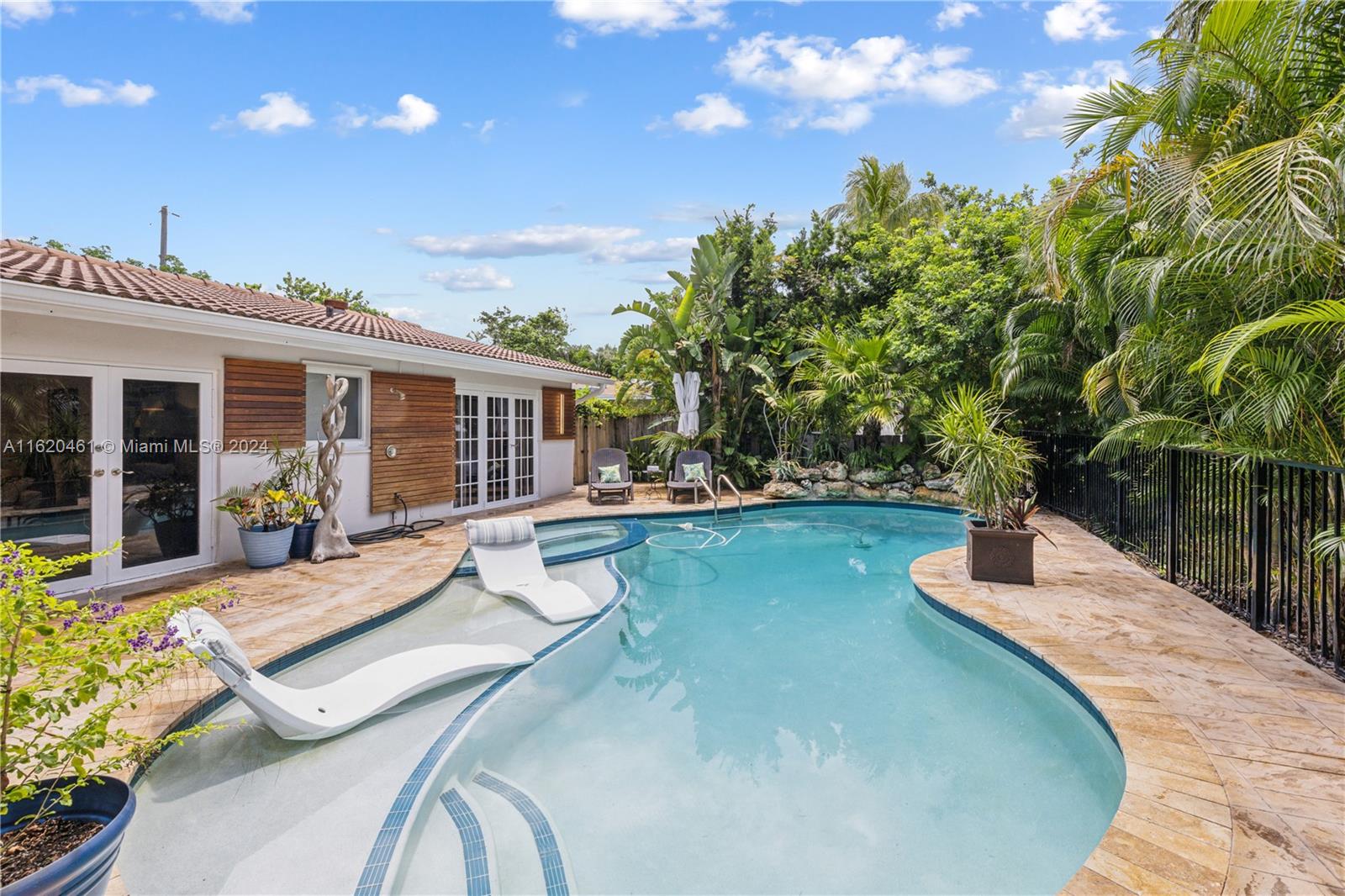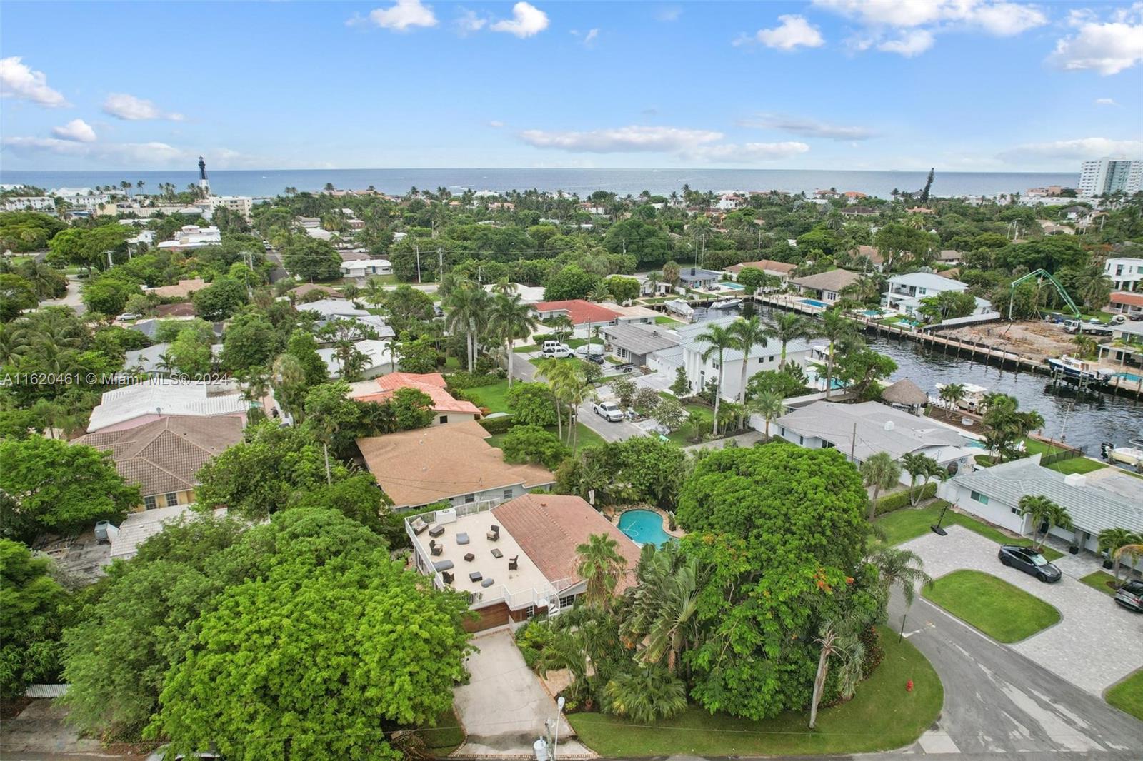 Welcome to 2400 N Riverside Drive, a captivating 4/3 Airbnb income producing property nestled in the exclusive Hillsboro Shores neighborhood. This beautifully furnished and tastefully decorated home is ideal as a full-time residence or a seasonal getaway, with the ability to generate income when not in use.The 4th bedroom is a spacious guest suite with its own kitchenette. The open-concept living area boasts a well-appointed kitchen and a butler's pantry, complete with a wine cooler. The heated saltwater pool, recently updated with new Diamond Brite and stamped concrete decking, is surrounded by lush tropical landscaping and mature trees. An expansive rooftop deck enhances the outdoor entertaining space. The property was reroofed in 2012, and the AC unit was replaced three years ago.