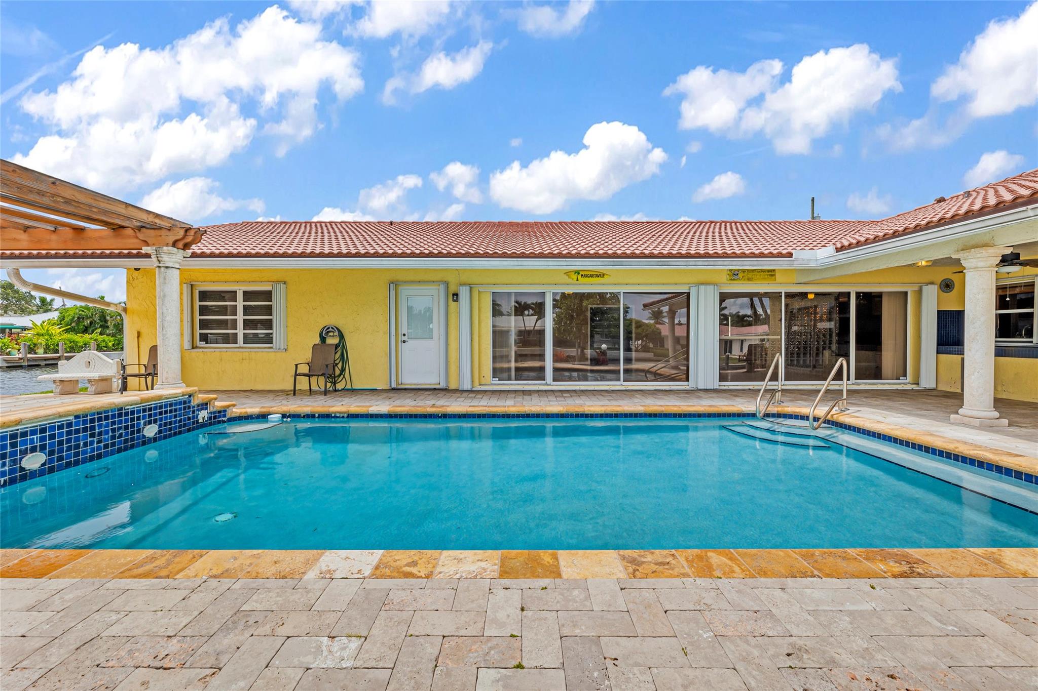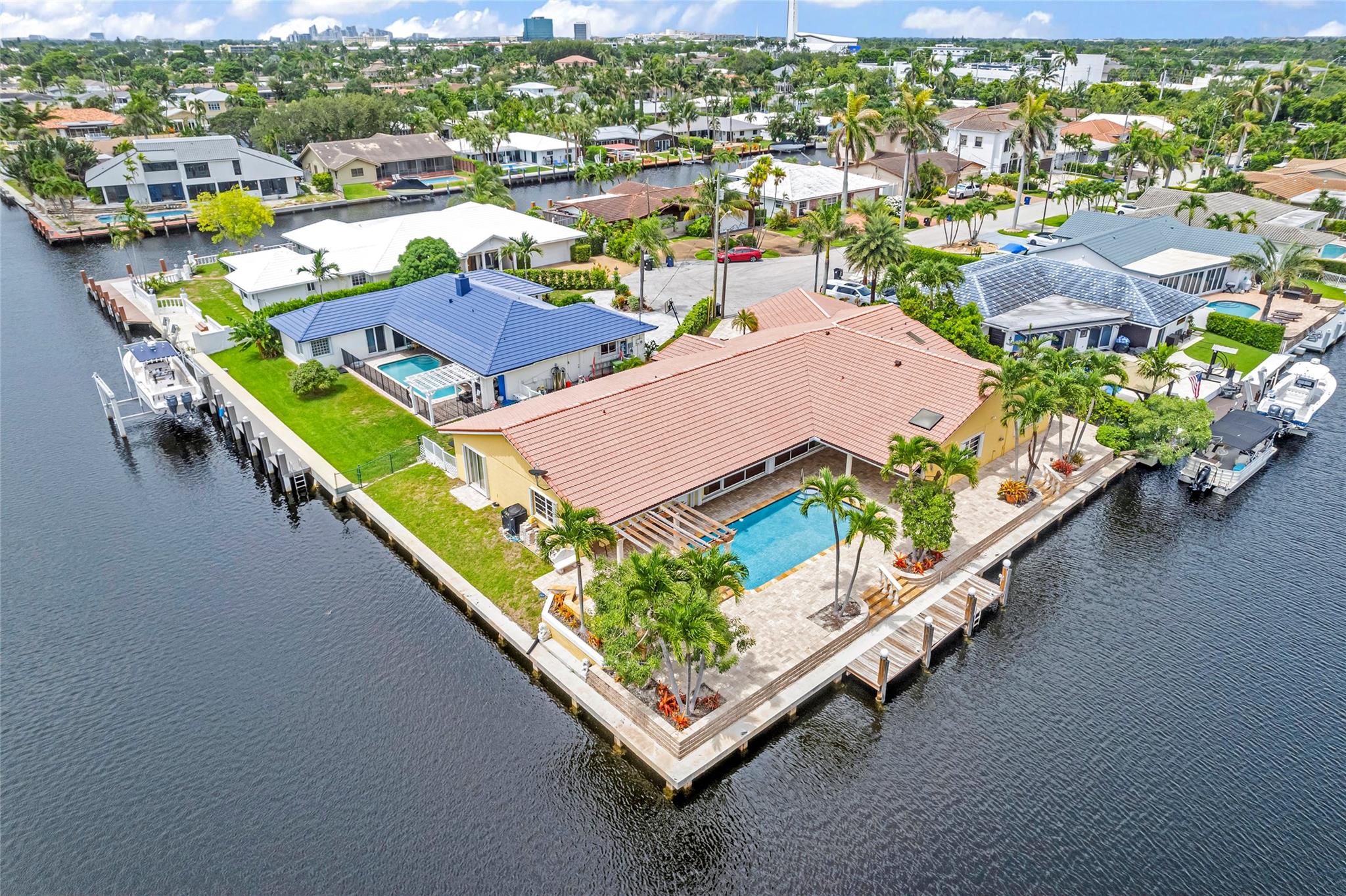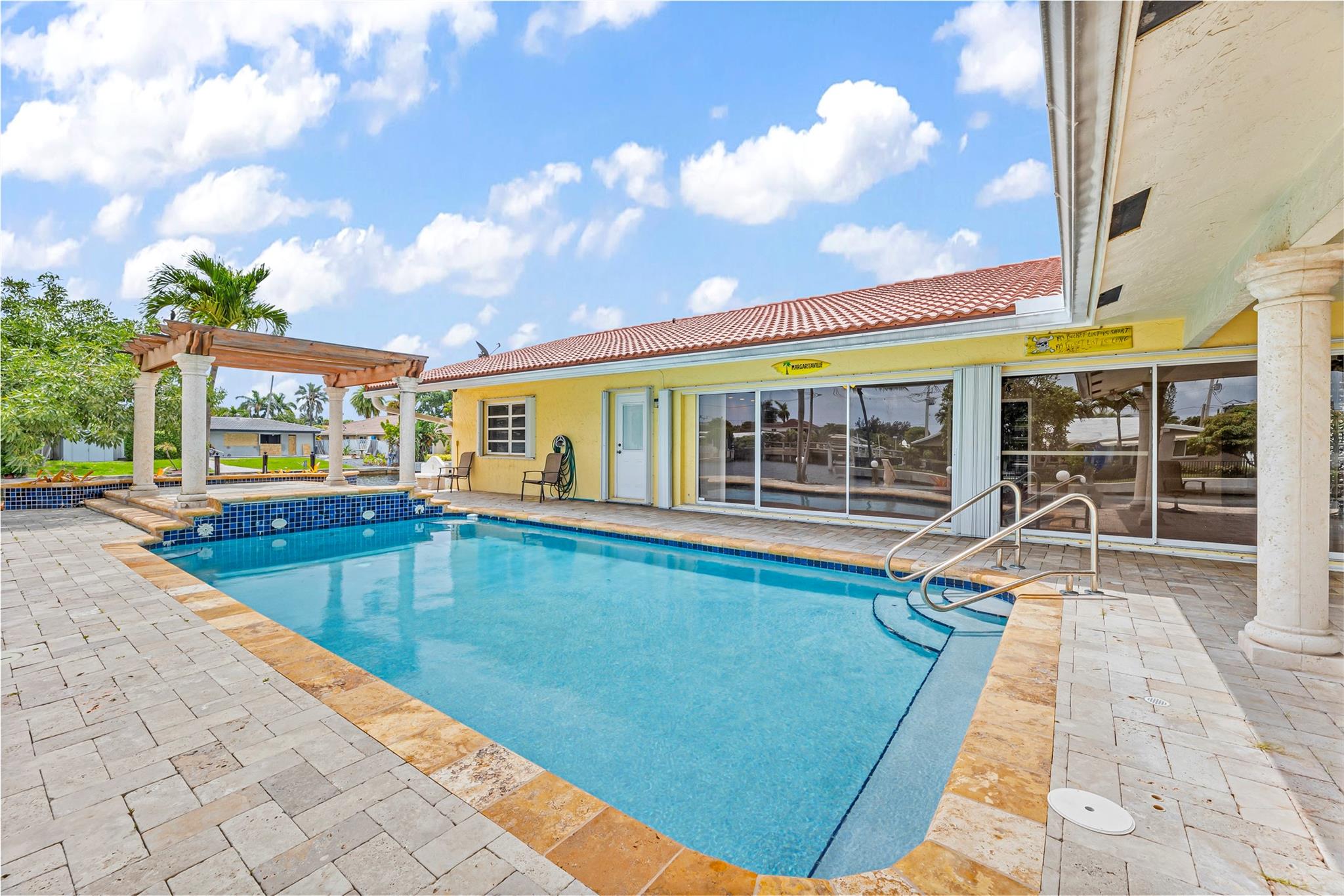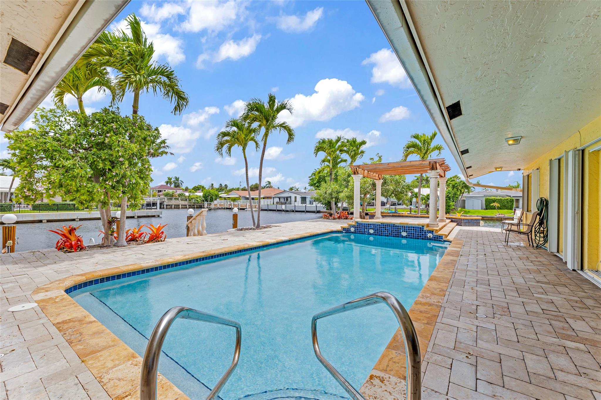 **Ready for Its New Owner!** Discover this stunning residence, perfectly situated on a sprawling point lot with approximately 200 feet of waterfront in the prestigious Lake Estates within the Landings area of Fort Lauderdale. This beautiful home boasts a large pool with a cascading waterfall, a pergola, and a built-in outdoor grill area, perfect for entertaining. Inside, you'll find spacious family rooms, generously sized rooms, tons of closets, heated pool, central vacuum system, 2 year old kitchen appliances and much much more. Located at the end of a quiet cul-de-sac, you're just moments away from the beach, shops, and restaurants. Whether you want to entertain, relax, or enjoy your morning coffee, this home has it all. A must-see inside and out!