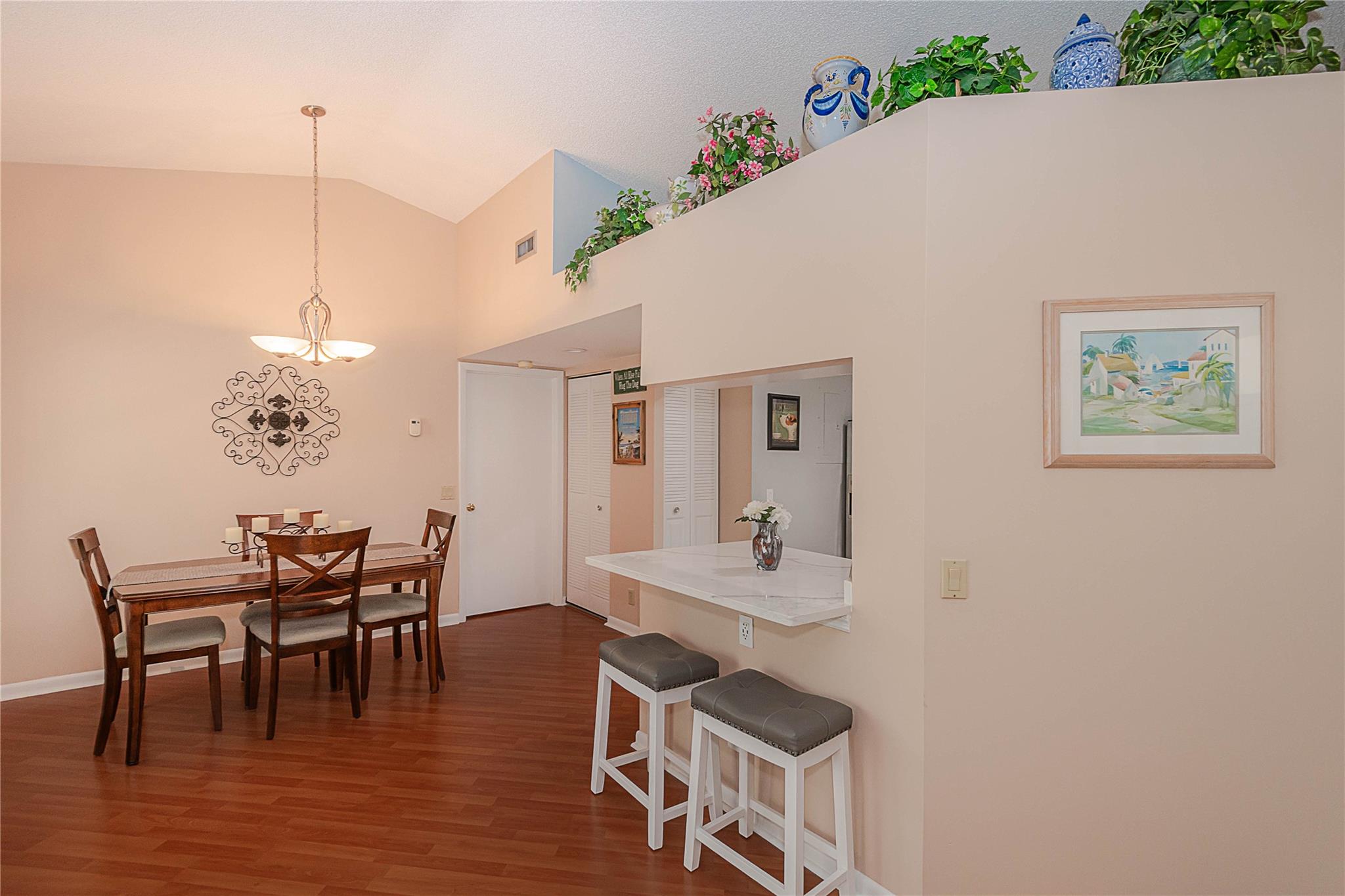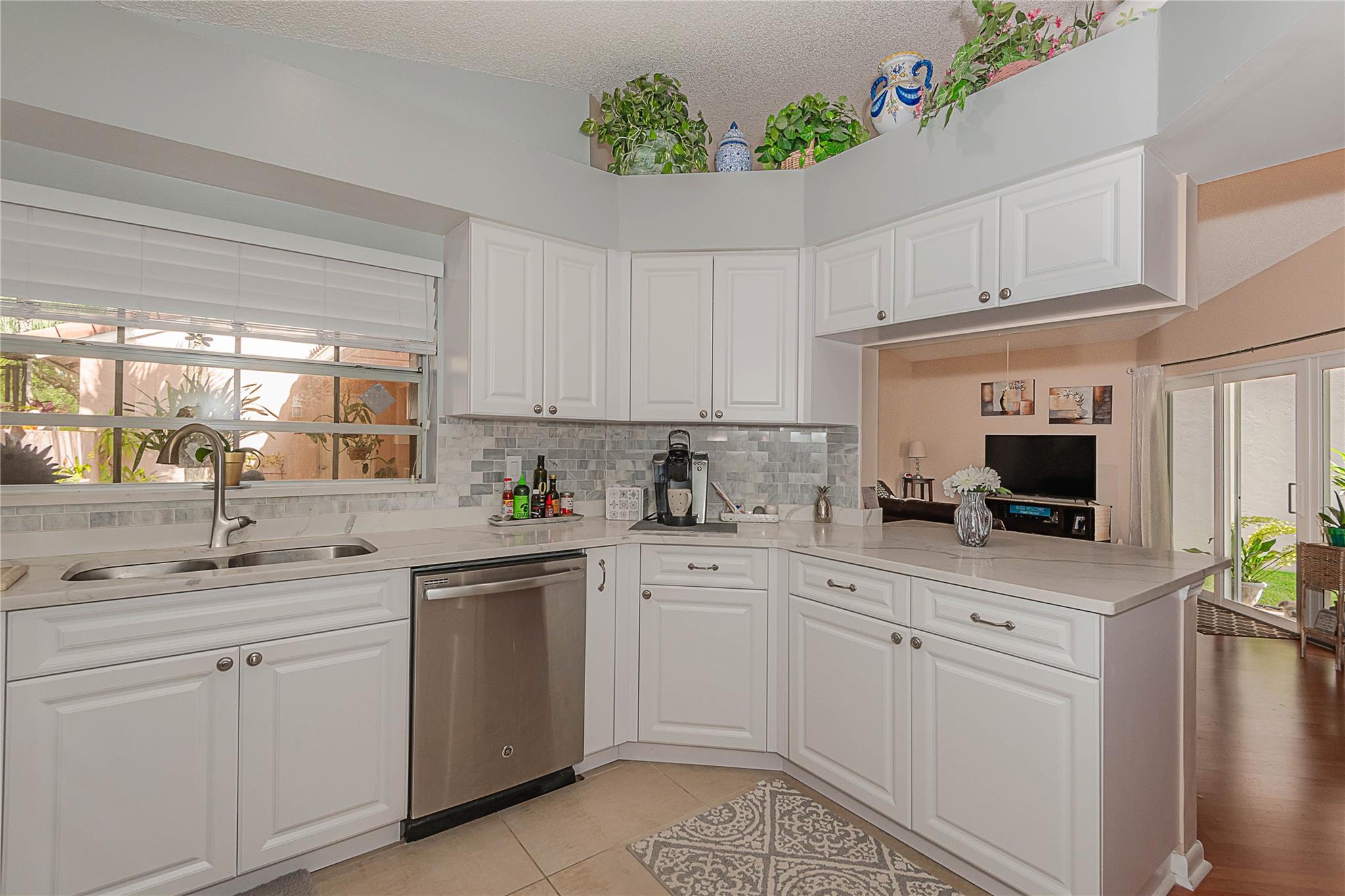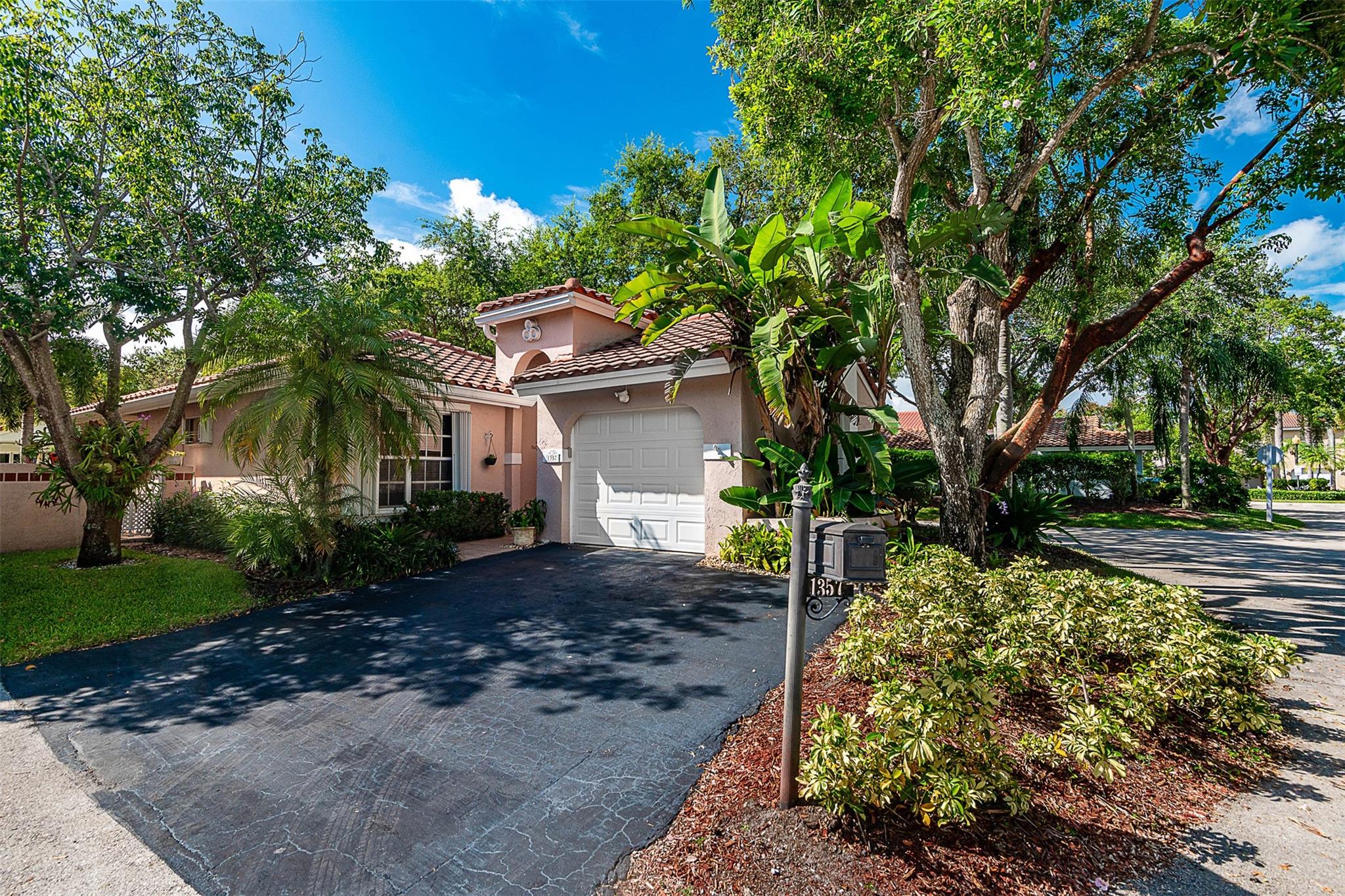 Move in condition. Only one of this model available in Garden Homes. Spacious, updated (2020) bright, white kitchen features stainless steel appliances. Updated master bath, partially updated second bath. Large walk-in closet in master bedroom. Vaulted ceilings. Split bedroom plan. Complete storm protection with either impact doors or accordion shutters. Situated on a corner lot in a cul-de-sac. One car garage with storage, plus 2 car driveway. Roomy, fully privacy fenced and landscaped wrap around backyard with irrigation system, plenty of room for a swing set or for pets. Roofed (8x13) patio. Amazing and very private community pool. Beautiful, well maintained community, HOA fee includes cutting front lawn grass, common areas and the community swimming pool.