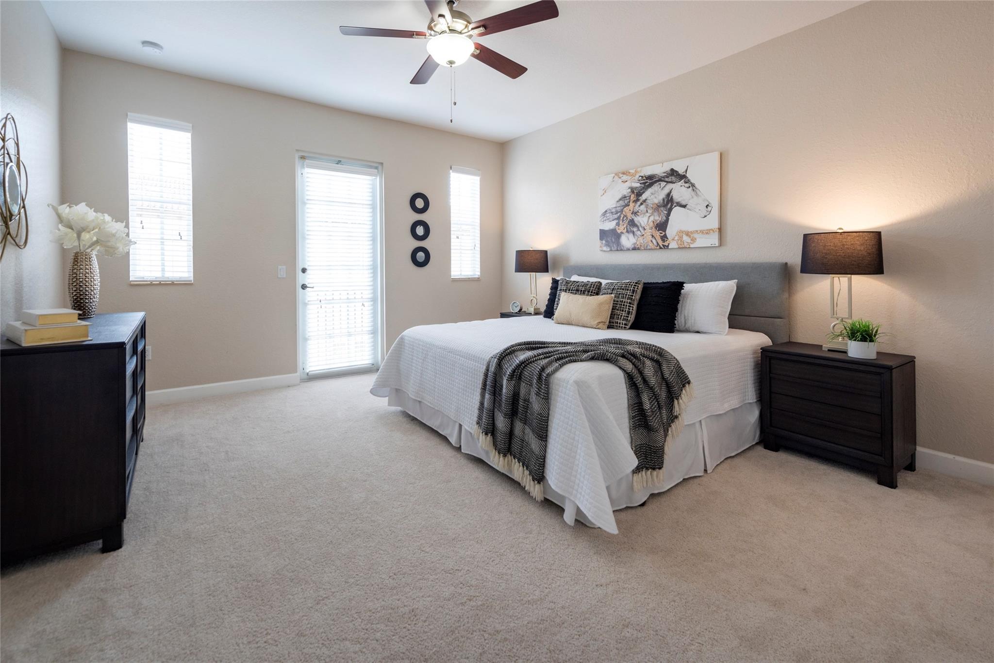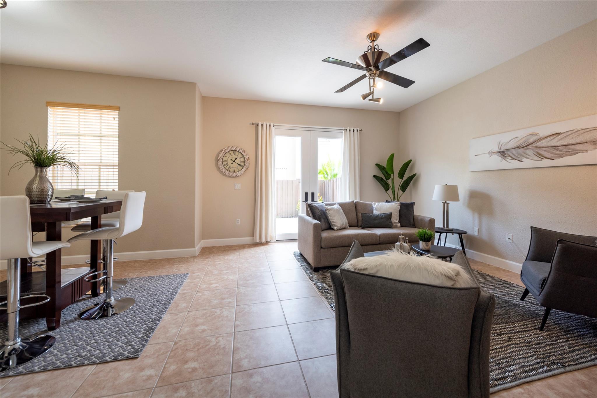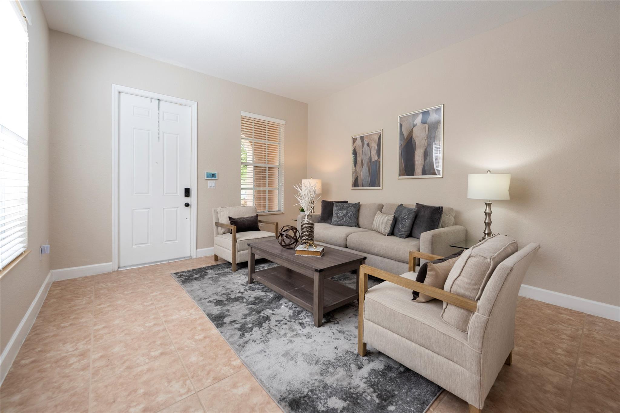 TRUE PERFECTION!! This Exquisite 3-Bed, 2.5 Bath, Laundry Room, 1-Car Garage, paver Driveway. Townhome is substantially Remodeled. Halo Touch Smart Lock Key or Keyless Entry. Granite Countertops in Kitchen with Modern Black Appliances and Fixtures. Entirely Remodeled Primary Ensuite bathroom is Absolutely Stunning with Quartz Counter tops, 24X24 porcelain floor Tiles, Dual Sinks, Touch and Sensor Pivot lights, TV with remote, Neptune Air Tub 43 Active-air micro jets, 5'x3' Shower with Rain Shower, 4 massage shower Jets, and much more! Washer and Dryer Upstairs near all bedrooms. All Bedroom balconies have Impact Doors. Huge Fenced enclosed back Patio with Tumbled marble. Community Features Gorgeous Pool, a Playground for family Fun! The HOA includes High Speed Internet + Alarm System