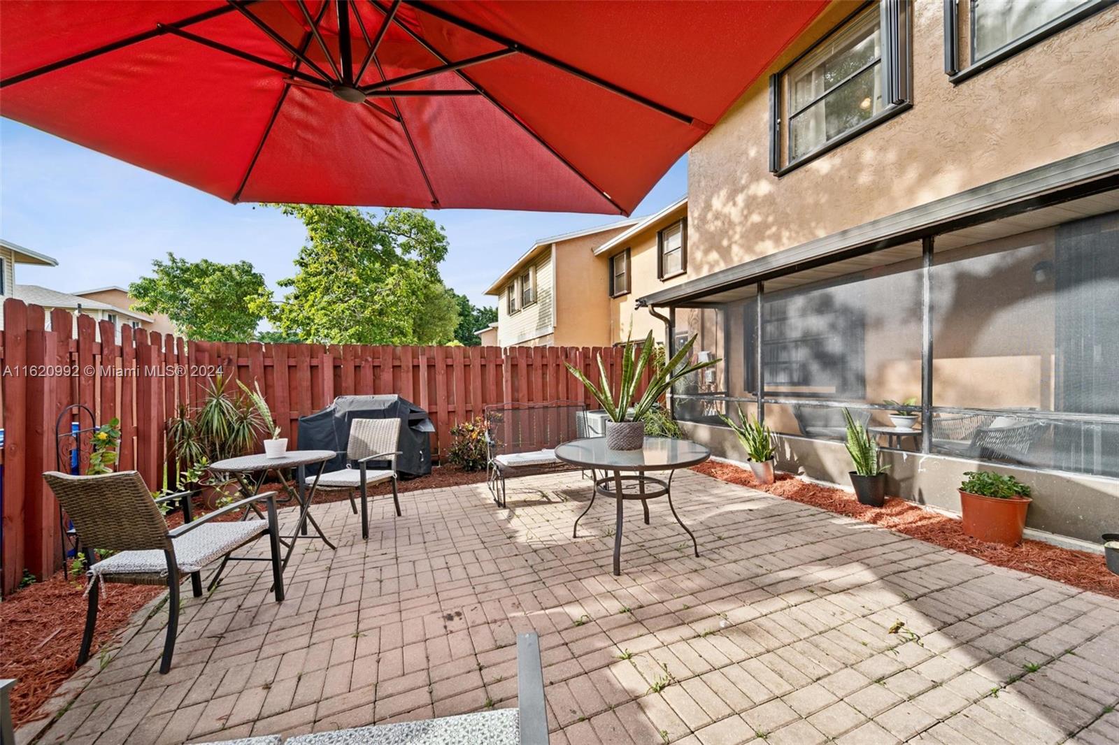 stylish 3-bed, 2.5-bath Townhouse in Central Pembroke Pines Welcome to this beautifully renovated home featuring a spacious layout with modern touches and abundant natural light. Enjoy the updated kitchen, tile floors downstairs, laminate wood upstairs, and a large fenced yard with a covered patio perfect for pets. Located near Pembroke Pines City Center and Pembroke Lakes Mall, this home offers easy access to trendy eateries, parks, and top schools. Community amenities include a pool, tennis courts, and a newly built children's playground. The new roof was installed in 2022. Don't miss out on this urban sanctuary!