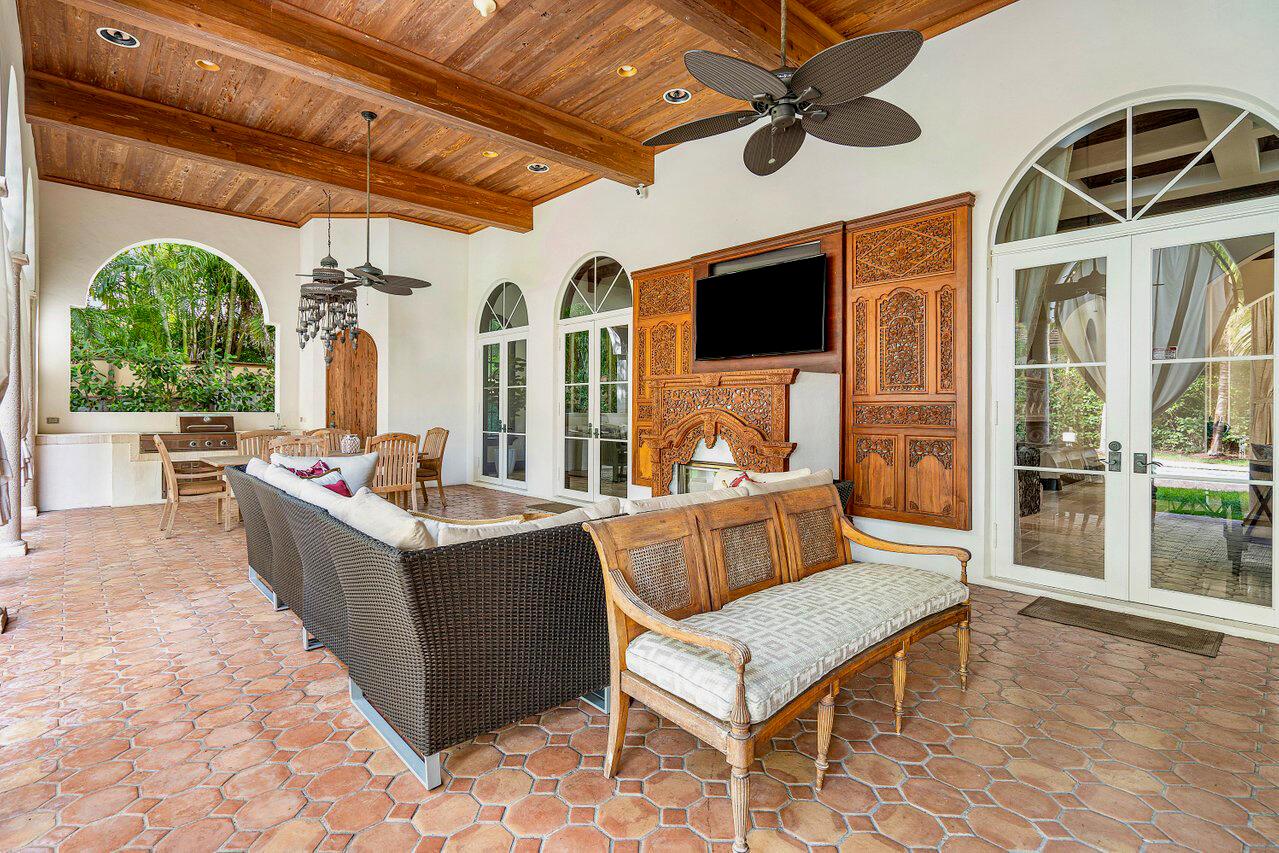 Experience luxury living within the esteemed enclave of The Estates of Spanish River Land. This stunning 2002 single-level concrete block home stands as a masterpiece, boasting an expansive layout of nearly 6,400 square feet under roof and almost 4,500 square feet under air. Positioned on an oversized corner lot measuring 100' x 160', the property encompasses a total of 16,000 square feet, offering ample space for privacy and relaxation. Designed by Carlos Martin, this Southern European-inspired home features soft vanilla stucco, a barrel-tiled roof, and an oversized pool-side loggia. Inside, natural stone flooring, 15-foot high detailed ceilings, and expansive open areas ensure a seamless flow between indoor and outdoor living spaces, catering to the lifestyle of the well-traveled buyer.