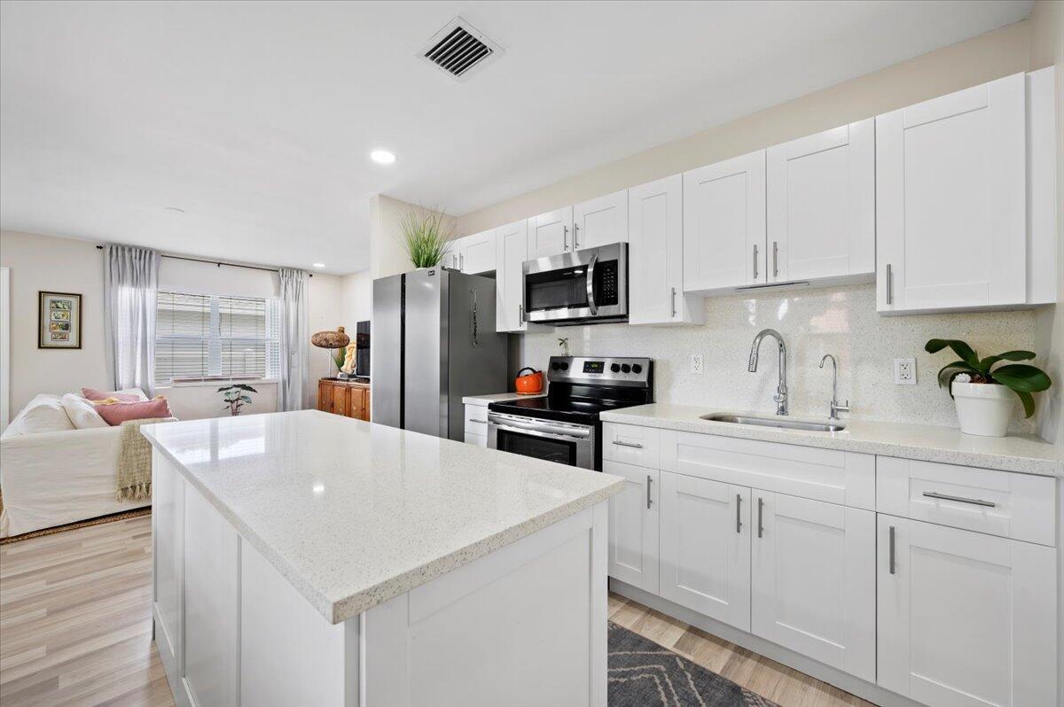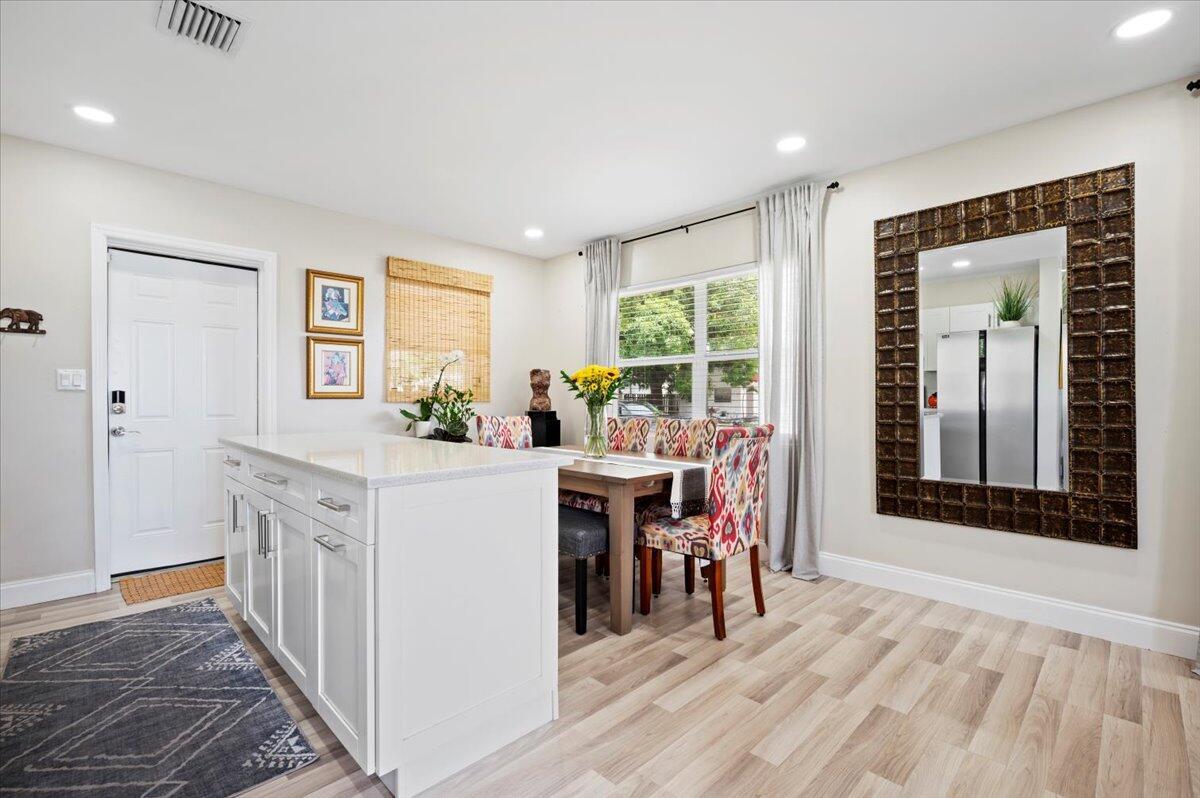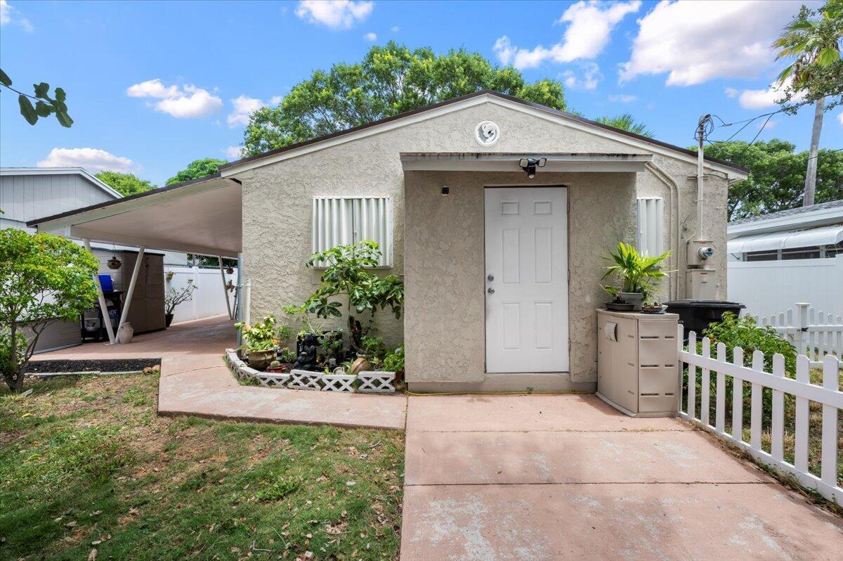 Welcome to your new home in the heart of West Palm Beach! This charming 2-bedroom, 1-bathroom property has recently undergone several renovations. You'll appreciate the upgrades including a new roof, solar panels, outside AC condenser replaced in 2022, updated water softener system with reverse osmosis, and a newly installed alarm system, also the addition of a kitchen island provides extra cabinet space, enhancing the functionality of the kitchen.This home boasts an updated interior and is perfectly situated in a prime location in West Palm Beach, just minutes away from the intracoastal Waterway.The bedrooms offer a tranquil retreat to unwind after a busy day.Outside, the backyard is adorned with shaded trees and bathed in Florida sunshine, creating an ideal space for both-