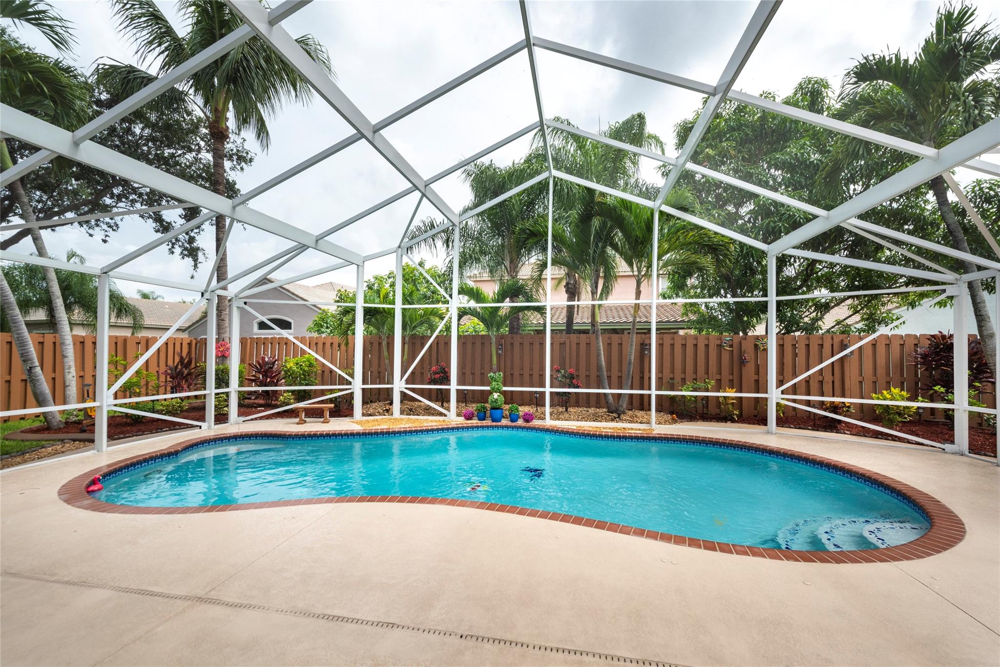 YOU HAVE ARRIVED! This Lovely Single-Story Pool Home with a Beautiful New Screen Enclosure is Perfect for Outdoor Entertaining Family and Friends. Spacious, Light and Bright with Designer Touches 3-Bed, 2-Bath & 2- Car Garage. Newer 20x20 Tiled Floors throughout the Living Areas, Gorgeous Kitchen has Stainless Steel Appliances, Wood Cabinetry & Newer Granite Counter Tops with Snack Bar Counter. Primary En-Suite Completely Remodeled. Newer French Doors lead to your Incredible Screened Pool/Patio and Beautiful Garden Inside the freshly Painted Fenced and Private Yard. ACCORDION SHUTTERS! Community Boasts State of the Art Recreation Center with Resort Style Amenities: Huge Pool, Tennis Courts, Remodeled Clubhouse +More! HOA Includes Cable, Internet,24 Security. WELCOME TO YOUR NEW HOME!