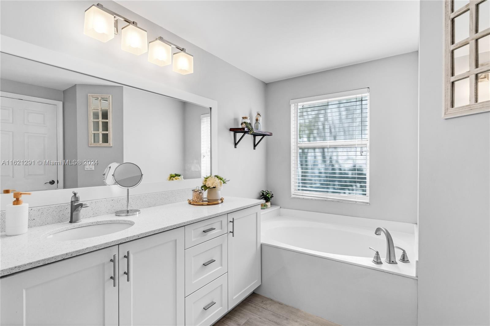 Don't miss out on this Pembroke Shores stunner! Immaculately kept and tastefully remodeled, this home will make you swoon from the moment you pull into the driveway. The intelligent floor plan offers a split-level distribution with a large primary bedroom on the first floor and three additional bedrooms on the second level. The new modern kitchen features a farmhouse sink and exquisite waterfall quartz countertops. Enjoy the convenience of a two-car garage and the security of living in a gated community. With ample living space and thoughtful design, this home is perfect for creating lasting memories. Plenty of room for a pool! Video tour available!
