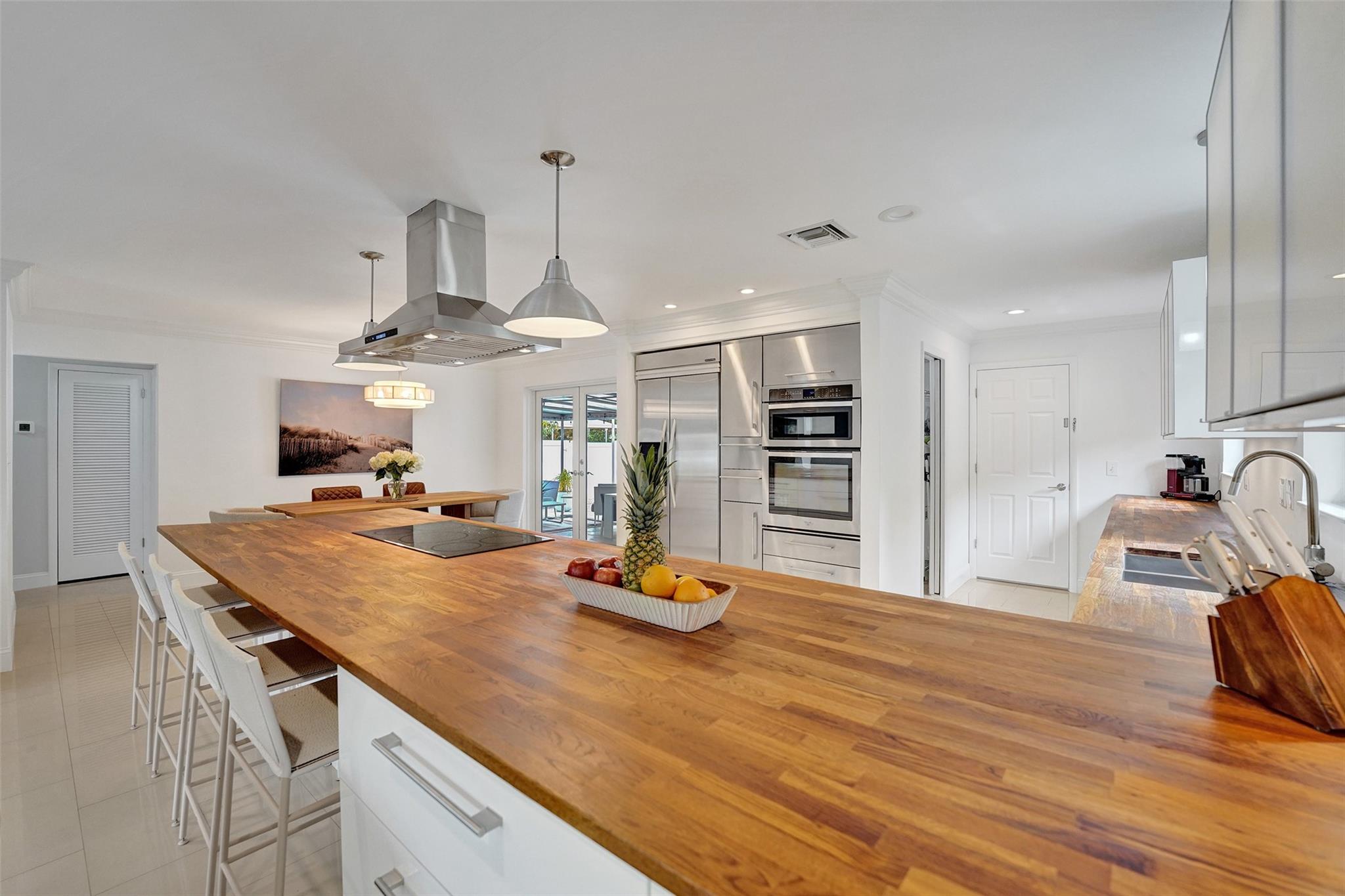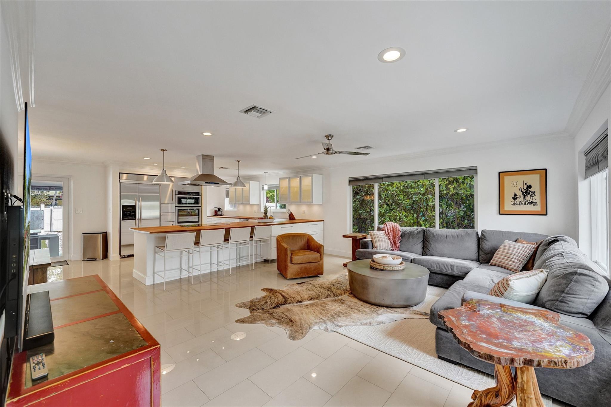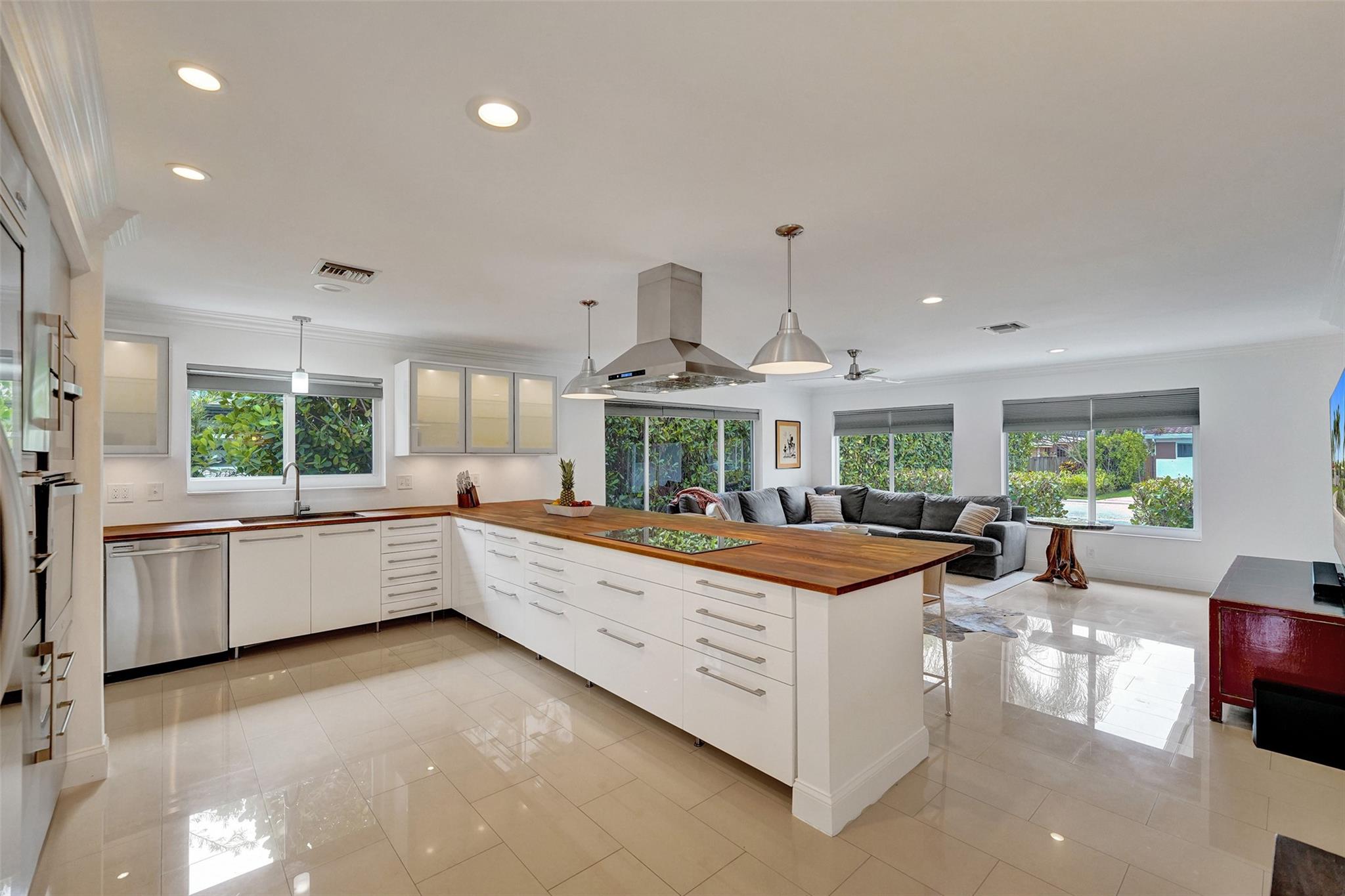 Beautiful Move in ready 2 Bedroom 2 baths single family home with a 1 car attached garage, Located in the heart of Hollywood Lakes, which is close to the marina, Hollywood Boardwalk and is a bike ride away from the beach. This open concept design has an updated kitchen with a huge center island and stainless steel appliances, hurricane impact windows and doors. Tile flooring in main living area with terrazzo flooring in both bedrooms. Home features a 2021 tankless water heater, A/C 2016 and a metal roof installed in 2017 along with both bathrooms remodeled just to name a few updates. Back yard is a private oasis for entertainment, and even an outdoor shower. Paradise is an understatement.