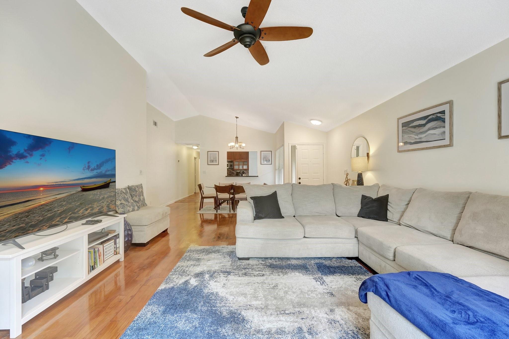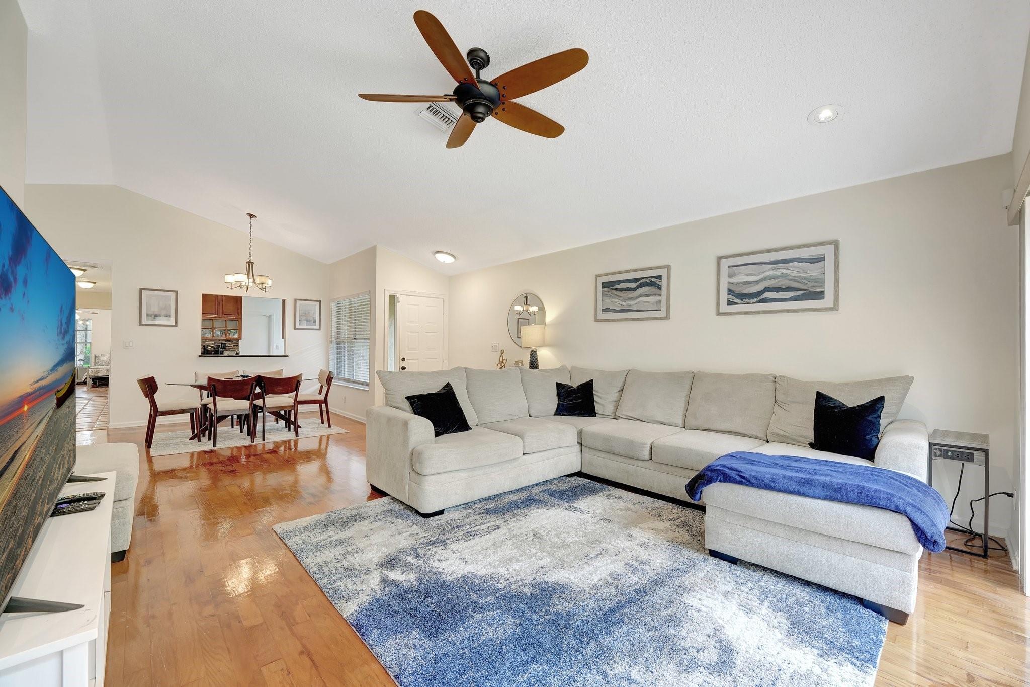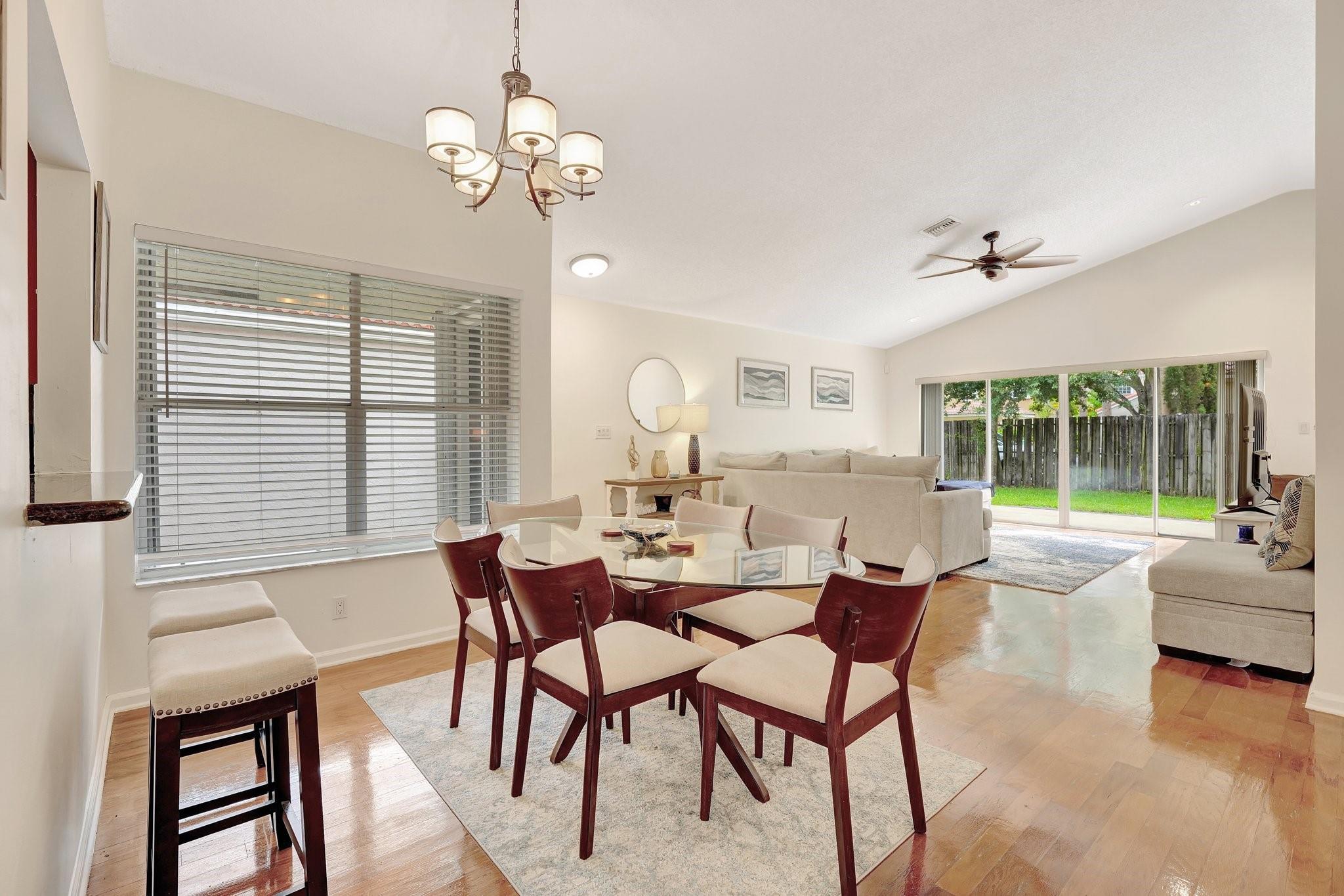 Charming home nestled in the prestigious Jacaranda neighborhood of Bridgewater, this property is surrounded by winding roads and scenic waterways, creating a park-like atmosphere. This 3 bedroom/2 bath home features a large eat-in kitchen with stainless appliance package and granite countertops; vaulted ceilings in the main living area overlooking the serene garden views of the fenced backyard. Master suite has remodeled bathroom and large walk-in closet. Located in the coveted Central Park Elementary school district. Quarterly maintenance includes cable, internet, and all lawn care - even in the back yard, & the community pool, club house, and play area too! Accordion shutters installed on all openings.
