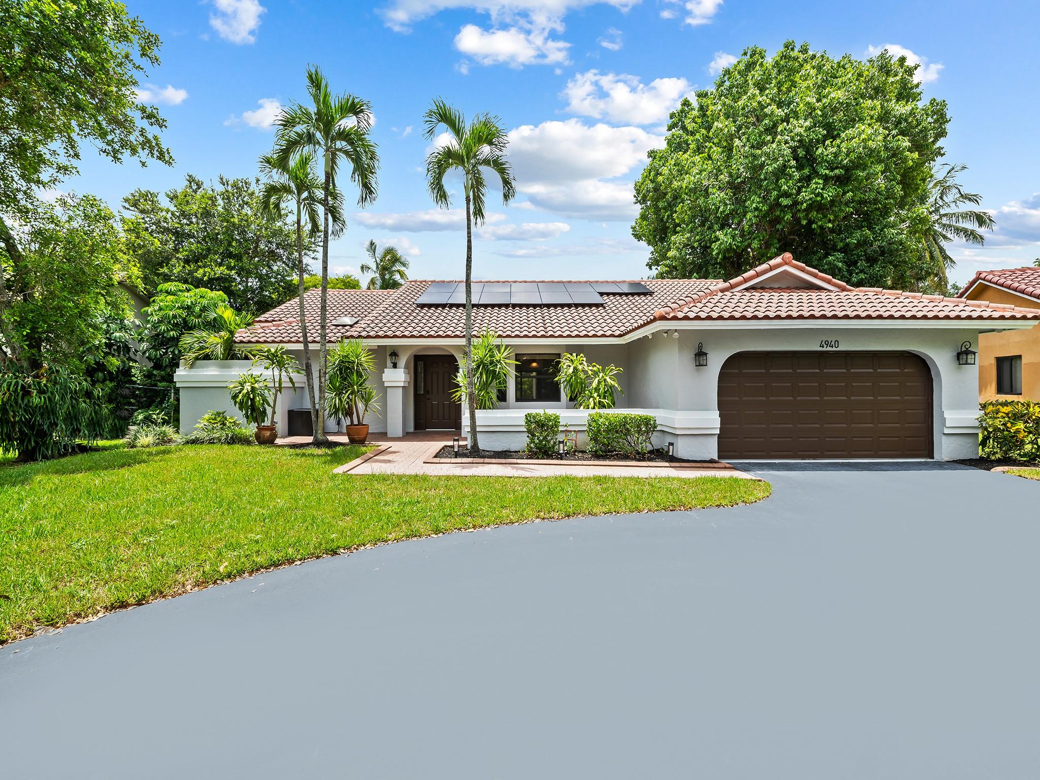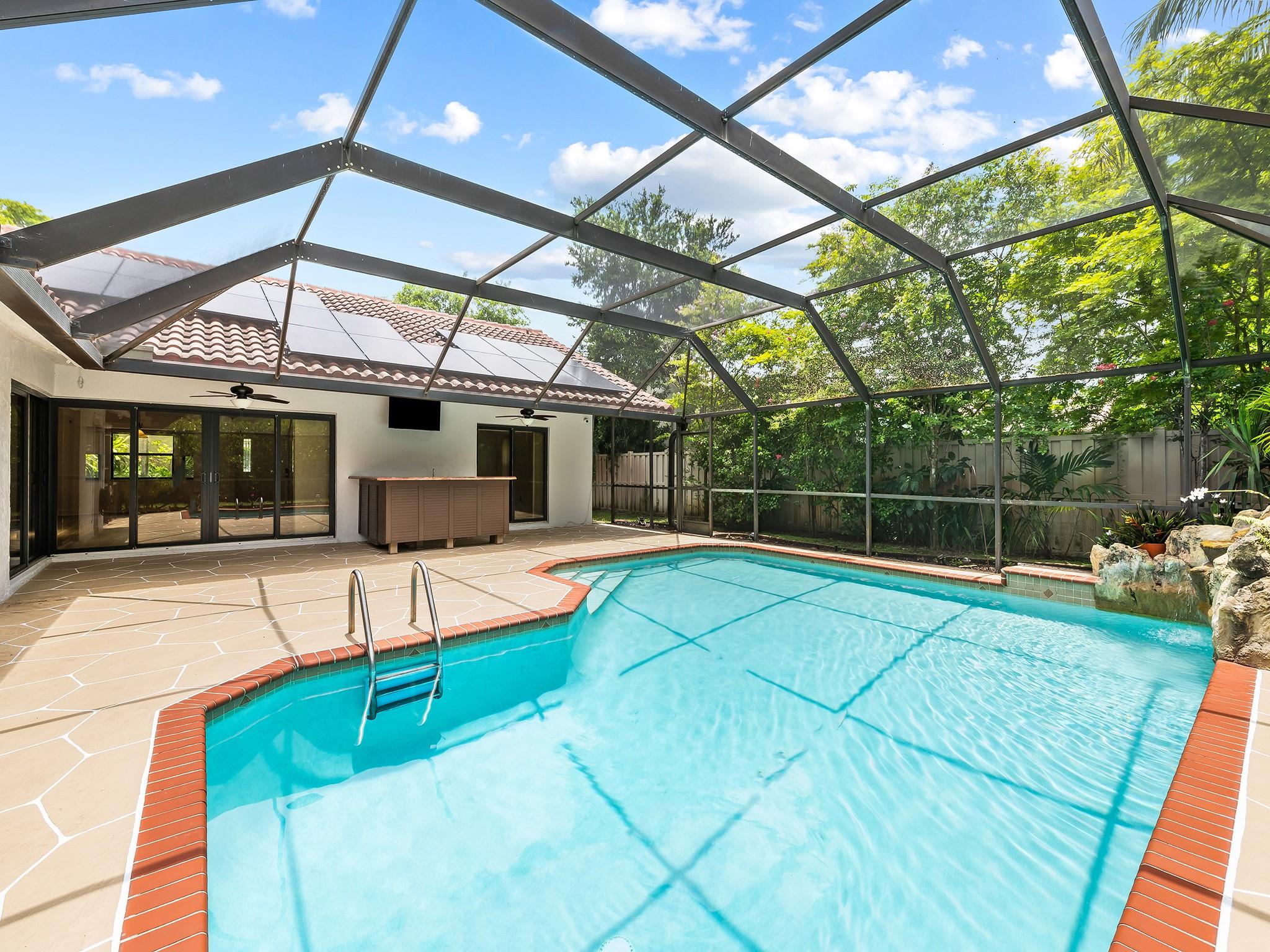 Nestled in one of Coral Springs' desired neighborhoods is the perfect blend of comfort & style in this freshly painted 4-bed/2-bath pool home! Boasting vaulted ceilings & skylights within a thoughtfully designed split floor plan home. Tastefully renovated kitchen w/granite counters, stainless appliances & a dedicated pantry/laundry room; LV flooring in living areas; elegant tile in baths. Tranquility resides in the backyard oasis - sparkling pool w/soothing waterfall feature, outdoor shower & convenient lanai bath. Enjoy spacious screened patio, complete with custom-built bar, while kids/pets enjoy generous fenced yard. Enjoy the added benefit of low homeowner's insurance costs with all impact windows/doors, solar panels & 2012 barrel roof. Welcome home to a life of luxury and convenience!