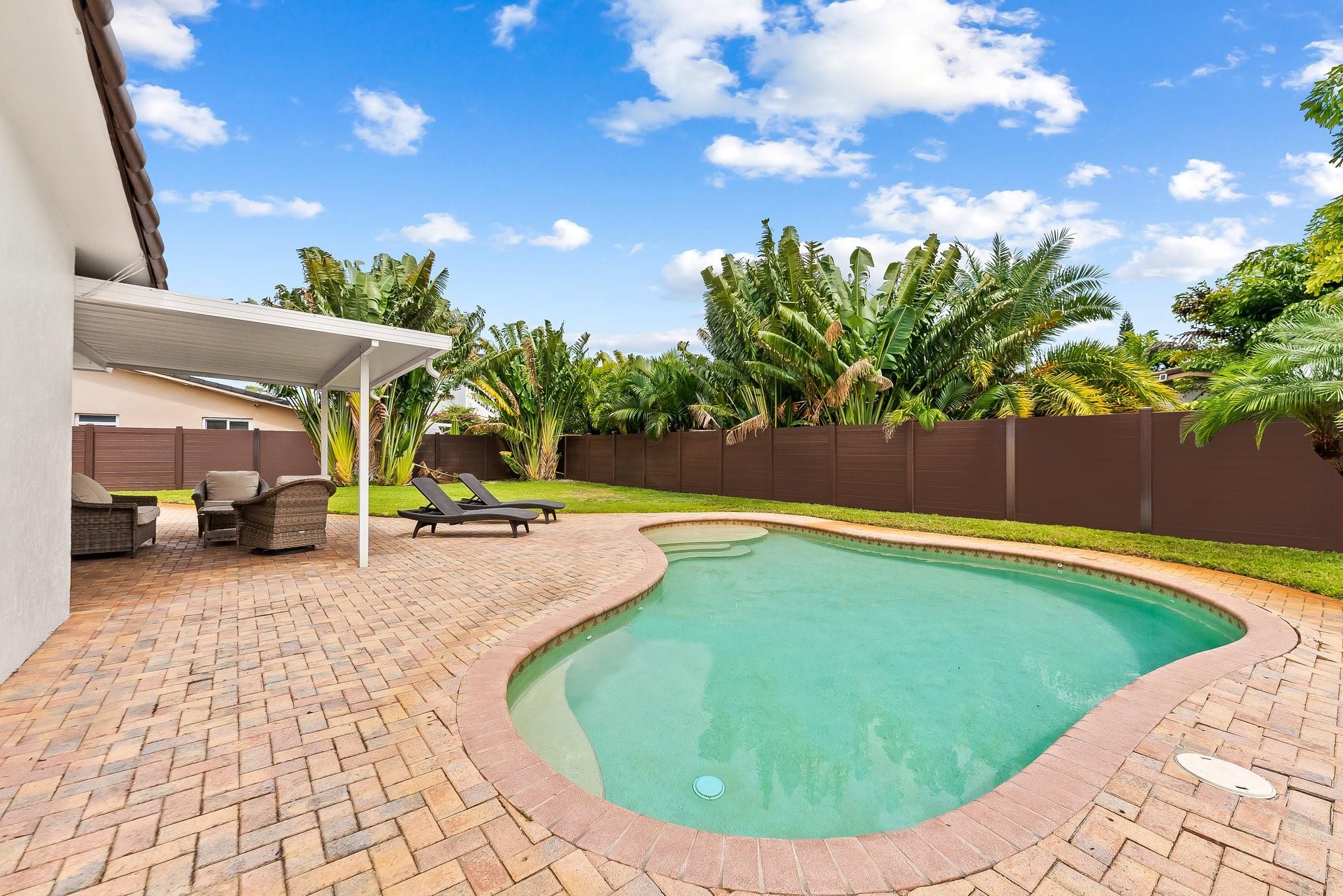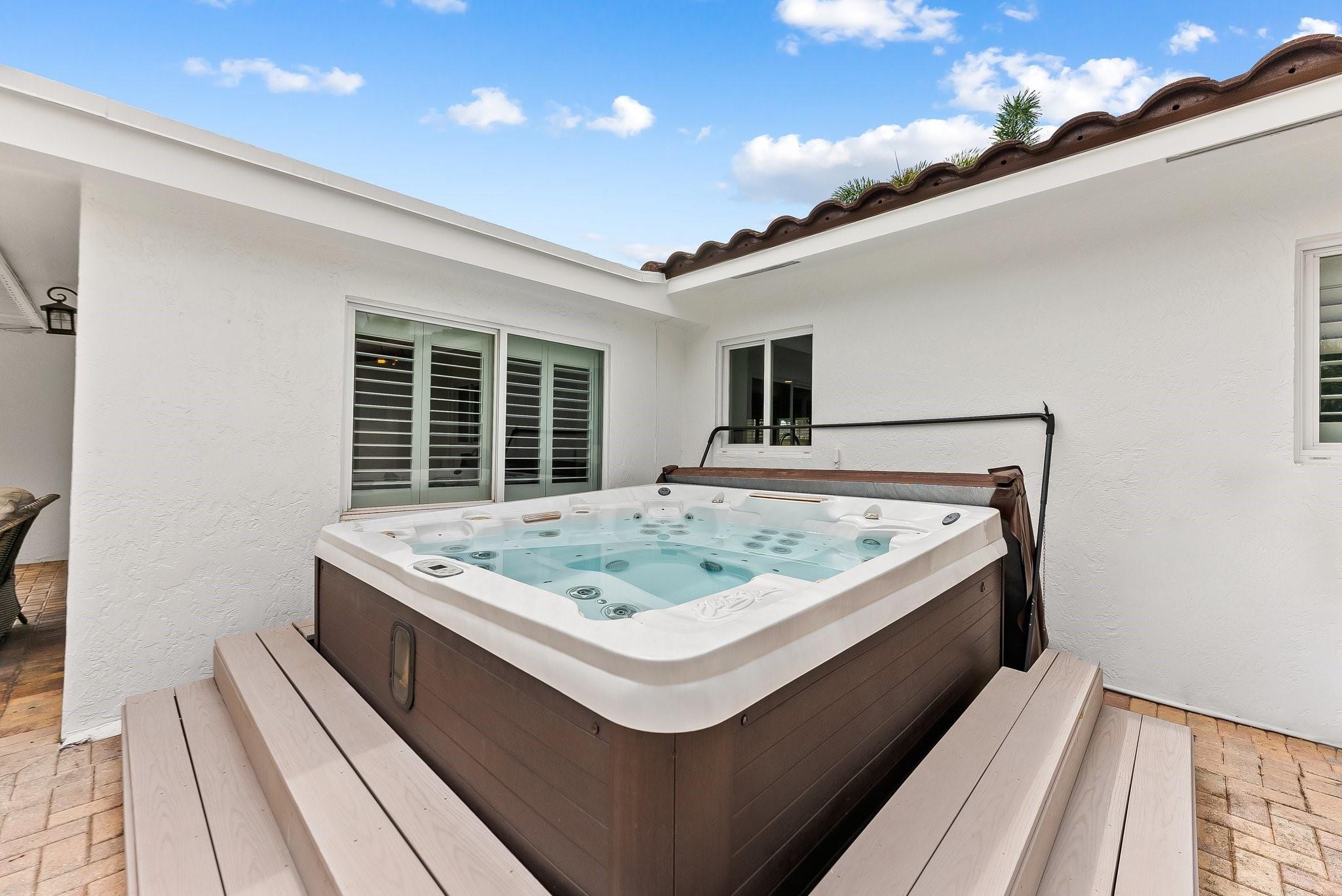 Step inside this 2-bedroom, 2-bathroom residence and discover a spacious, light-filled interior with impact windows and door throughout. The open layout seamlessly integrates the living, dining, and kitchen areas, creating an inviting space for relaxation and entertainment. Outdoors, a private sanctuary awaits, complete with an oversized jacuzzi, a rejuvenating saltwater pool with a new pump, and a newly installed fence offering ultimate privacy. The lush landscaping is meticulously maintained by the well water-fed irrigation system, adding to the allure of this turnkey home. Located in the coveted Coral Ridge Isles, this residence enjoys an excellent location with easy access to the best that Fort Lauderdale has to offer.