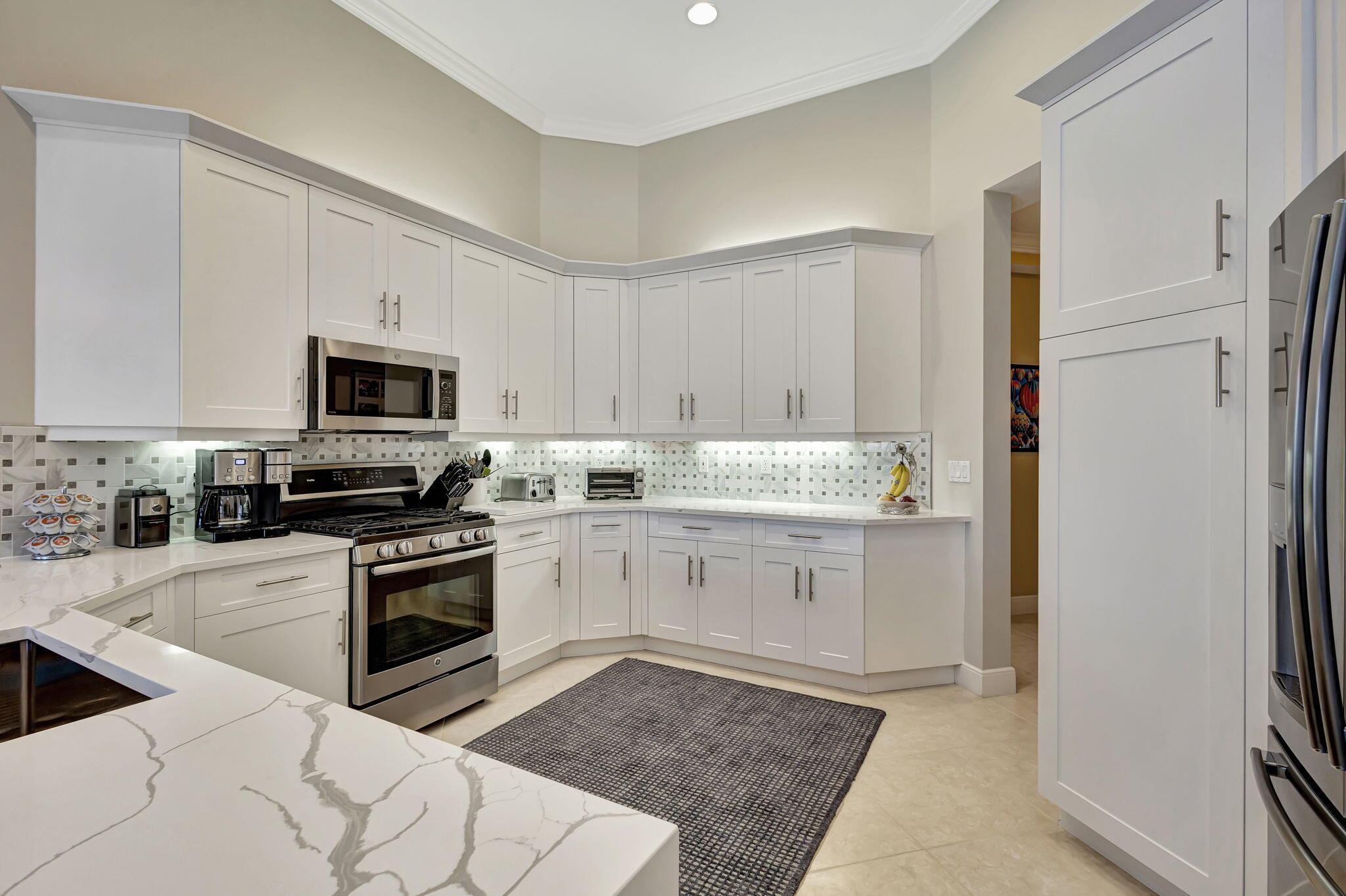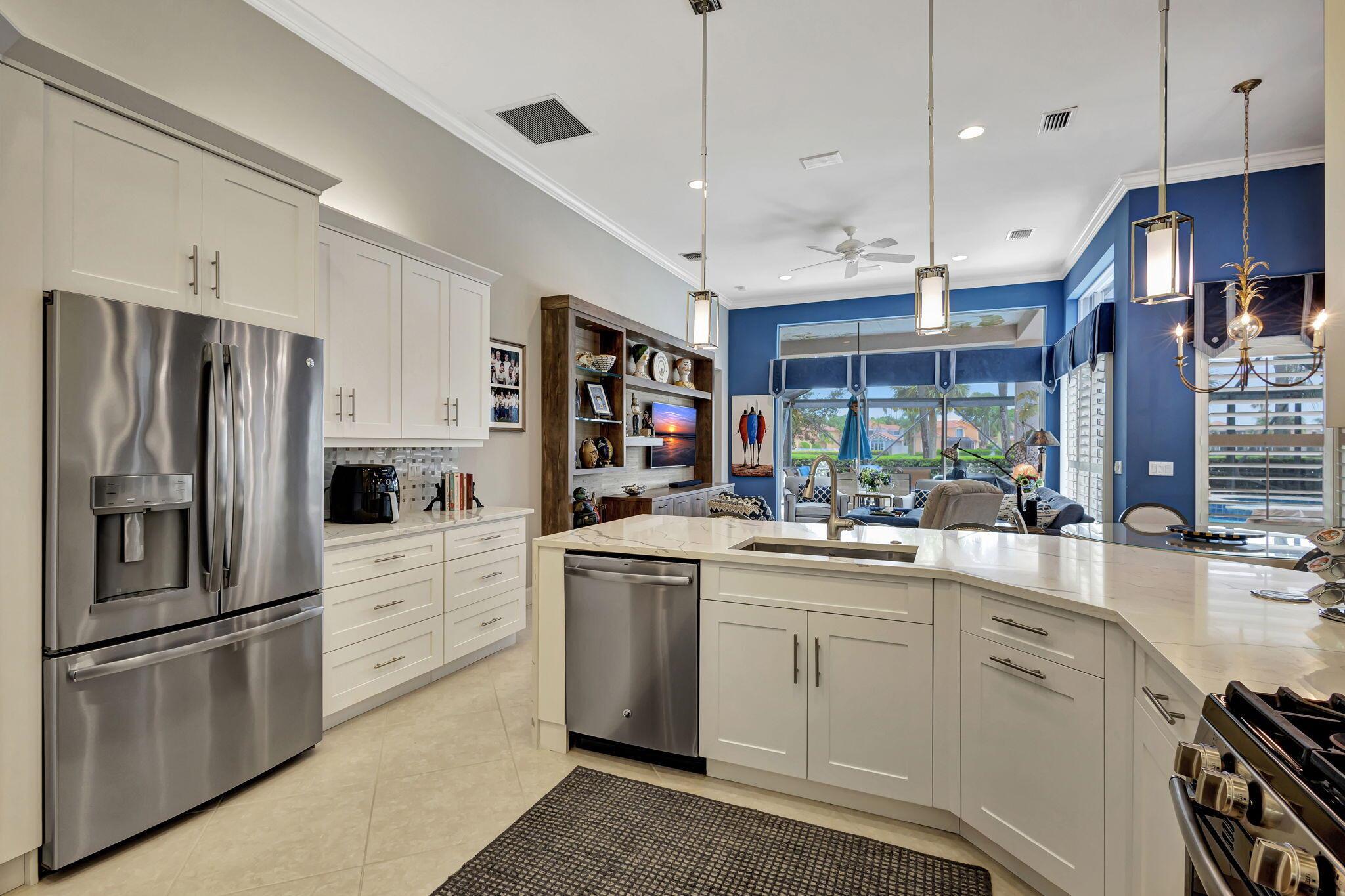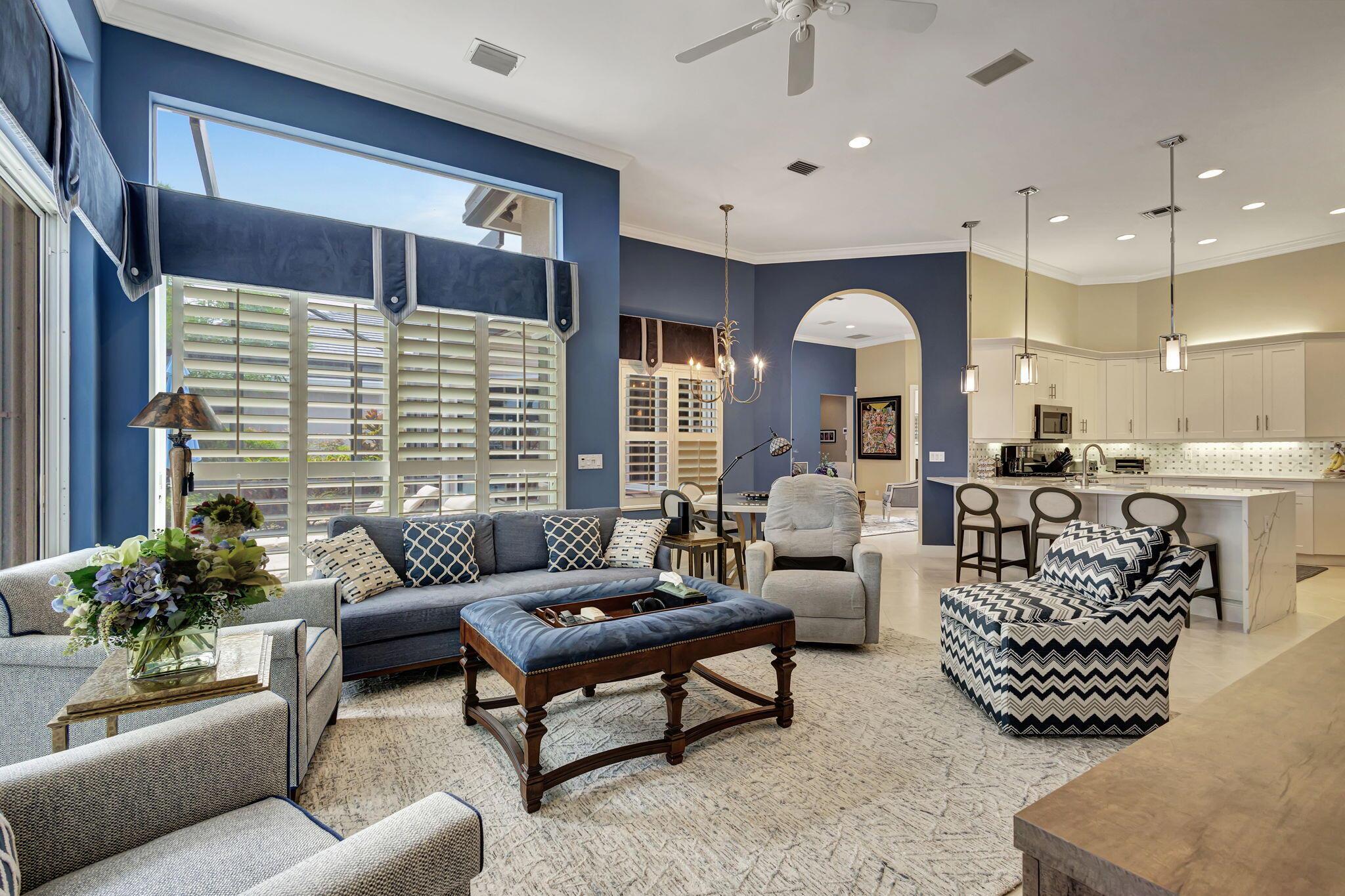 IMMEDIATE Premier Golf Membership available with home. Welcome to your private retreat nestled within the exclusive enclave of Ibis Isles located in The Club at Ibis. This stunning home boasts elegance and comfort with its spacious floor plan featuring 4 bedrooms, a den, and 4 bathrooms. Upon entering, you are greeted in a lovely foyer that leads to an expansive living area adorned with high ceilings and oversized windows, bathing the space in natural light. The kitchen has been beautifully renovated with white Shaker style cabinets, quartz countertops and stainless steel appliances perfect for entertaining guests or preparing gourmet meals. The master suite offers a serene escape with its private oasis, complete with a spa-like bathroom featuring dual