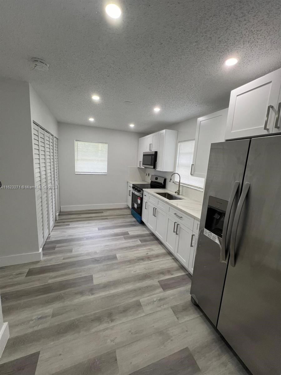 Charming home in Hollywood completely updated; brand new roof, kitchen, bathrooms, AC, and fresh laminate flooring. The recently painted exterior and interior give it a fresh, inviting look. Enjoy a spacious driveway that accommodates five or more cars and a large backyard perfect for expansion and entertaining. Just 10 minutes from Hollywood Beach, Hard Rock, Broward Community College, North Perry Airport, shopping areas, restaurants, and major highways. Includes a security surveillance system and Best of all, NO HOA. This gem won't last long!