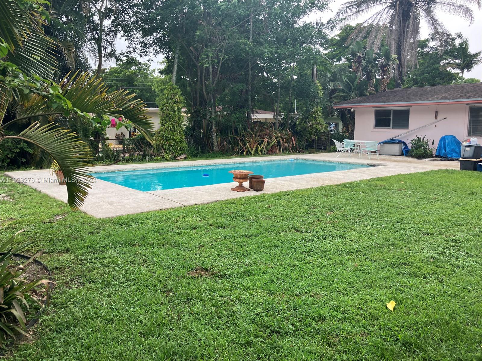 Classic mid-century modern ranch home with in-ground pool & lush tropical landscaping. One of the last original homes in this amazing neighborhood. Seller is offering $10,000 at closing. This home has a newer kitchen, new heavy-duty AC system, terrazzo floors throughout, a wonderful white brick decorative fireplace, a lovely tiled pool and tropical front & rear yards. The home sits on a beautiful tree-lined street in a very desirable enclave full of mid-century homes. Orchid Drive is quiet, private, has very little traffic, yet is only minutes to shops, restaurants, and the turnpike. If you are looking for an opportunity to renovate a true classic Florida mid-century pool home, this is it.