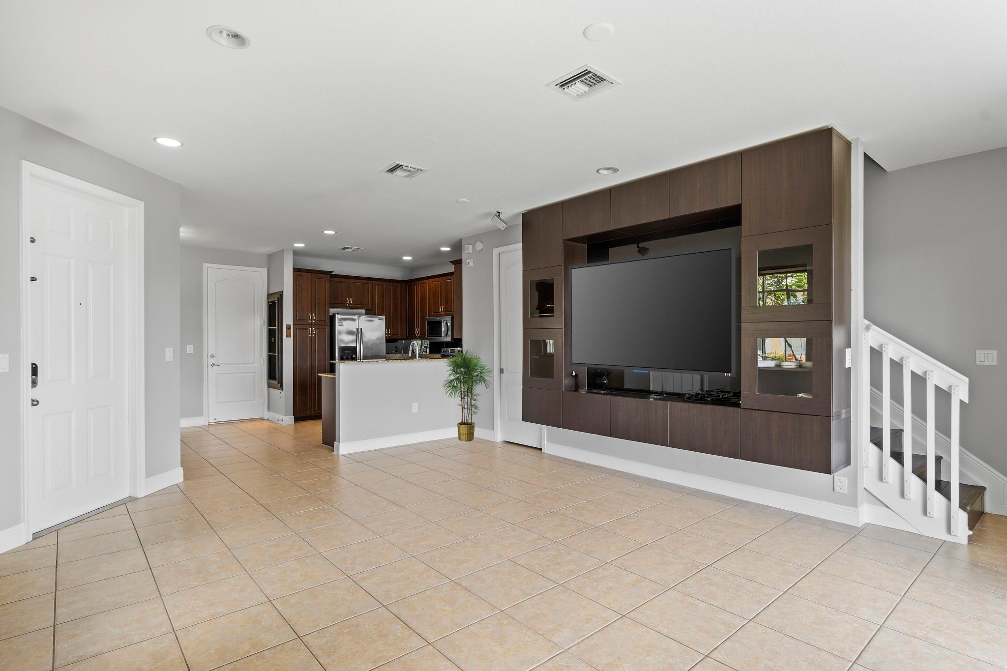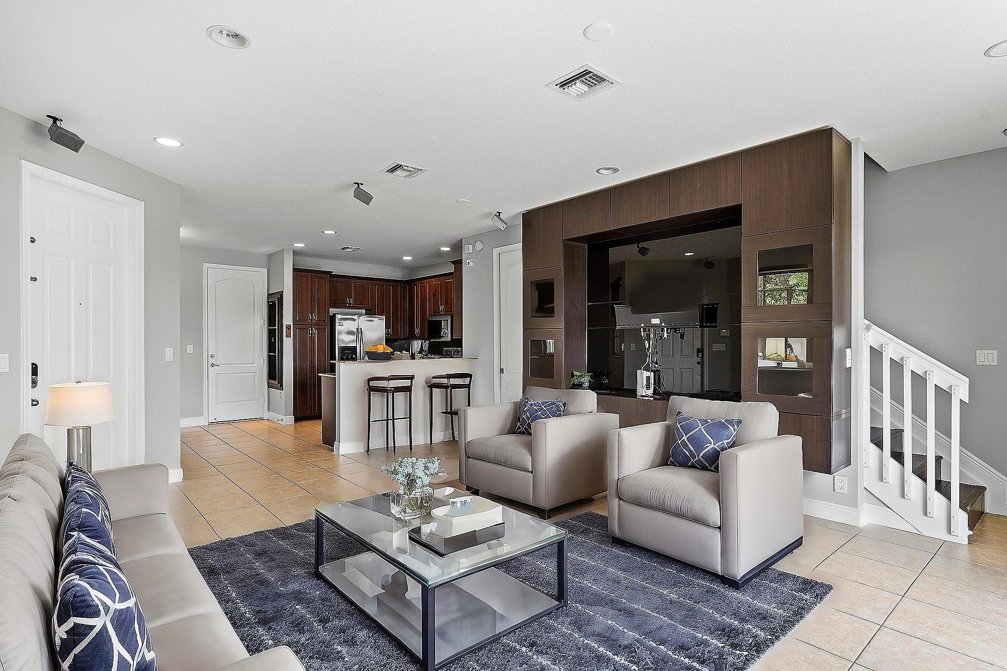 Rarely available townhome with freshly painted interior, featuring a 2car garage, nestled in the tranquil Saddle Bridge Community offering serene water views. This home boasts upgrades including 42-inch kitchen cabinets with granite countertops, a backsplash, and stainless steel appliances and a washer/dryer. The eat-in kitchen enjoys ample natural light from a bay window and features custom built-ins. The family room has custom-built entertainment center, perfect for hosting guests. Upstairs, Italian tile floors resembling real wood adorn the space. The large master bedroom includes additional custom-built storage and a spacious bathroom with a shower. Conveniently located from Nova Southeastern, the Turnpike, I595 and more. This home is equipped with hurricane impact windows and doors.