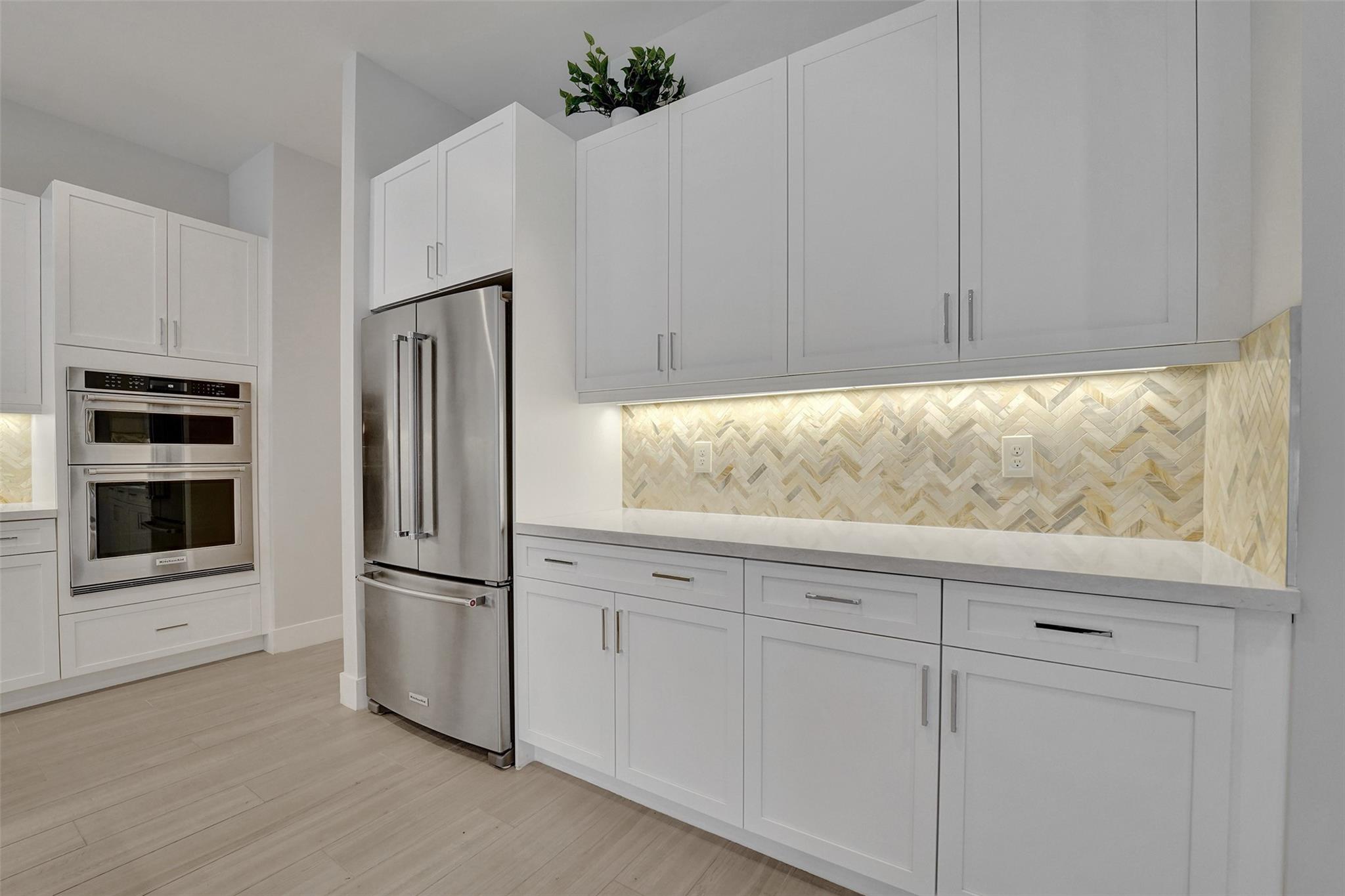 Nestled within an exclusive enclave of only 16 homes, this 2-story Harbor home in Kingfisher Estates boasts ample space & numerous upgrades. Upgraded cabinets, countertops, backsplash, under-counter lighting, & KitchenAid appliances adorn the chef-inspired kitchen with wall oven/micro tower. Tile floors downstairs, complemented by upgraded stair railings & wood flooring upstairs. Master Suite on 1st floor boasts 2 huge walk-in closets, luxurious master bathroom with dual sinks, & spacious shower. Large walk-in closets & custom closet systems in upstairs bedrooms. Fenced in backyard, w/plenty of room for a pool & pre-wired for a future pool, spacious covered terr., and balcony .Window treatments, security system, hi-hat lighting, wet bar w/sink & under-counter beverage refrig. & much more!