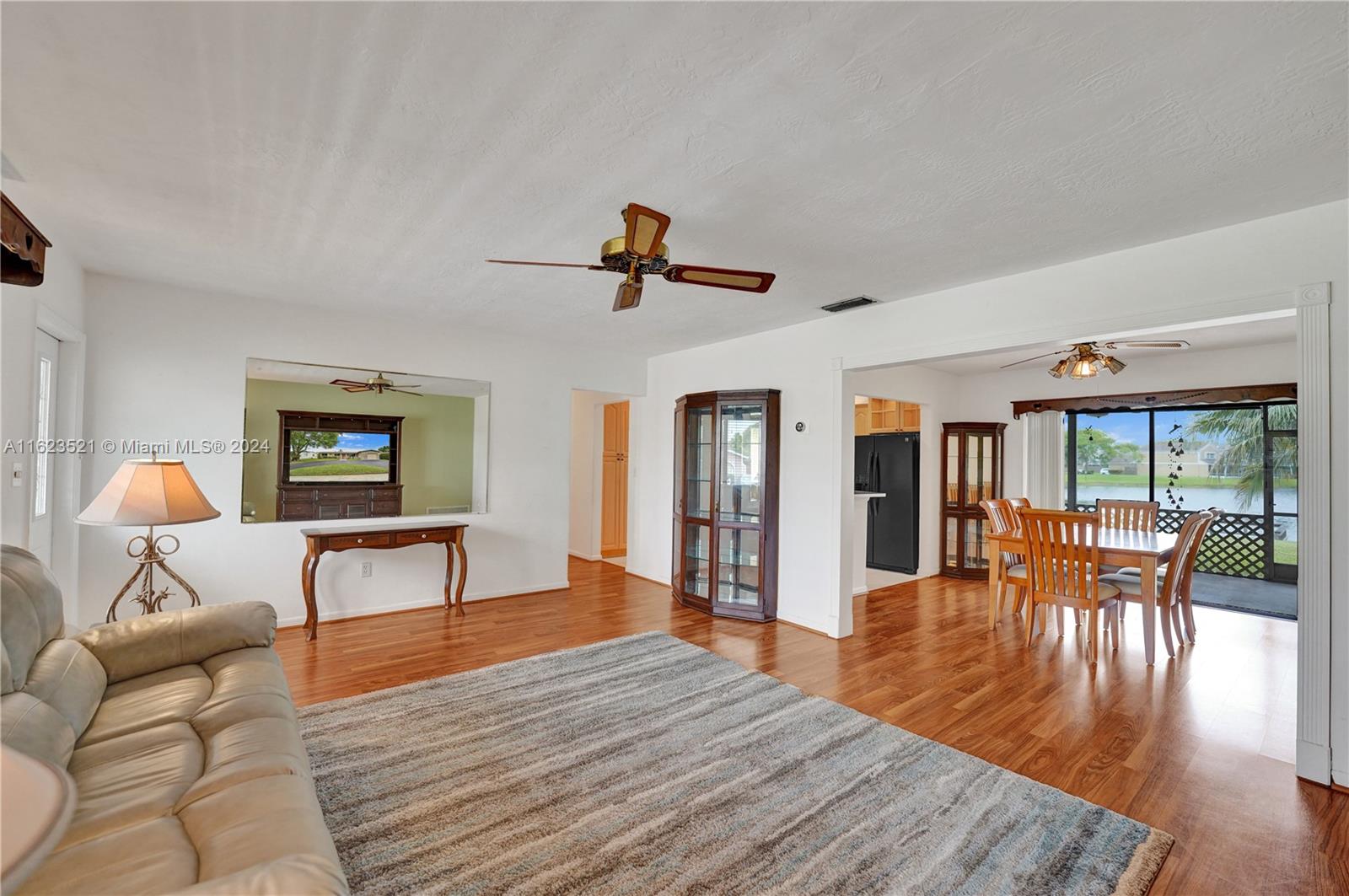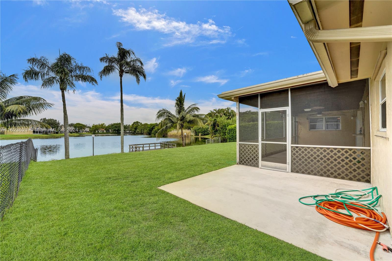 Enjoy outdoor living & beautiful water views - your own private oasis! This light & bright home features 4 bedrooms, 2 bathrooms, an open concept floor plan, a spacious kitchen, natural light in abundance, newer water heater (2020) and A/C (2020). As you step outside, the true magic of this property unfolds and provides the serenity and space you've always envisioned while the dock overlooking the lake invites you to lounge & unwind. Enjoy amazing water views from almost every room! With an extended covered & screened patio perfect for BBQ, large oversized fenced yard & circular driveway for additional parking, this home is ready for entertaining! Accordion shutters for convenience! Excellent location close to great schools, shopping, dining, parks & more!