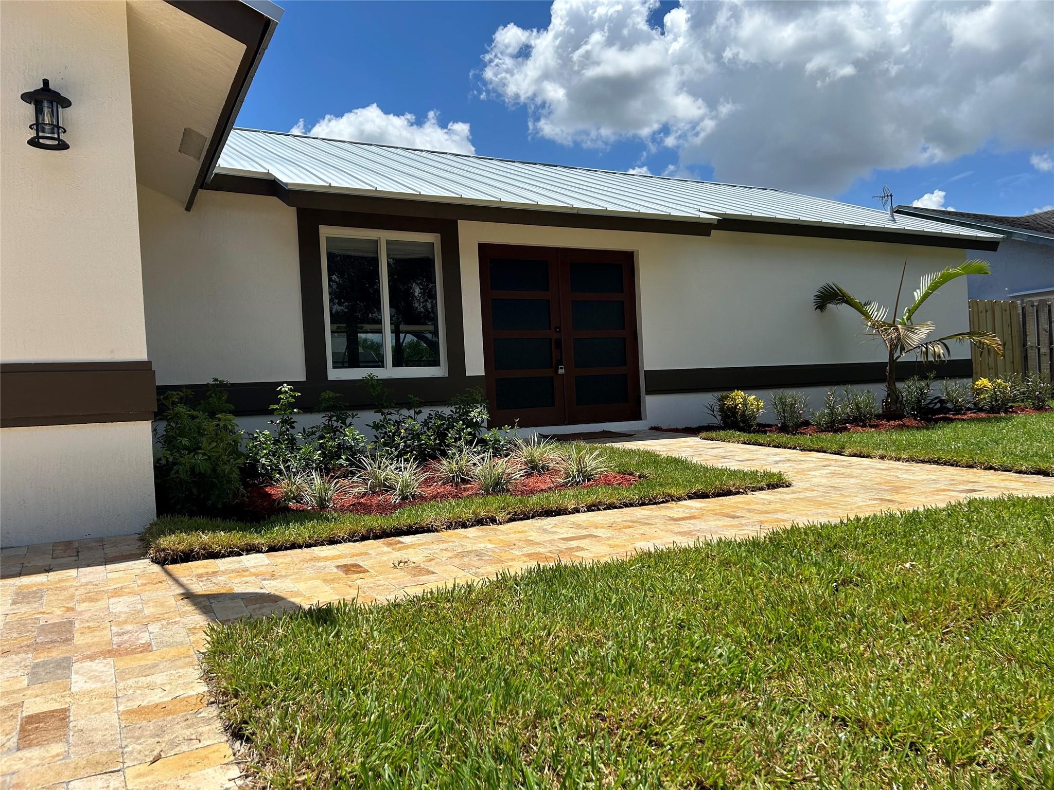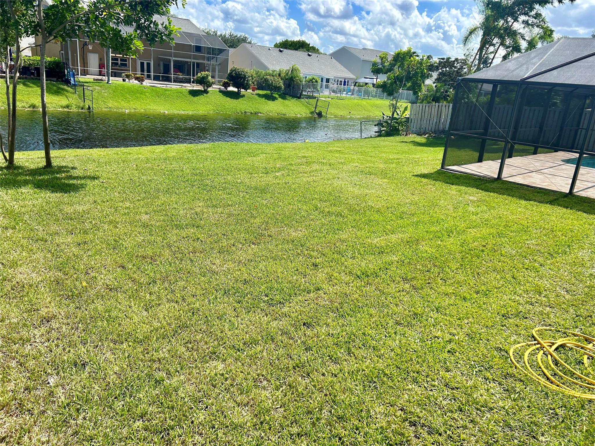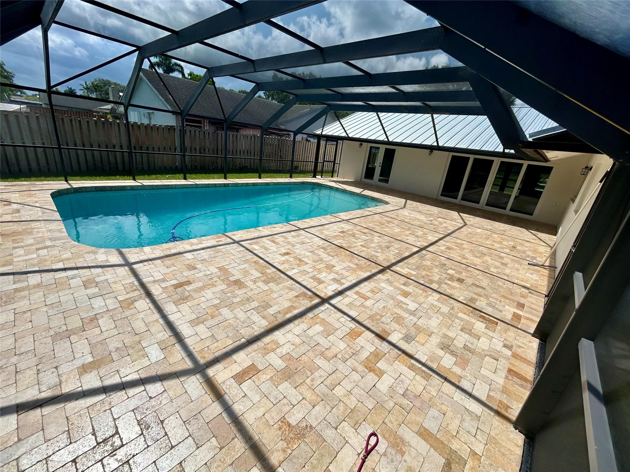 This stunning example of perfection is a 3 bedroom 2 bath waterfront home with pool. Brand new Metal Roof w/ transferable warranty! Open floorplan with huge entertaining/chef kitchen including brand new appliances. Decorator designed interior! Exterior flaunts picturesque impact rated doors, windows, travertine pool/patio and oversized travertine driveway! A+ Schools and walking distance to park and major shopping centers. No HOA.