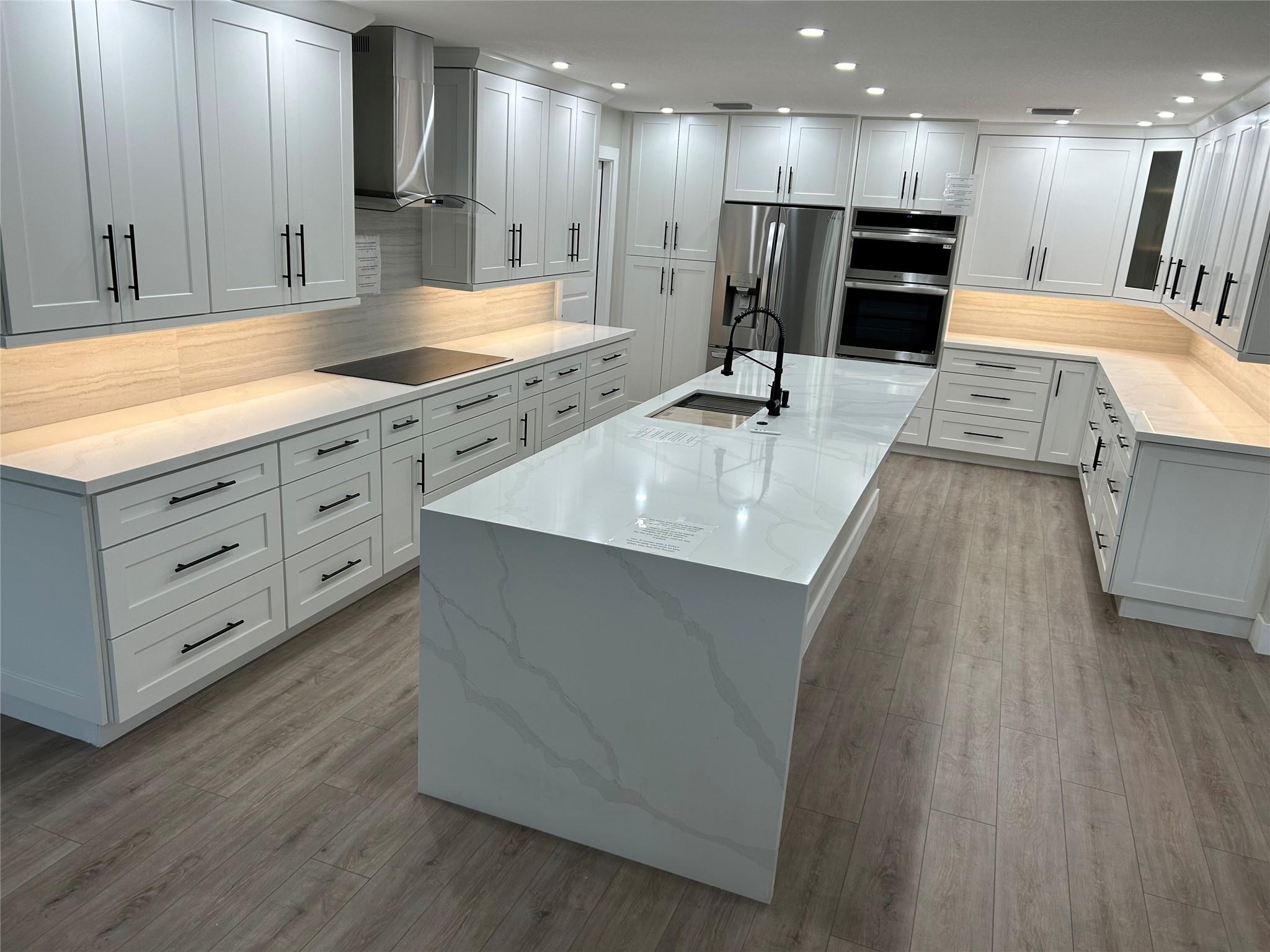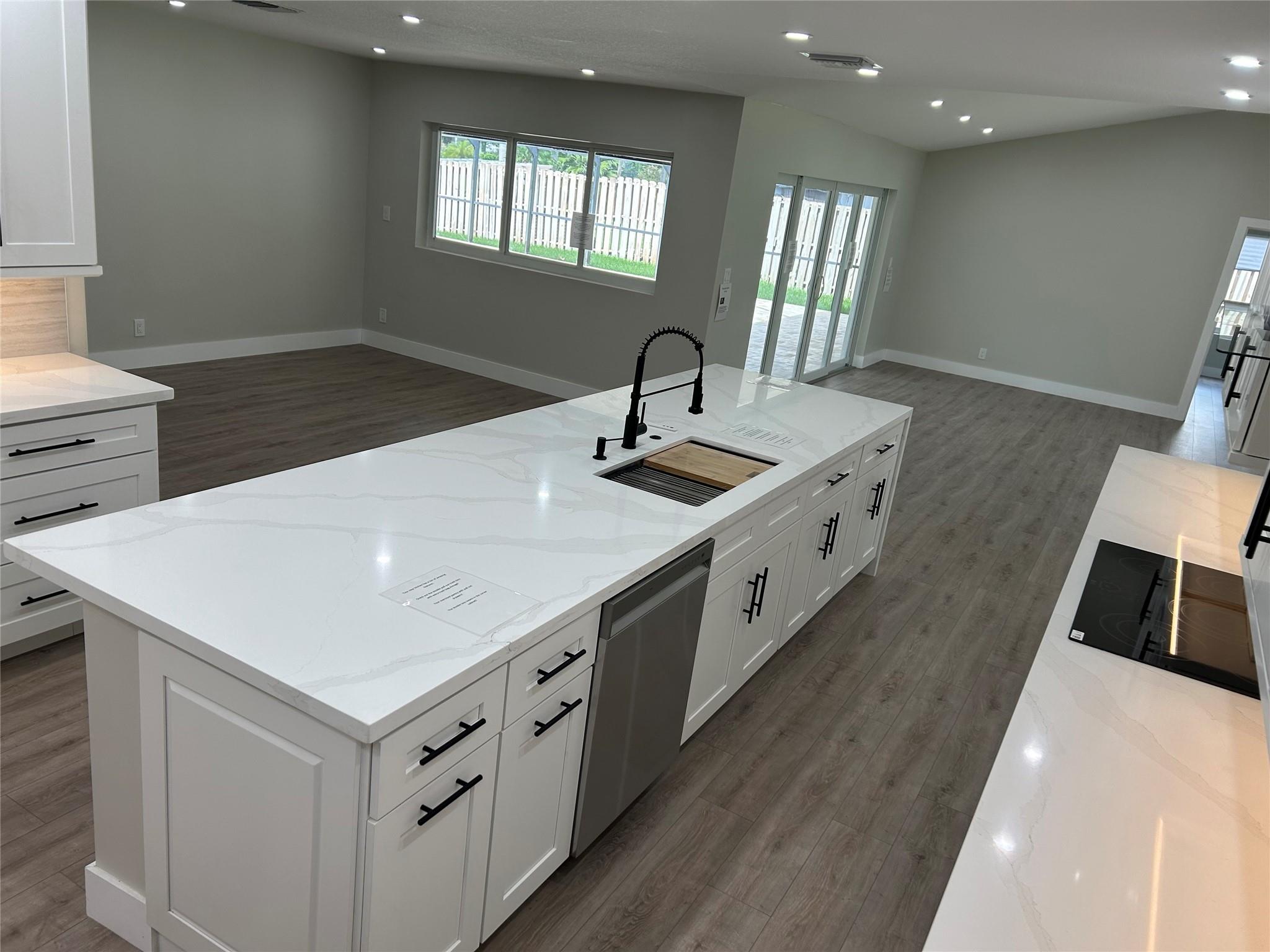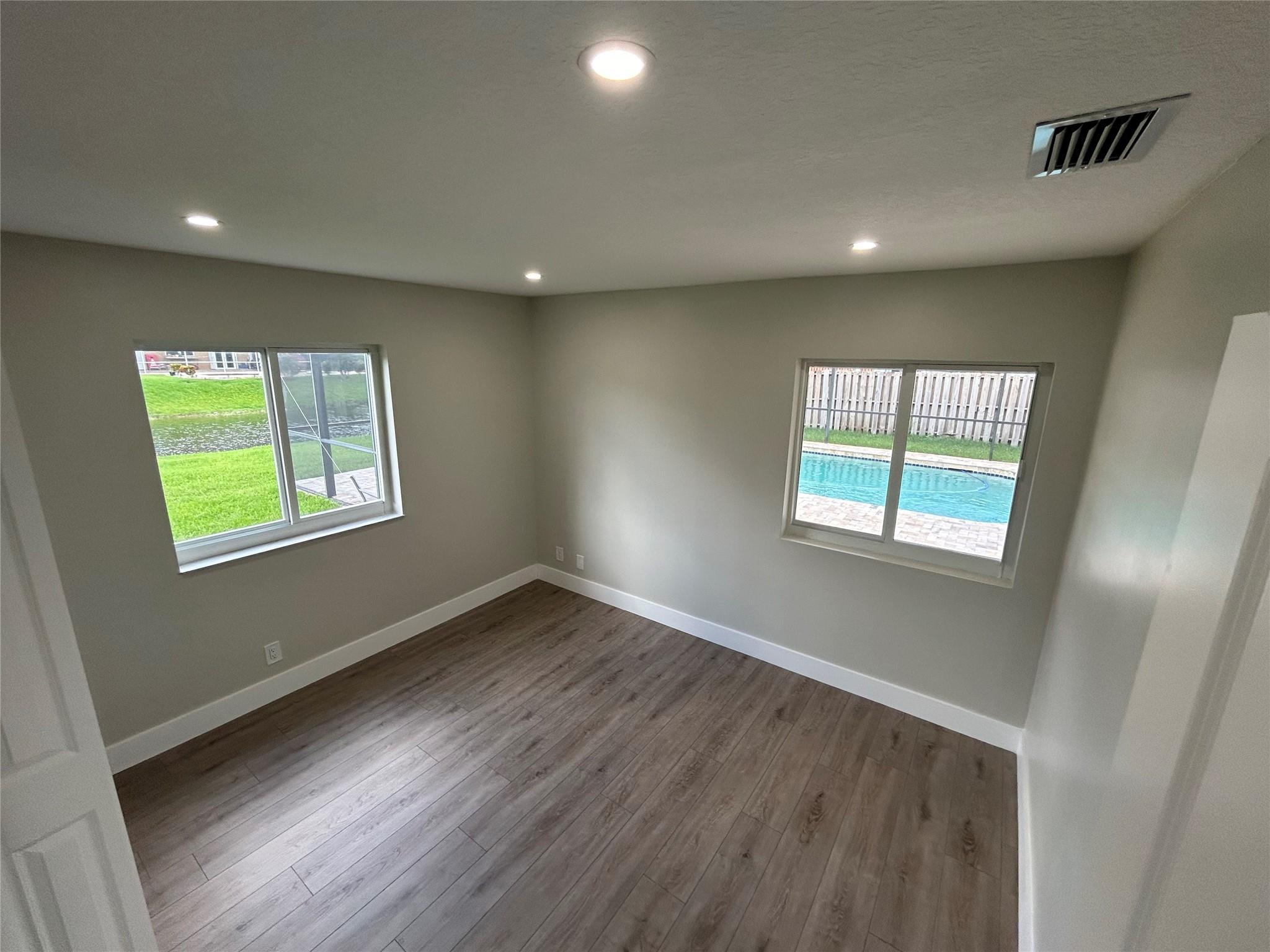 This stunning example of perfection is a 3 bedroom 2 bath waterfront home with pool. Brand new Metal Roof w/ transferable warranty! Open floorplan with huge entertaining/chef kitchen including brand new appliances. Decorator designed interior! Exterior flaunts picturesque impact rated doors, windows, travertine pool/patio and oversized travertine driveway! A+ Schools and walking distance to park and major shopping centers. No HOA.