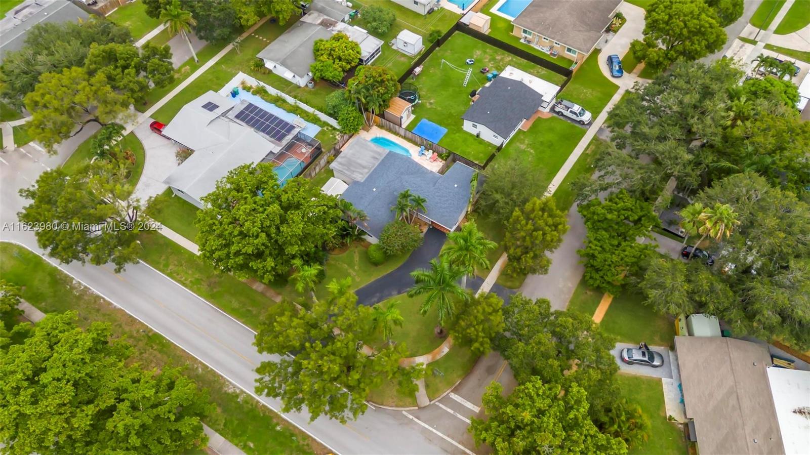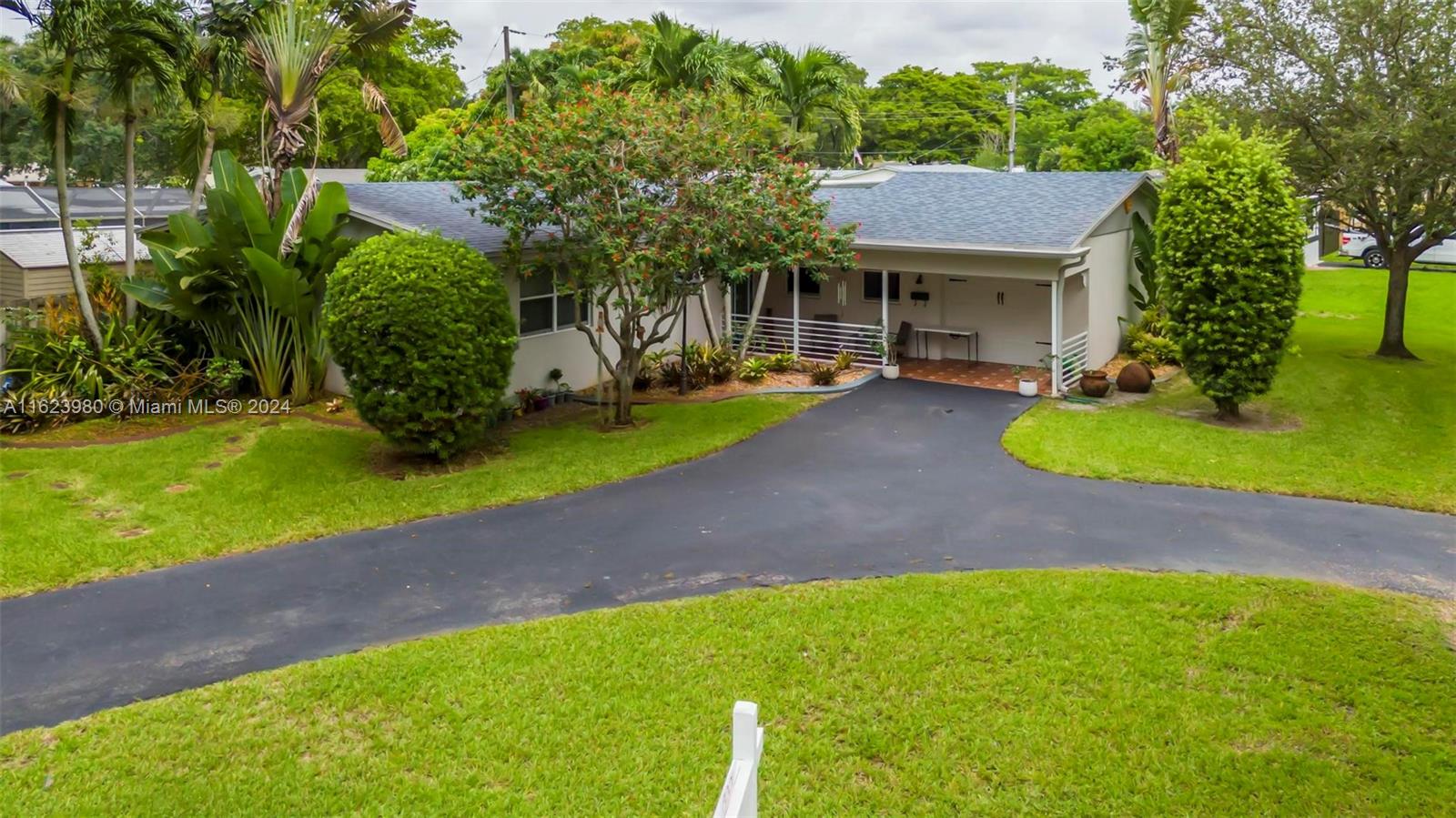 This delightful single-family home nestled in a desirable neighborhood of Cooper Colony sits on a corner lot. Its circular driveway provides ample parking space. Upon entering, notice freshly painted walls complemented by crown molding & baseboards throughout. The remodeled bathroom showcases elegant grey wood cabinetry & a modern standing shower. The spacious family room is perfect for a 4th bedroom. Adjacent to the kitchen, the garage has been converted into a functional office space complete w generous storage cabinets & a split AC. French doors lead you outside to your refurbished pool w all new plumbing & two large sheds w electric hookup. Complete Hurricane impact protection. Roof and flat roof 2020 built as a single wrap. All A rated schools making it an ideal choice for families.