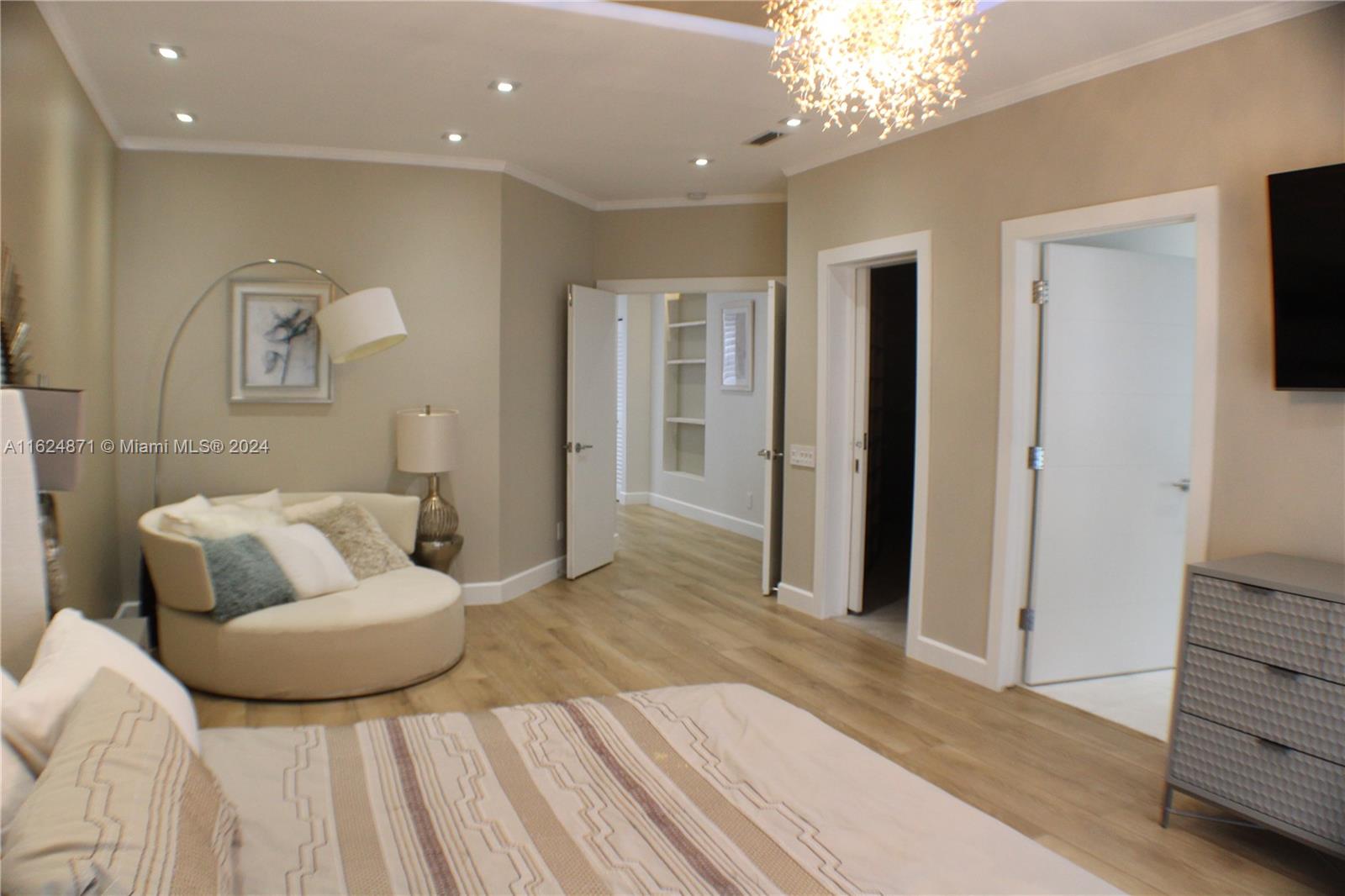 This meticulously designed, remodeled residence combines modern luxury with practicality, offering an ideal living space for discerning homeowners. Upon entry you are greeted by voluminous ceilings that create an airy, spacious atmosphere throughout the home. The gourmet kitchen is a chef's dream, featuring high-end SS appliances, sleek cabinetry, and striking 3 cm countertops of luxurious marble. The open layout seamlessly creates a perfect setting for entertaining guests or enjoying quality time w/family. 1 of the bedrooms is conveniently & accessibly located on the ground fl. Upstairs, the primary suite is a private retreat complete w/a sitting area, tray ceiling w/accent lighting, walk-in closet & en suite w/dual sinks, luxurious soaking tub, & separate shower. Resort style amenities.