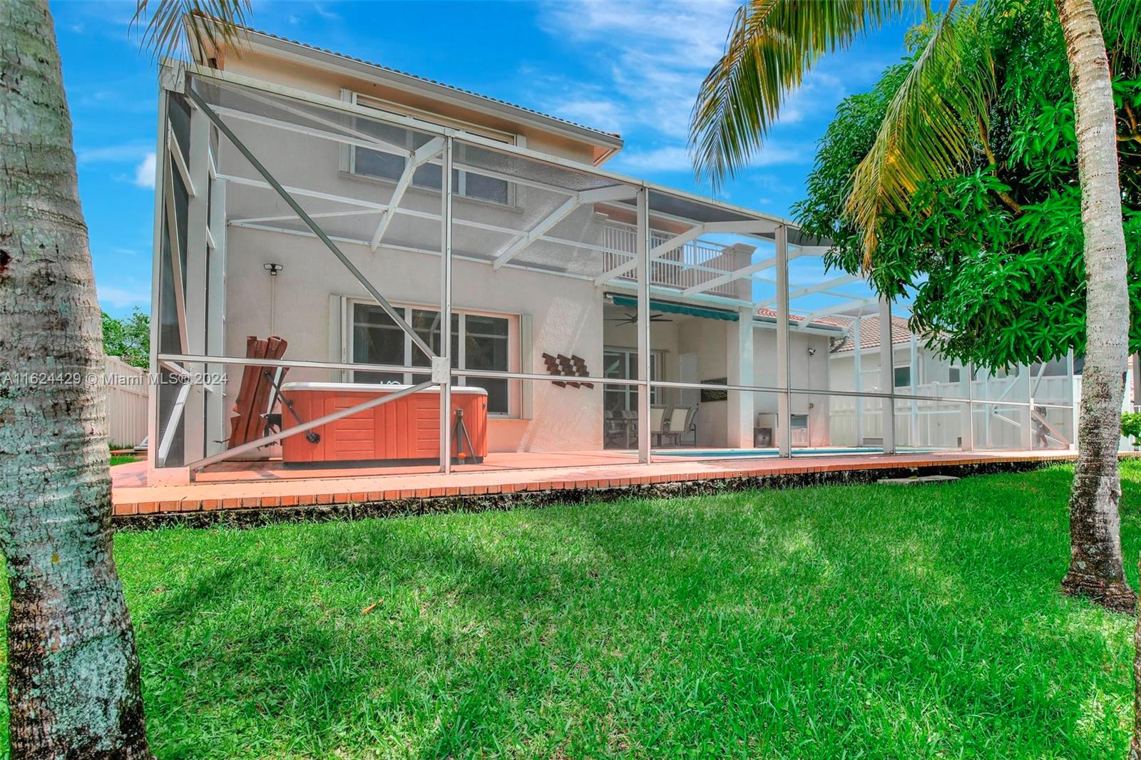 Very Motivated Sellers! Located in the prestigious Windsor Palms gated community of West Miramar, this stunning 5-bedroom, 4-bath waterfront home offers panoramic lake views. The open layout includes an office and bedroom with a full bath on the 1st floor, plus four bedrooms, a loft, and two baths on the 2nd floor. The modern kitchen features quartz countertops, an island, and new 2022 appliances. Enjoy the screened patio with a pool, standalone jacuzzi, balcony and ceiling fans. Extras include a separate shed, 4-car driveway, infrared sauna and motorized stair window shutter. Conveniently close to I-75, Florida Turnpike, shopping, parks, and dining. Occupied by the current owner since 2004.