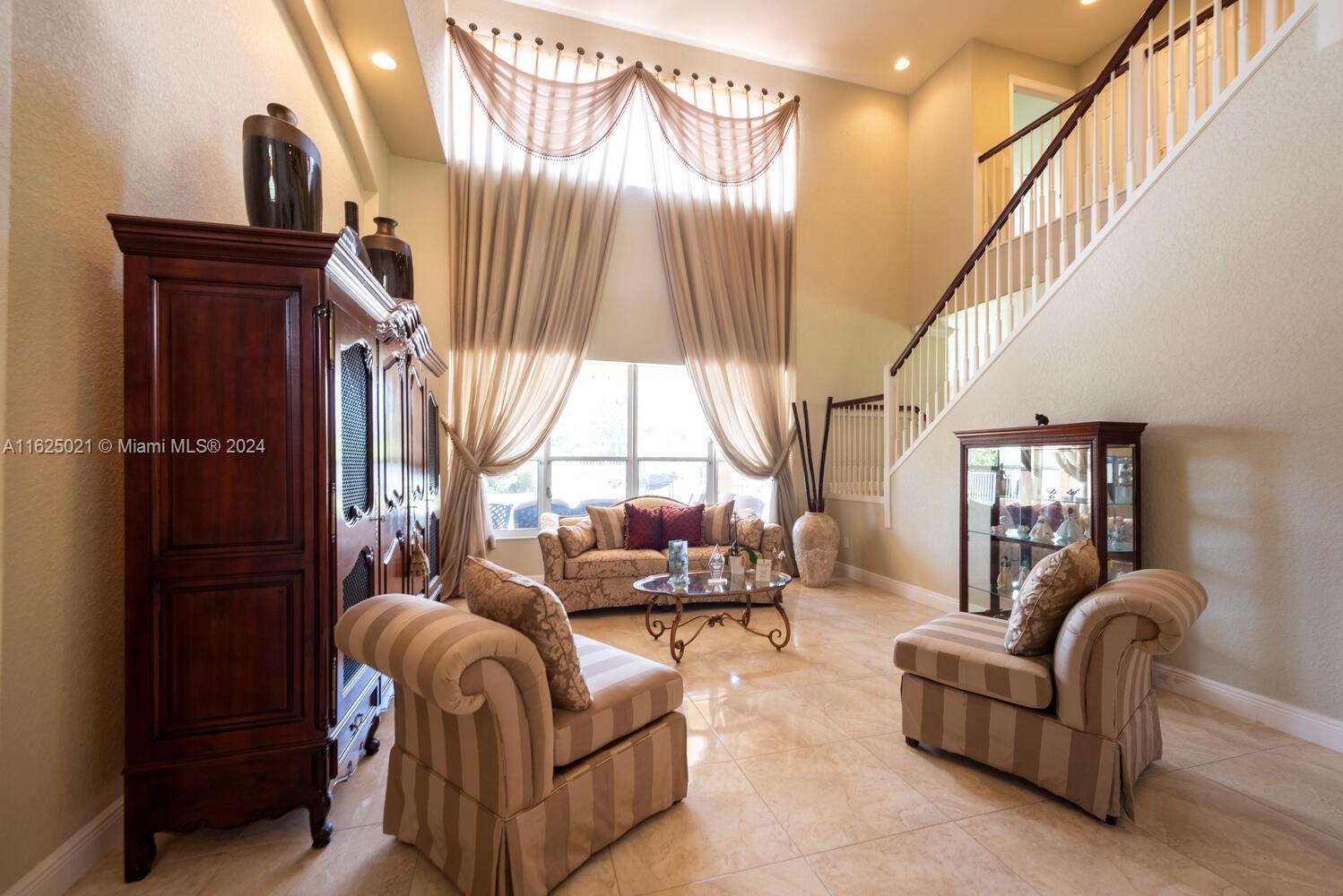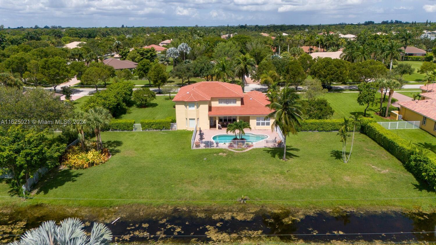 Welcome to "Someplace Special" the gated estate section of Country Glen one of the most exclusive communities in Cooper City. This Stratford model boasts a ground floor, stunning primary suite, sitting room, ensuite bath, dual vanities, lg walk in shower, whirlpool tub, separate water closet, all with tray ceilings, & french doors that lead to covered open porch and pool. Open kitchen, adjacent to huge family room, with custom built-ins. Lovely home office/den on first floor. Upstairs you'll find three full bedrooms, a loft which can be fourth bedroom, 2 jack & jill full baths. Dual a/c units, brand new barrel tile roof (4/24 with warranty), paver circular driveway, 3 car garage can easily park 10-12 cars. Upscale landscaping ,as well as backyard with fenced pool, fabulous water views.