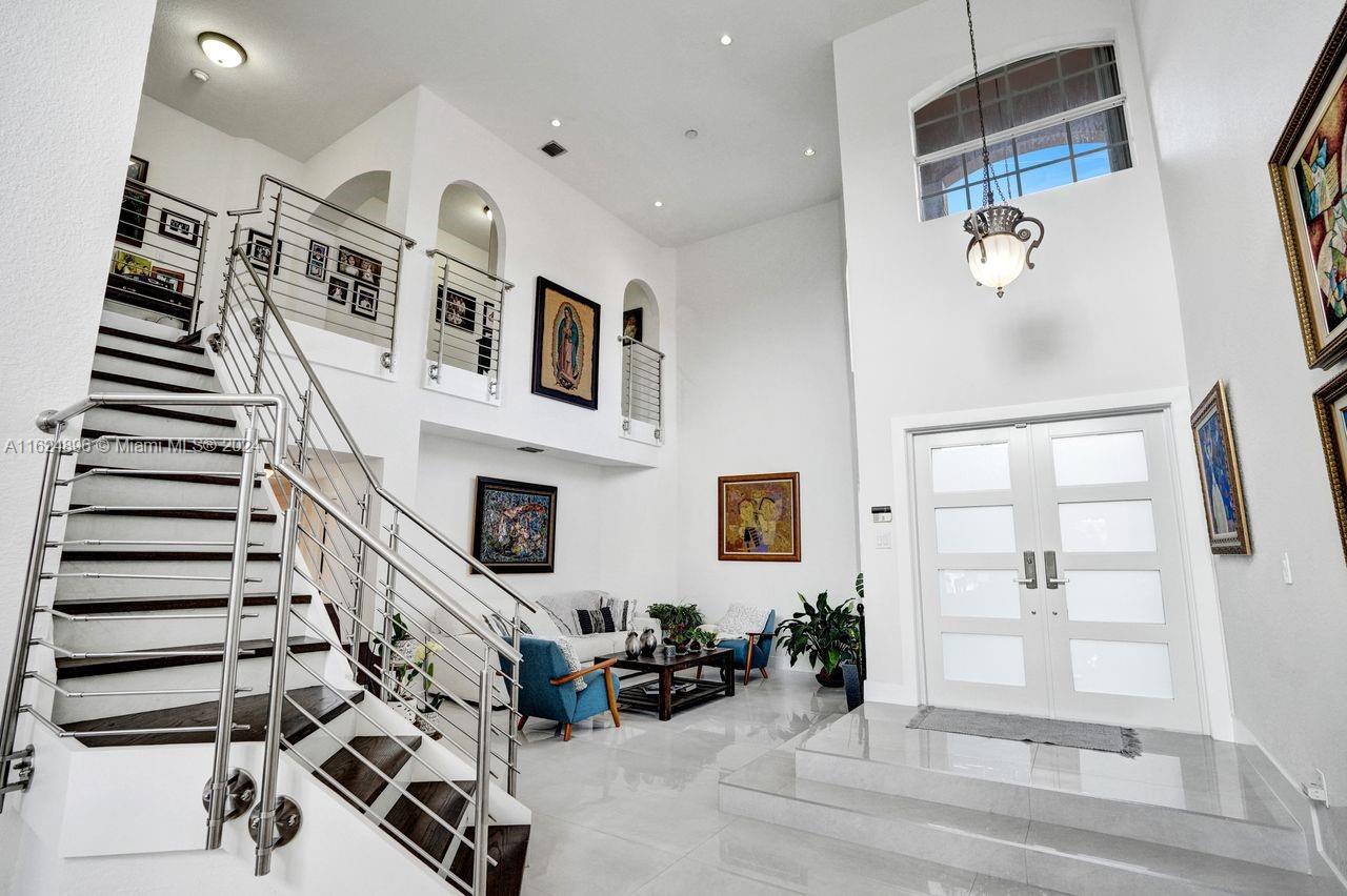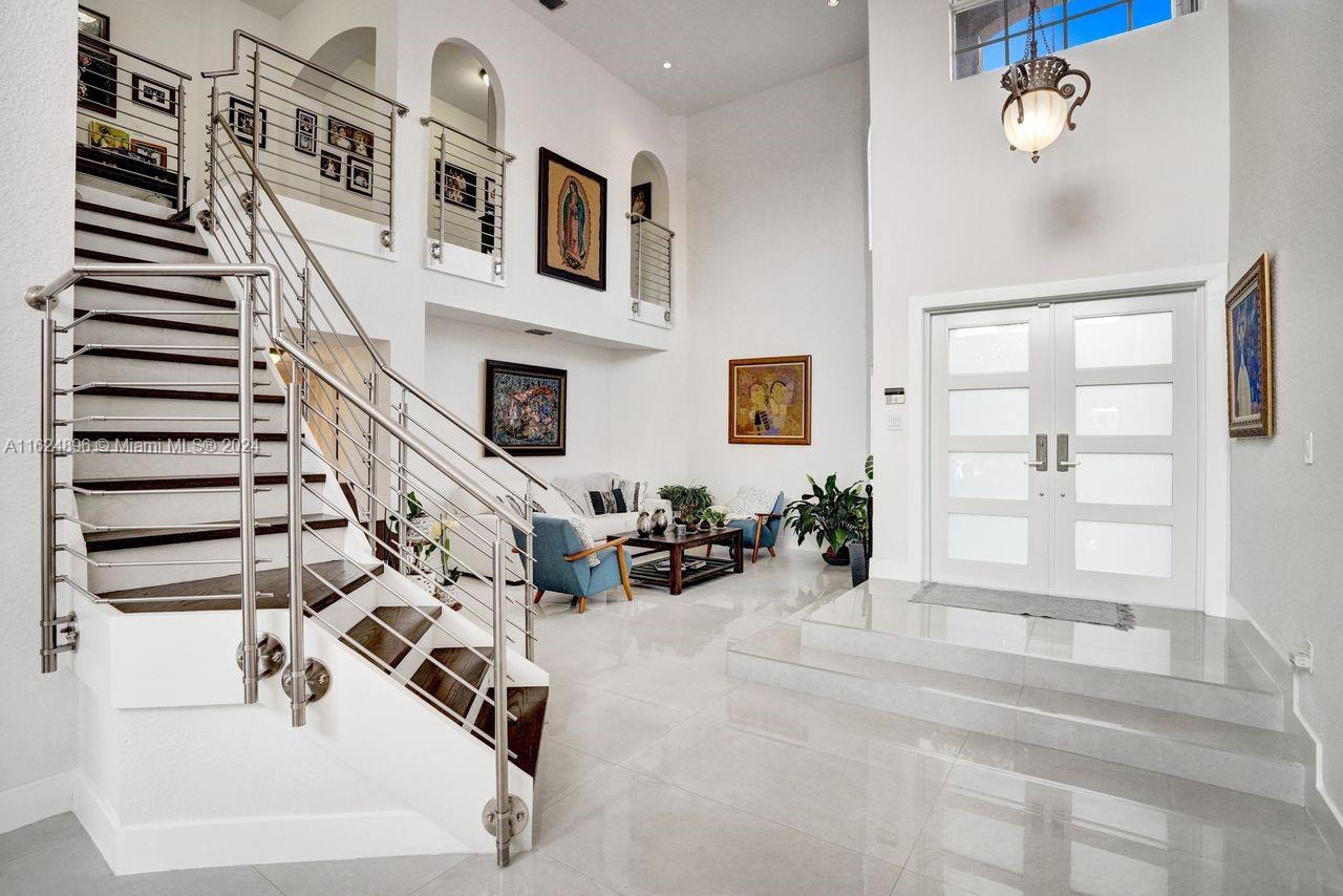 "Welcome to resort-style living at its finest in Doral Isles! This stunning new listing boasts an enviable lake view, complete with a sparkling pool to enjoy year-round. With 5 bedrooms plus a maid's quarter and 3 baths, this home offers space and luxury. The fully upgraded kitchen is a chef's dream, featuring quartz countertops, soft-close drawers, and top-of-the-line Dacor Subzero appliances. Stainless steel handrails grace the new stairs, complementing the freshly installed floors throughout. Impact-resistant doors ensure security and peace of mind. Don't miss the chance to call this exquisite property your new home!"