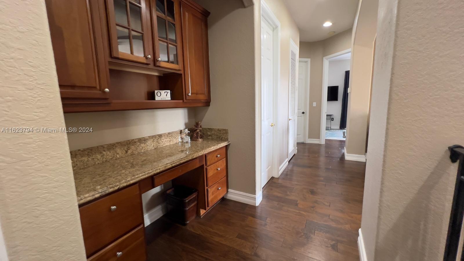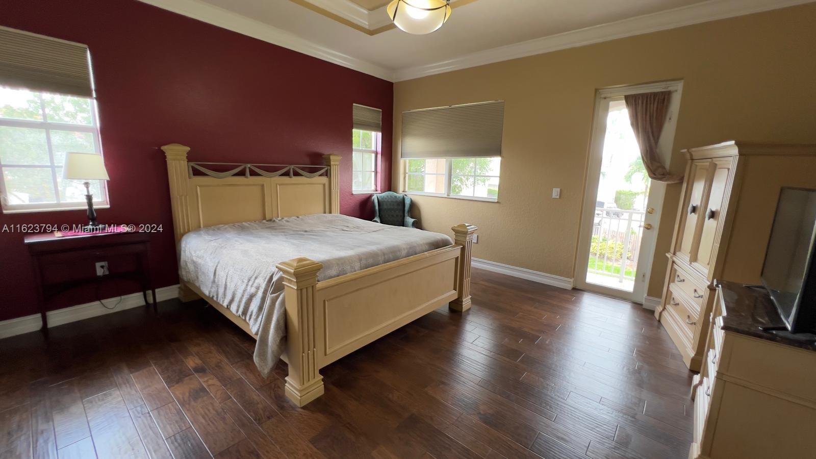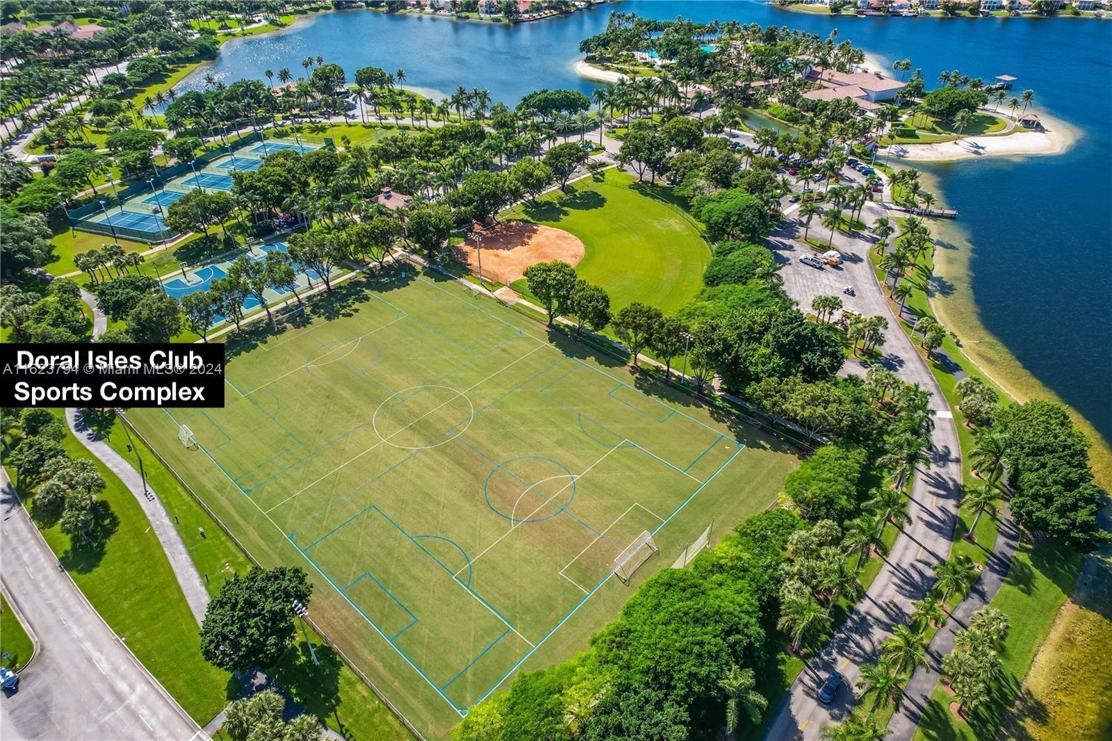 Doral Isles nestled in the dynamic new City of Doral. This home boasts 5 beautiful spacious bedrooms, 4 ½ baths, and multiple multi-use rooms. 3,695 Sq Ft on an oversized 11,643 Sq Ft Lot. A suite is located downstairs adjacent to the large kitchen, dinette nook and family area which spreads out into an open concept design. Also located on the first floor is a separate formal living room with an adjacent private outdoor patio.This home also enjoys a separate dining room. A staircase in decorative antique ironwork and cherry wood stained stair steps, winds itself upward through the center of the home opening up to the second level. Here you find a centralized loft area plus a unique octagon shaped office, 4 additional bedrooms, 3 full bathrooms and a separate laundry room.