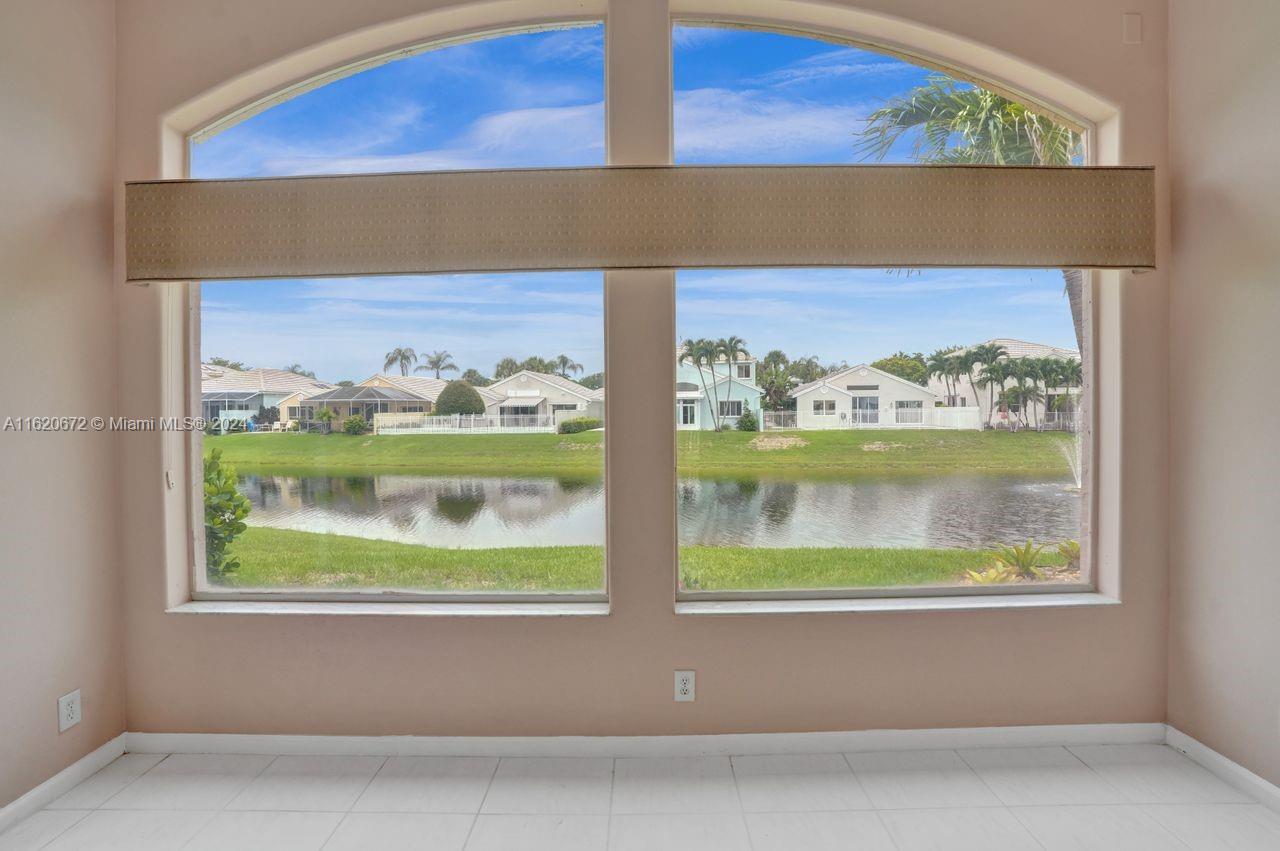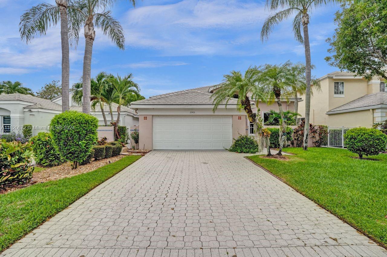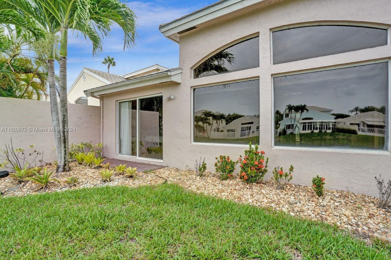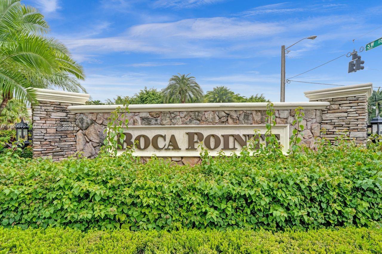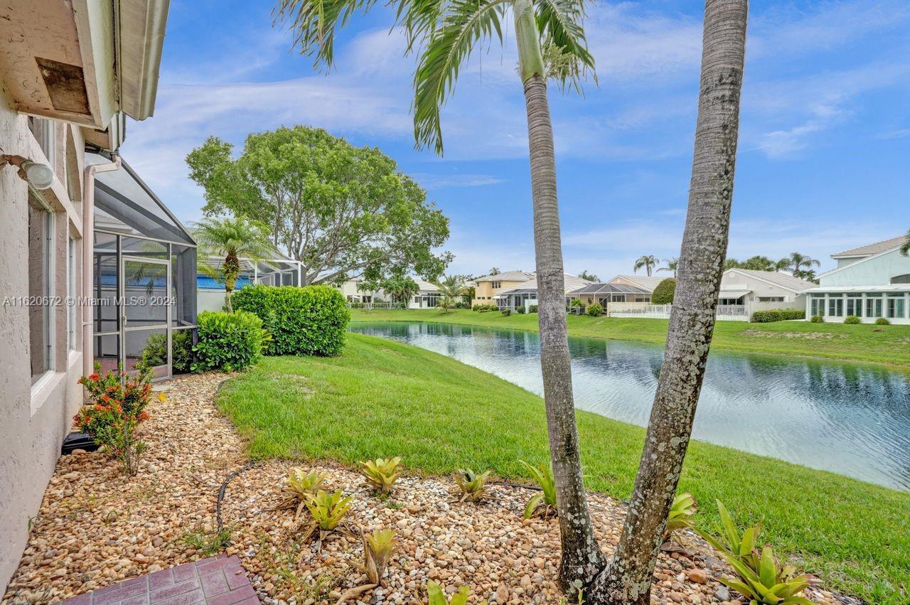 Nestled in Boca Pointe's exclusive gated Palms community, this lovely canal front, single-story 2 bedroom, 2 bath residence offers an open and airy ambiance. Highlights include updated designer Saturnia stone bathrooms, high ceilings throughout, a convenient 2-car garage, spacious master bedroom with a large walk-in closet and double sink bathroom vanity, oversized tub and large walk-in shower; an eat-in kitchen and separate utility room for practicality; ceramic tile in main areas and wood floors in both bedrooms. AC replaced in 2016 and water heater in 2022. Enjoy the serenity of canal-side living from the large screened patio, perfect for morning coffees or evening gatherings. Here is your perfect opportunity to make this a dream haven for relaxed Florida living!