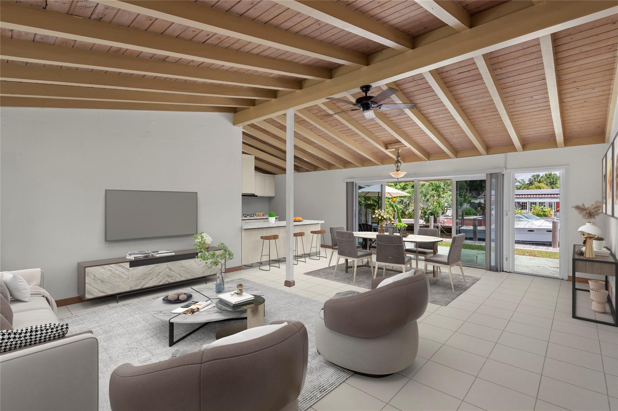 Lowest price waterfront home in Fort Lauderdale east of the I-95! No fixed bridges, deep canal access to the ocean. Centrally located with great access to downtown and Brightline within 1.5 miles. I-95, airport and cruise port all conveniently close. Home is a 3-bed 2-bath single story with private 65’ dock. Featuring original terrazzo floors, full impact windows, newer AC and Dade Pine beams in a vaulted ceiling. A few tweaks will quickly unlock great value. Imagine enjoying lazy afternoons at your dock and in the large backyard, or take your boat out for an afternoon on the river, or out to the ocean! Property is situated in 500-year Floodplain, good for insurance! Better move quickly, this gem won’t be around for long.