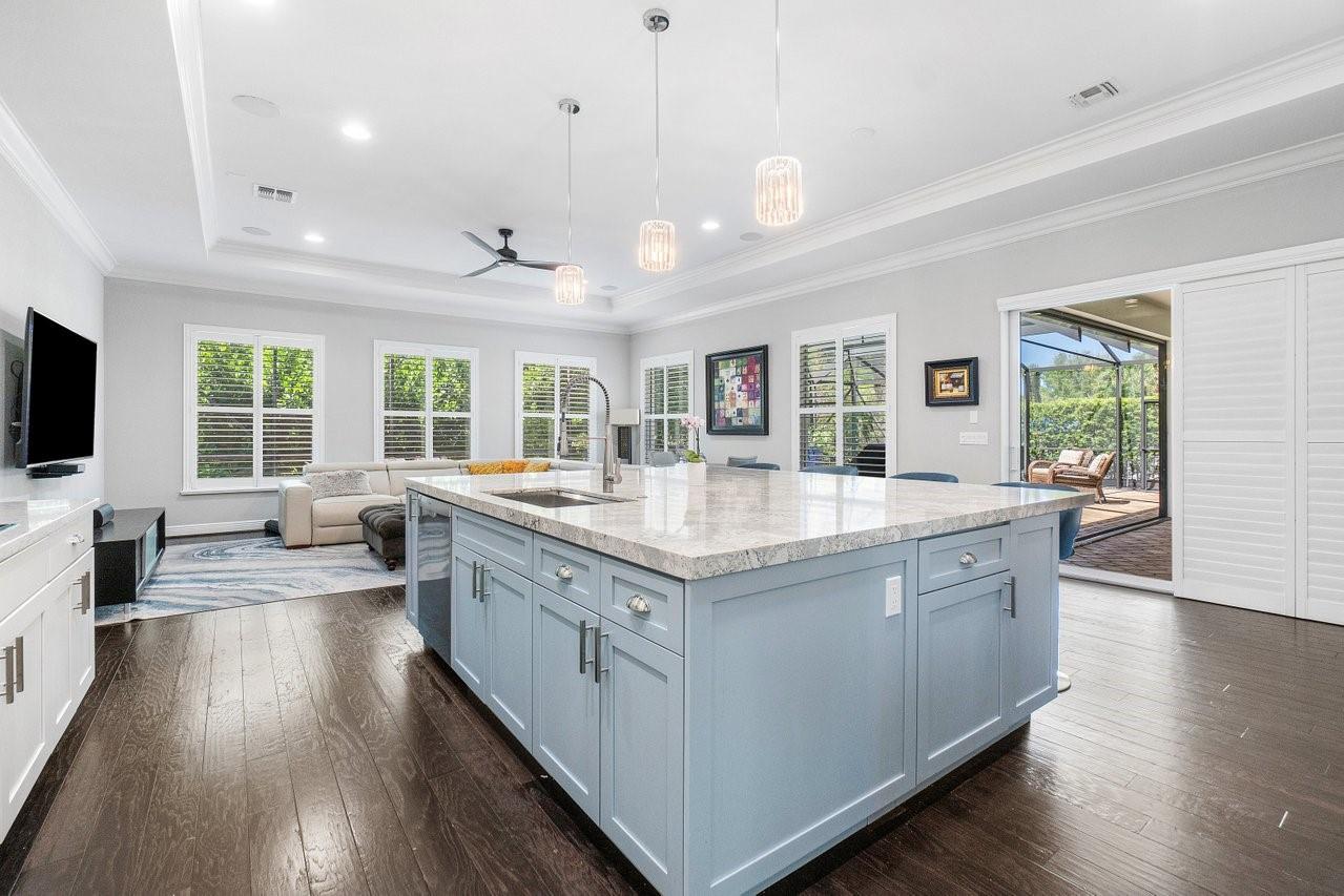 Be Wowed by this breathtaking Heron Bay home. Soaring ceilings, large living spaces, impeccable finishes & attention to every detail resulted in a sophisticated yet relaxed home. Stunning new crisp white kitchen with a huge pale blue island is impressive in size & offers breathtaking quartz counters, top shelf appliances, gas burner stove & wine cooler. The 1st floor primary suite is sublime & has a spa like bathroom with a separate shower & tub. Other offerings; Grand staircase, Impact windows/doors, Wood floors, Loft, Plantation shutters & more! The private backyard has glorious outdoor living spaces, an expansive screened porch, & pool. Heron Bay is a resort style community sited behind stunning guard gated entrances & where residents enjoy a comprehensive menu of world class amenities.