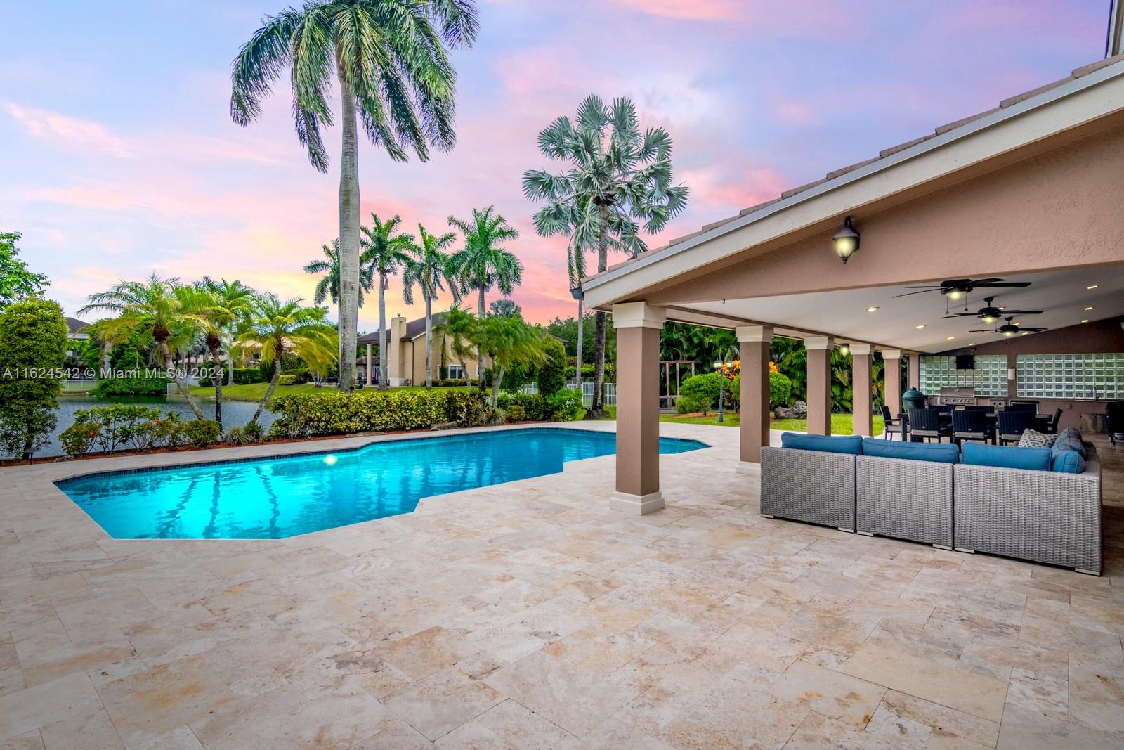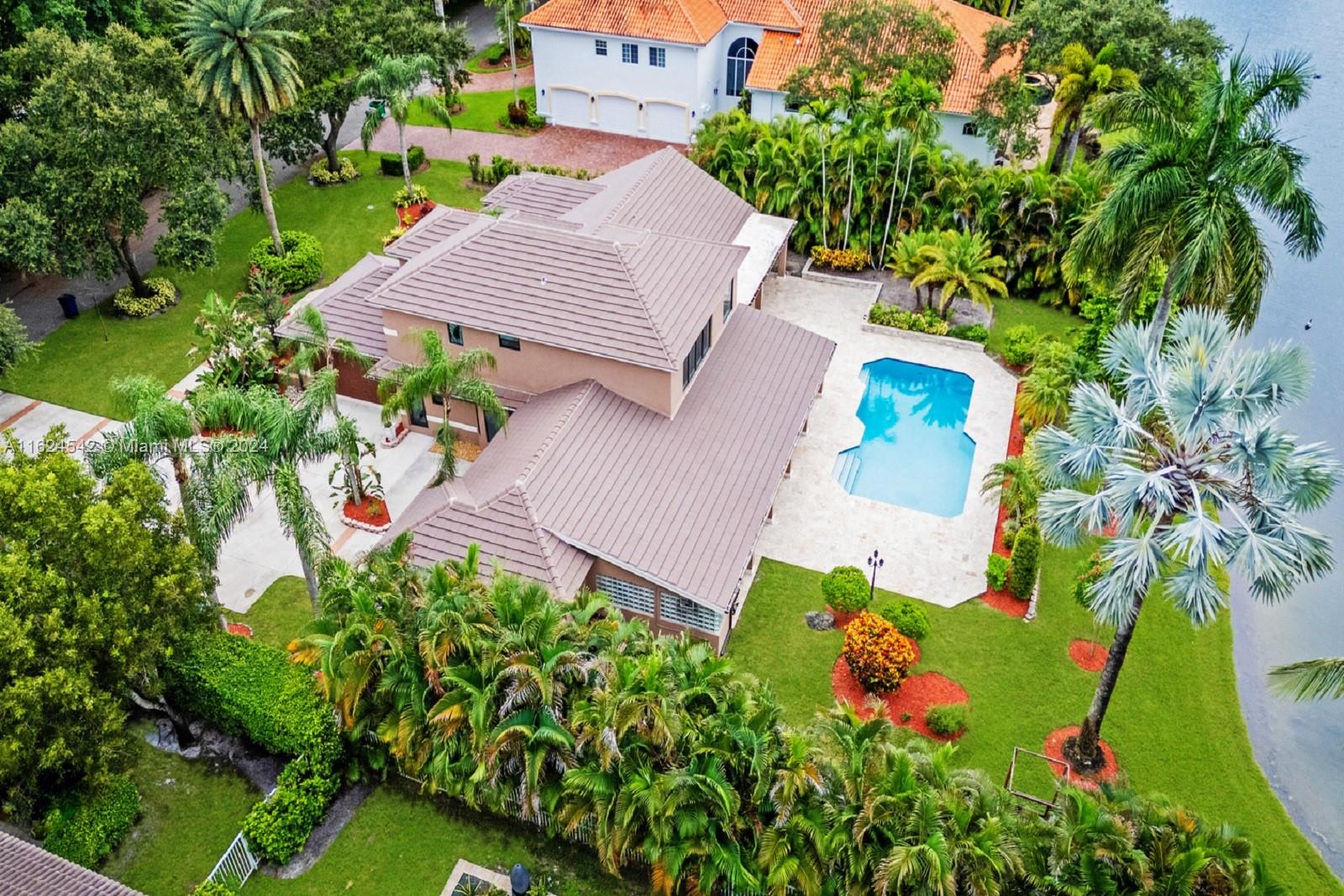 EXQUISITE 5 BED, 3.5 BATH POOL WATERFRONT HOME ON PREMIUM 45,765 SQ FT LOT IN PRESTIGIOUS INDIAN POND, COOPER CITY. ENJOY LUXURY & COMFORT AS NATURAL LIGHT CASCADES THROUGH LARGE WINDOWS, ILLUMINATING THE ELEGANT INTERIOR. OPEN FLOOR PLAN SEAMLESSLY CONNECTS THE SOCIAL AREAS. KITCHEN FEATURES HIGH-END APPLIANCES, AMPLE COUNTER SPACE & CUSTOM CABINETRY. RETREAT TO SPACIOUS PRIMARY SUITE W SPA-LIKE EN-SUITE BATH & LARGE CLOSETS. UPSTAIRS, A SPACIOUS LOFT AREA W 2 ADDITIONAL BEDS. STEP OUTSIDE TO YOUR PRIVATE PATIO OASIS, WHERE THE SPARKLING POOL & SERENE WATERFRONT VIEWS CREATE RELAXATION & TRANQUILITY WHILE YOU ENJOY THE PICTURESQUE BACKDROP. AWESOME IN-LAW SUITE, SUMMER KITCHEN, NEW WHOLE HOME GENERATOR 2022. NEW ROOF 2019, ALL 4 NEW ACS 2020, IMPACT WINDOWS, 3 CAR GARAGE & LARGE DRIVEWAY.