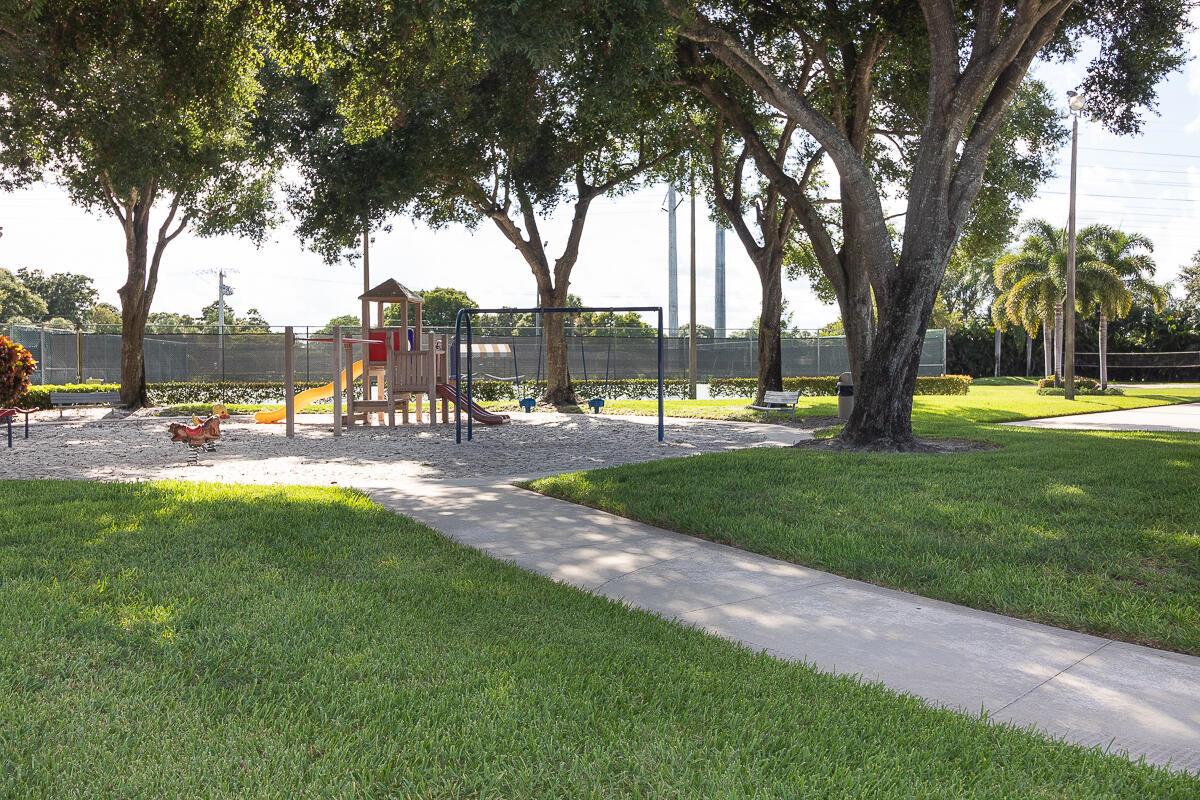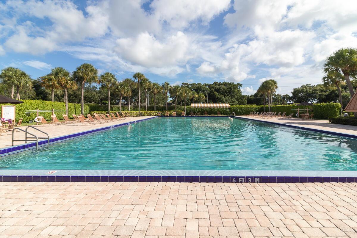 LOCATION, LOCATION, LOCATION! The quietest unit in the Village is priced to sell! The only sound you will hear is the breeze blowing through the palm trees outside your newly fenced-in courtyard. This updated unit with a SE exposure boasts new appliances, newer AC (2021), and tiled flooring. Walk to the Olympic-sized pool, tennis courts, and playground. AND you can walk to MLB Spring Training games which are less than 1 mile away.