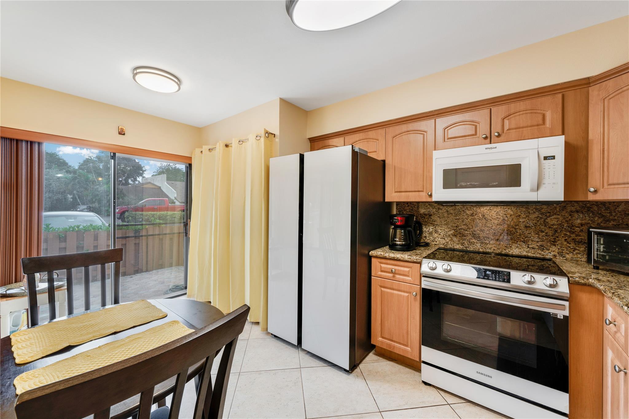 This spacious move-in ready townhome offers an inviting living space with 2 bedrooms and 2 baths. Key features include a large loft area upstairs adds extra living space. Elegant wood laminate flooring throughout the home. A stylish kitchen featuring granite countertops and Newer Samsung appliances and has a designated space for a breakfast nook. Convenient In-unit washer and Dryer. Vaulted Ceilings: High ceilings that enhance the sense of space. A large, tall screened-in patio for outdoor enjoyment. A spacious fenced-in front porch for added privacy and outdoor space. This townhome is perfect for those seeking a comfortable and stylish living environment.