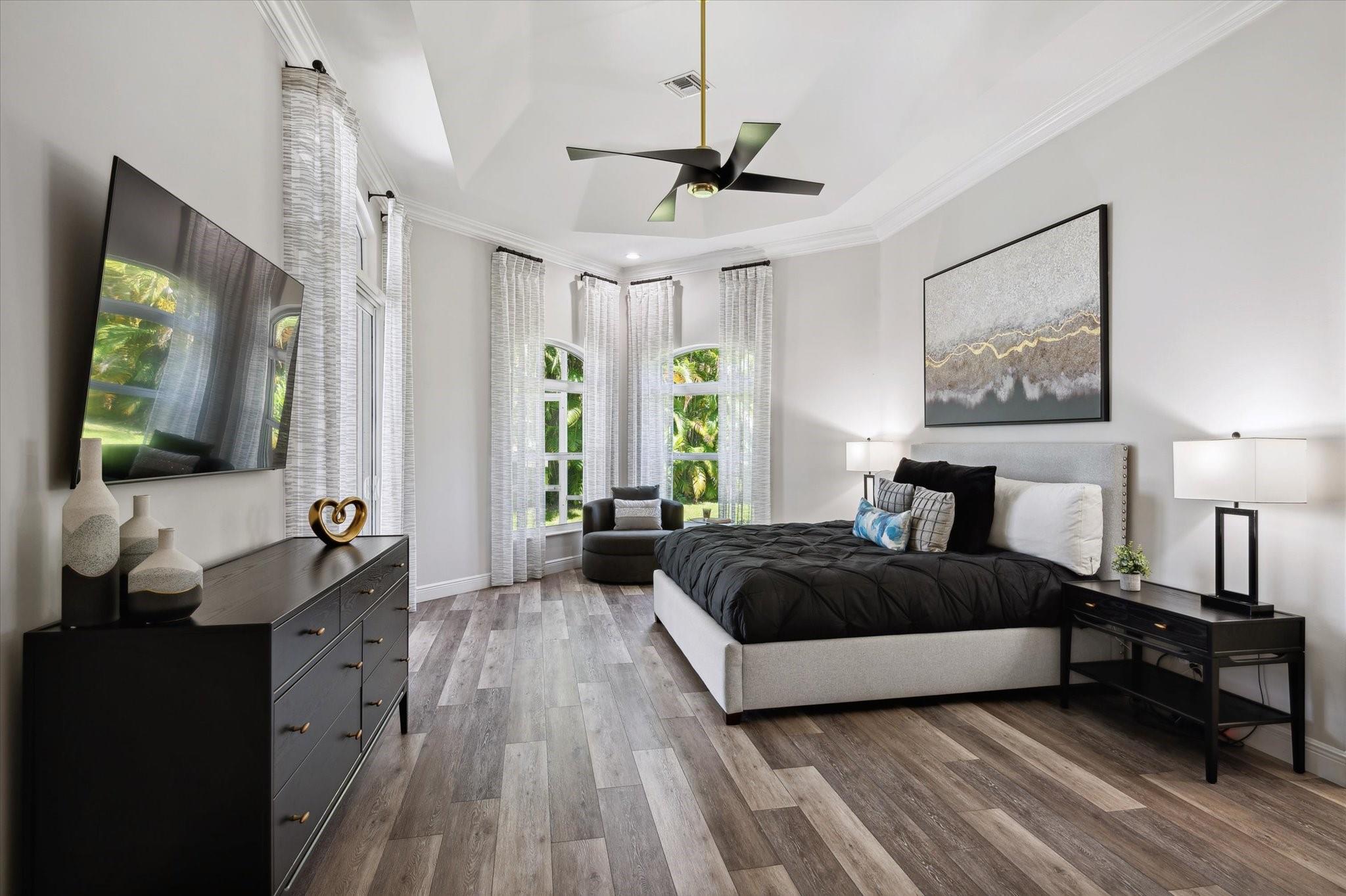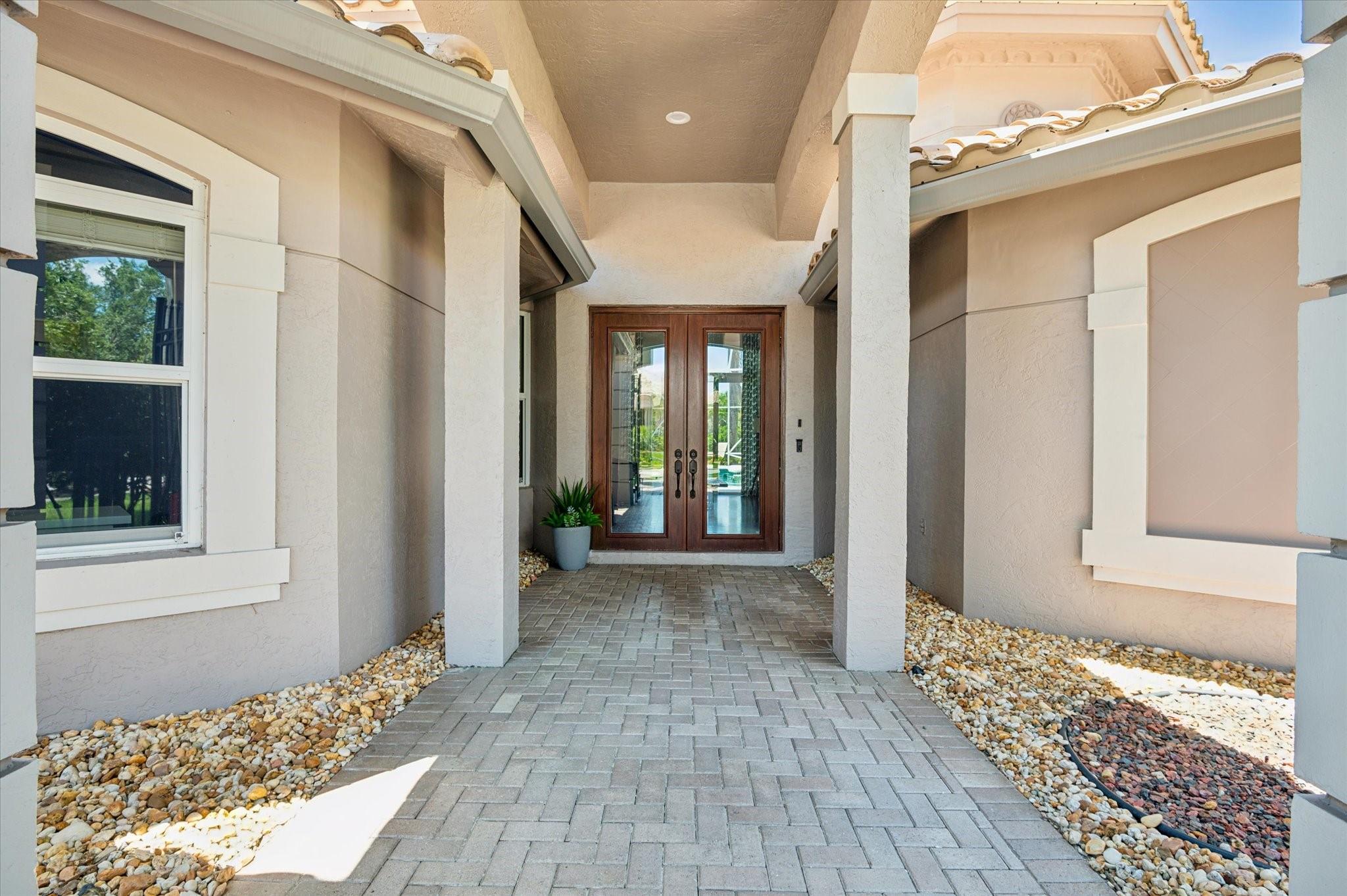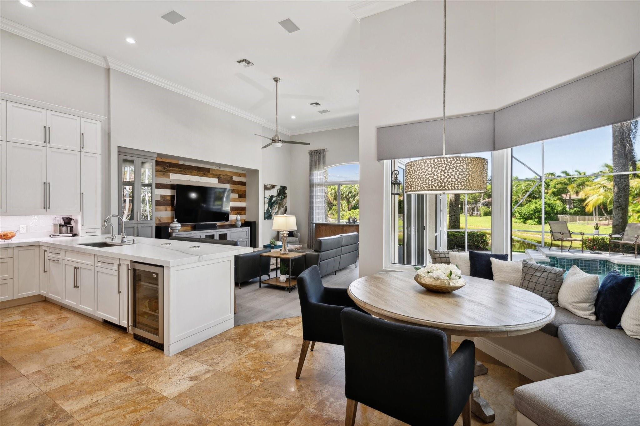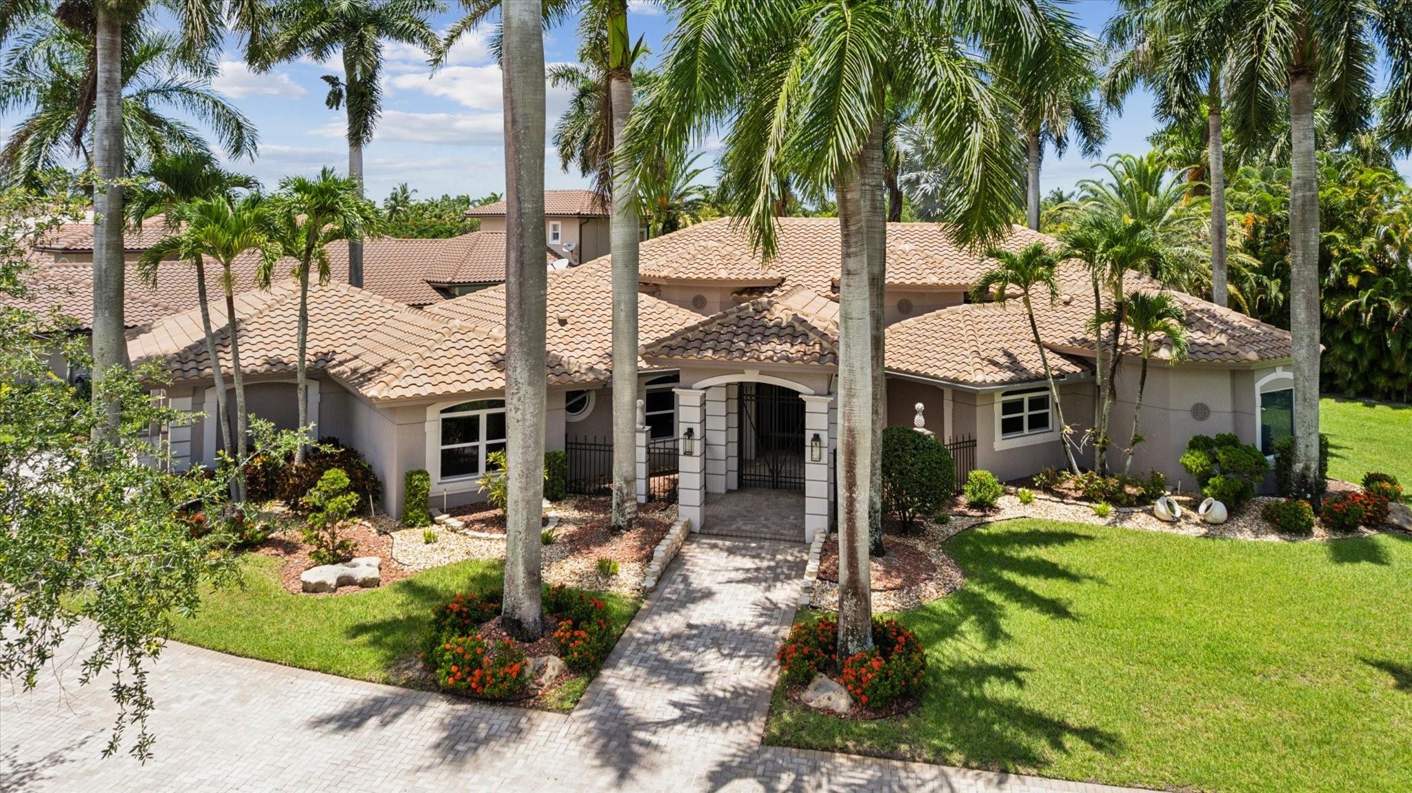 Nestled in the prestigious Falls of Heron Bay, this custom-built home boasts a prime location with nearly half an acre of luxurious living with breathtaking water and island views. The 2020 roof and hurricane impact windows and doors ensure peace of mind. Inside, a new gourmet kitchen dazzles with 10-foot custom wood cabinetry, Sapienstone porcelain countertops, double oven, and induction cooktop. The Primary Suite features coffered ceilings, serene water views, and a newly remodeled bathroom with a soaking tub, quartzite counters, glass-enclosed shower, and water closet. Outdoors, enjoy the screened-in custom pool and spa. The community features two clubhouses with resort style pools, tennis, basketball courts and more! This is a must see home it will go fast!