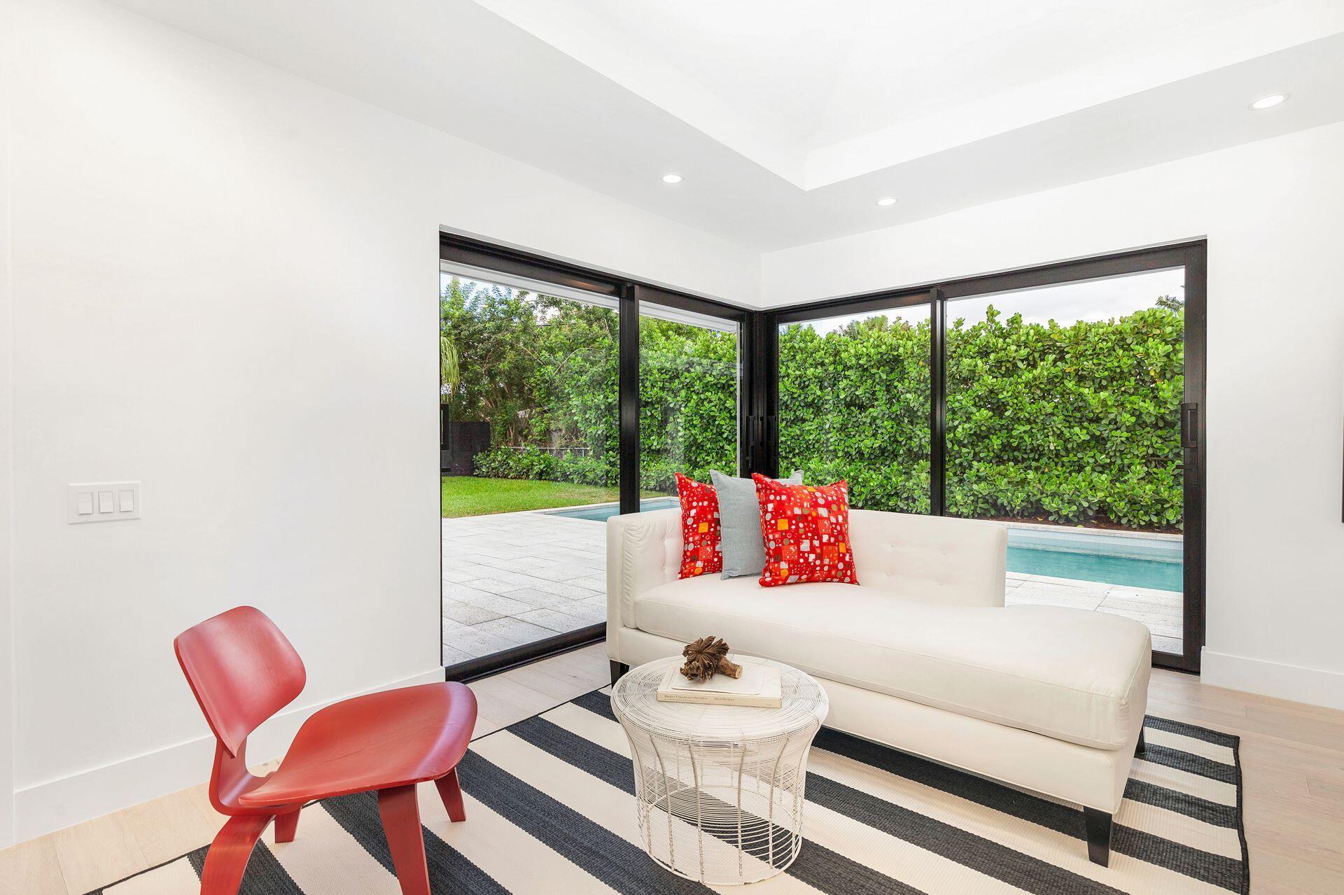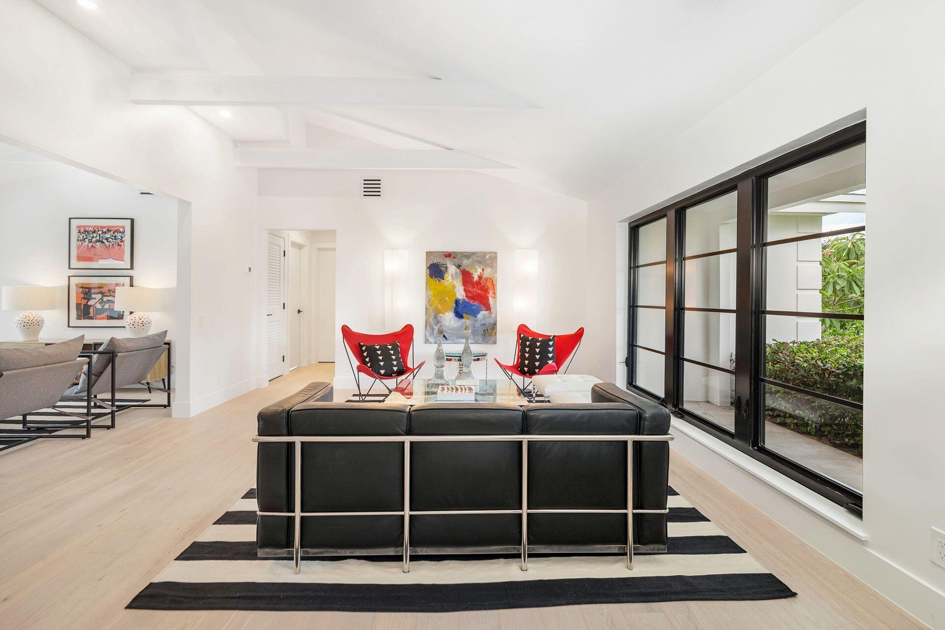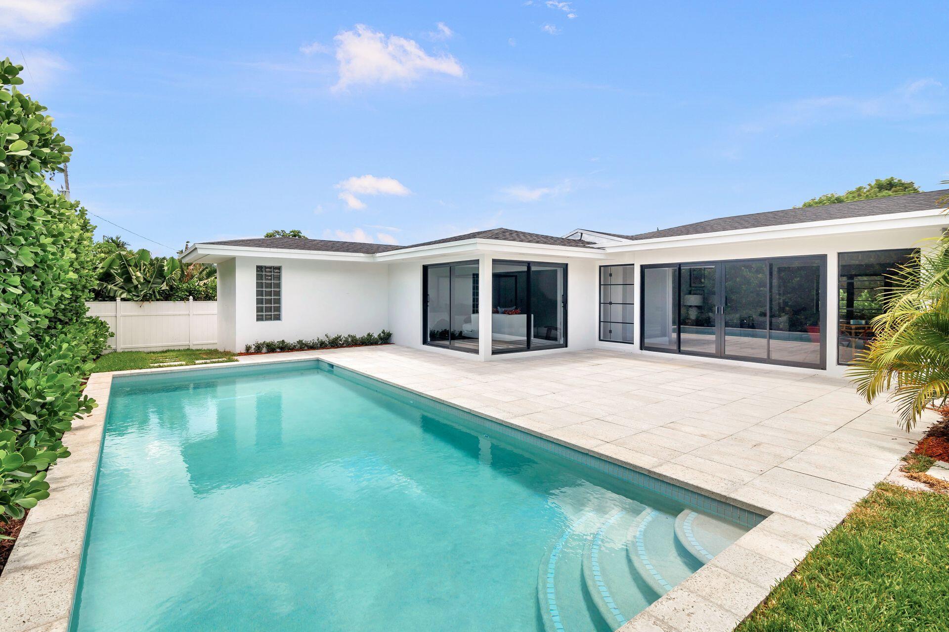 Mid-century Masterpiece. Completely re-designed, re-imagined and enduring a 14 month ground up renovation this modern ''SoSo'' beauty has been taken to the studs and brought back to its intended splendor. Nestled on a huge lot with high elevation and featuring four bedrooms and four full baths, this home has brand new electrical, new plumbing (all the way to street/sewer), a brand new roof, new HVAC and ductwork, new custom impact glass windows and doors and a full house generator. Offering maximum privacy and functionality, 375 Valley Forge consists of three separate wings to the home including 2 private guest rooms with ensuites. The oversized primary suite tucked at the rear wing of the home boasts massive sliders overlooking a brand new pool and decking, vaulted ceilings, excessive