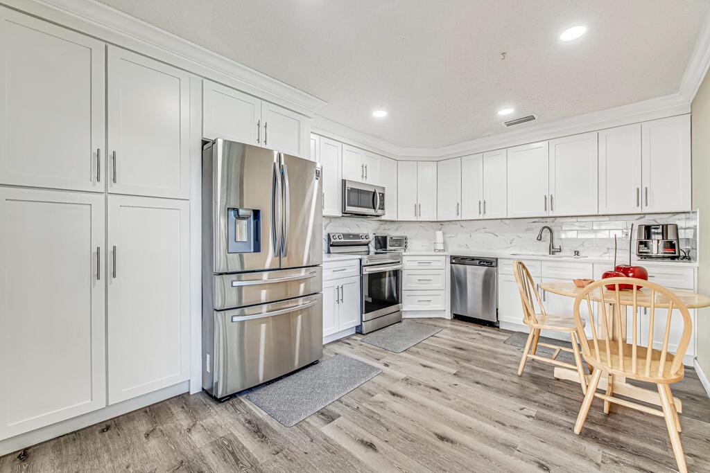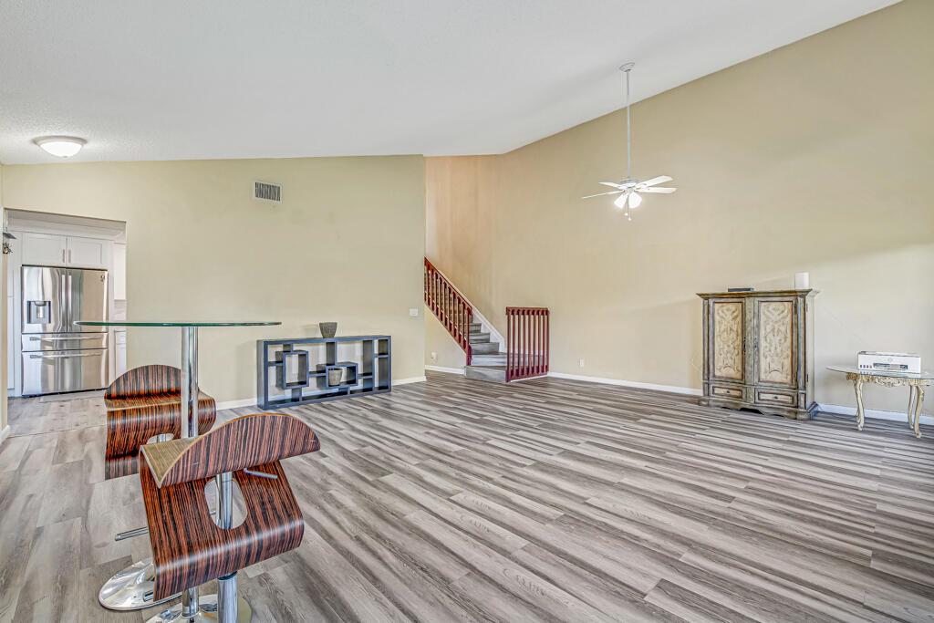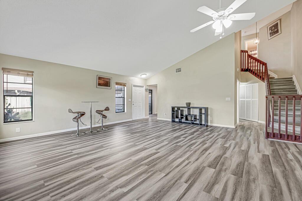Seller is very motivated. Pride of ownership shows in this beautifully maintained spacious townhouse in the well desired Lakeside Green community. The newly renovated kitchen boasts stainless steel appliances and granite countertops with beautiful white shaker cabinets. This home boasts an open floor plan, living room has vaulted ceilings and new laminate floors. The master bedroom, conveniently located on the first floor features a dedicated entrance to the private enclosed patio, updated master bathroom and a spacious walk-in closet. Upstairs has 2 large bedrooms, updated bathroom. AC 3 years old, hot water heater a year old, roof 2 years old. HOA covers roof and the building's exterior. Community offers a clubhouse, pool, library, fitness center, playground area and tennis court.