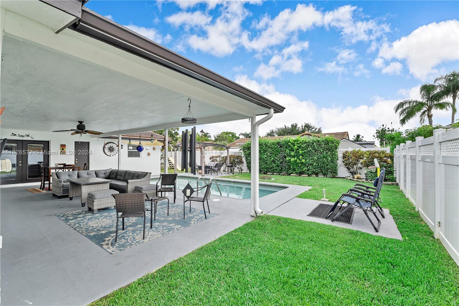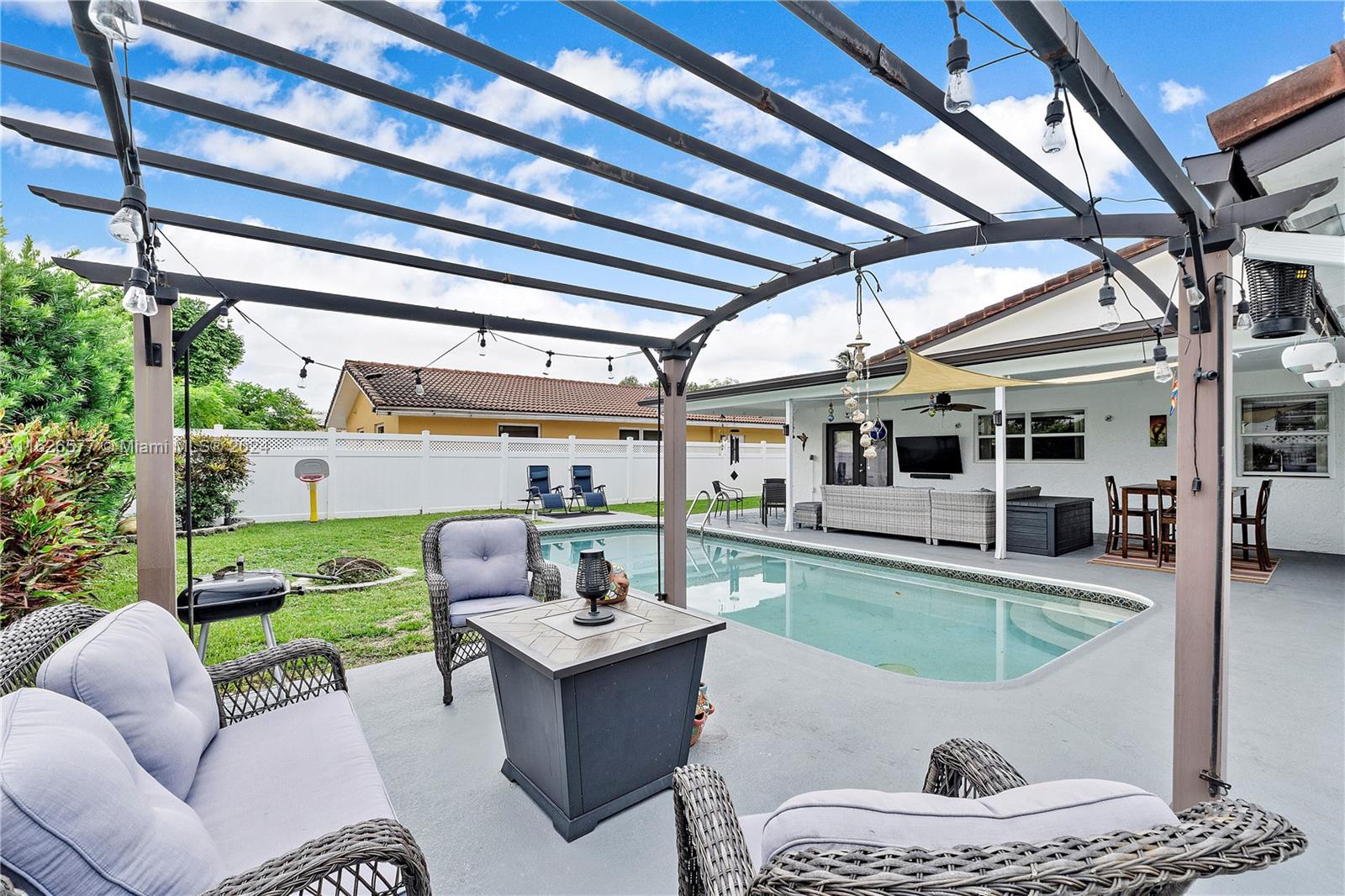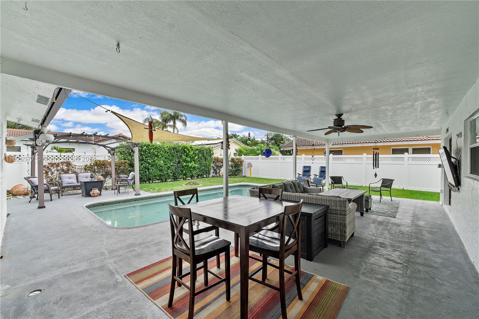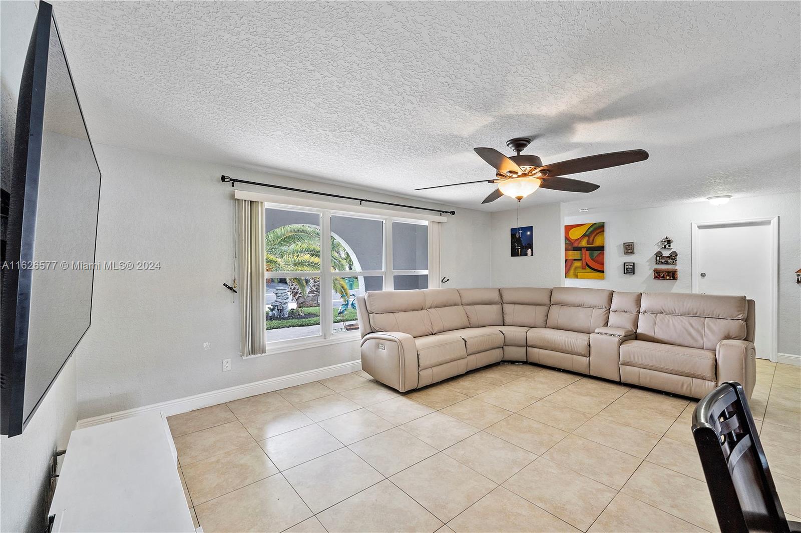 This Beautiful 4 bedroom, 2 bath residence in the highly sought-after community of The Dells at Coral Springs is a rare find. Featuring an open floor plan and split bedrooms, this home offers spacious living and family areas, a den/office for extra room, ample closet space, and a two-car garage. Upgrades include new solar panels on 2023, significantly reducing energy costs. The bedrooms feature vinyl flooring, while the remainder of the house boasts beautiful tile flooring. The expansive covered patio overlooking the open pool, surrounded by a yard and a PVC fence, ensuring privacy and tranquility. Key updates, W&D 2021, A/C 2019, WH in 2022. Conveniently situated near shopping, dining, and more, this property is ideal for a large family seeking comfort and convenience. Sold "As Is"