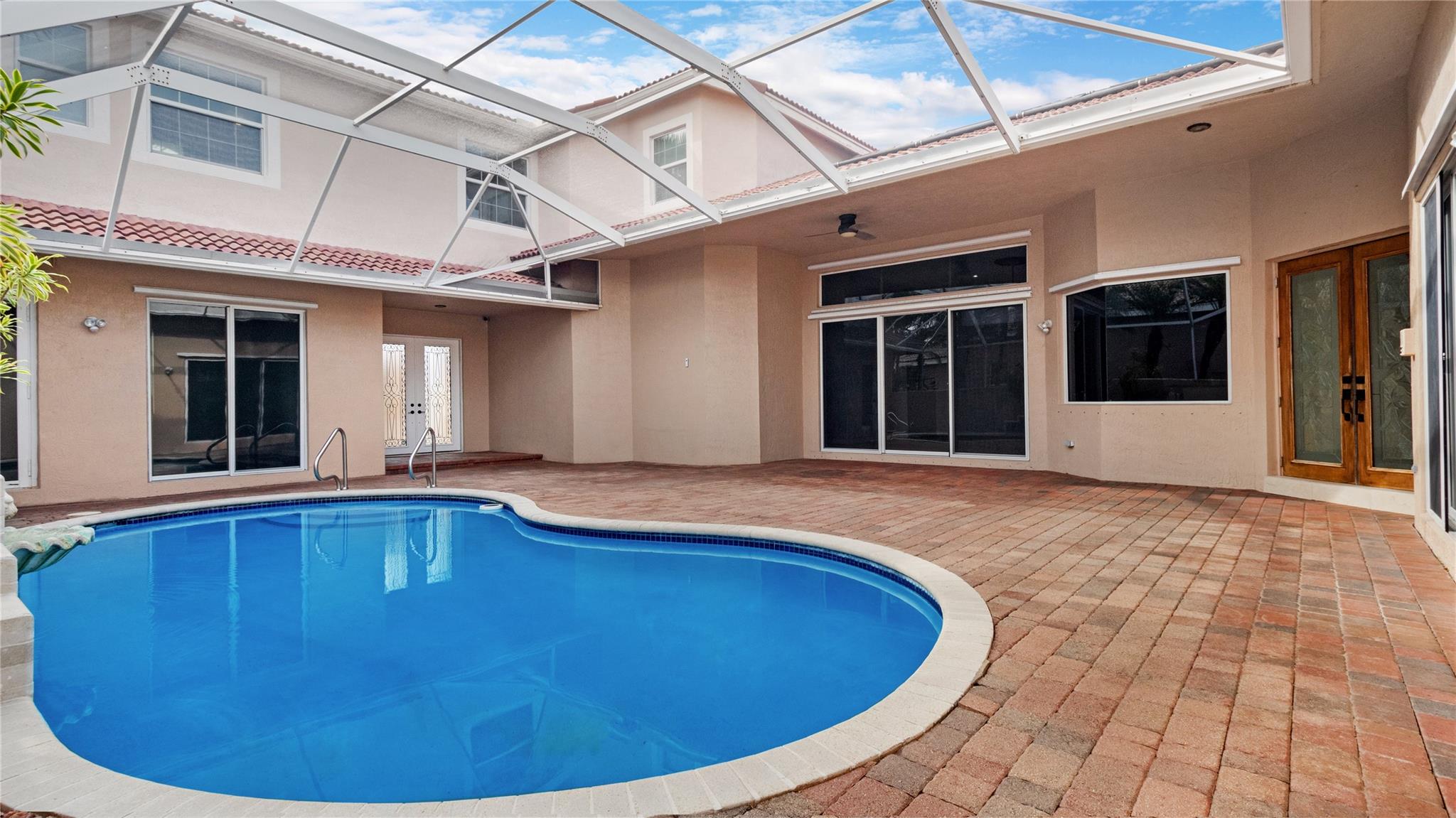 Gorgeous courtyard pool home in Grand Isle the only manned gated community in Wyndham Lakes! This stunning 5-bedroom, 4.5-bathroom home boasts numerous upgrades and features a spacious loft. A separate guest house off the courtyard, complete with a full bath, is perfect for live-in arrangements or an in-law suite. The kitchen includes double ovens and stainless steel appliances. The home has two A/C units, designer fans, abundant closets, and brand-new ceramic tile flooring downstairs with 12-foot ceilings. The master suite, located on the first floor, features two walk-in closets. Upstairs, you'll find three large bedrooms, a loft, and two full baths. Plus, it's located in an "A" rated school district.